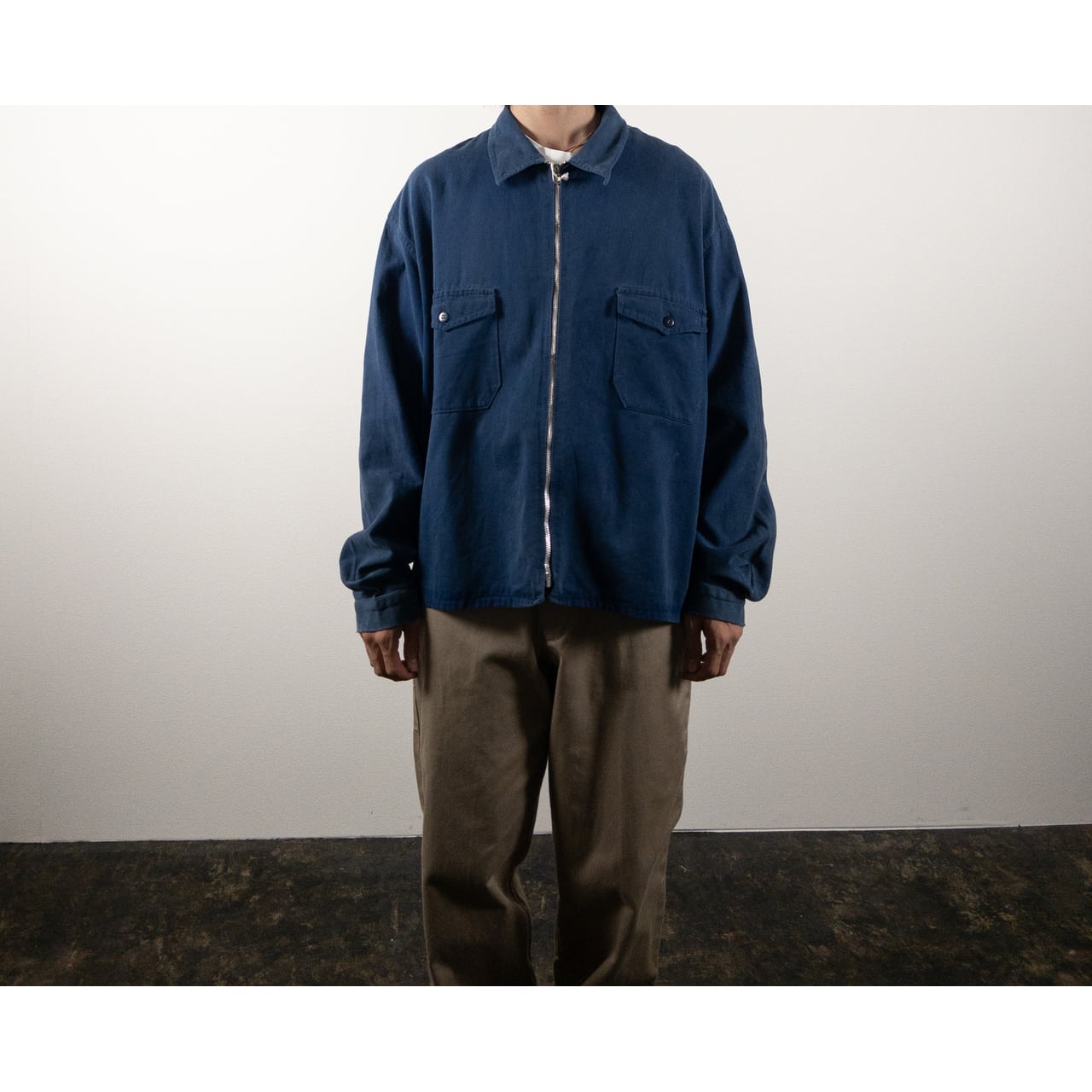 1960s "Italian Vintage" Blue Cotton Twill Zipper Cyclist Work Jacket