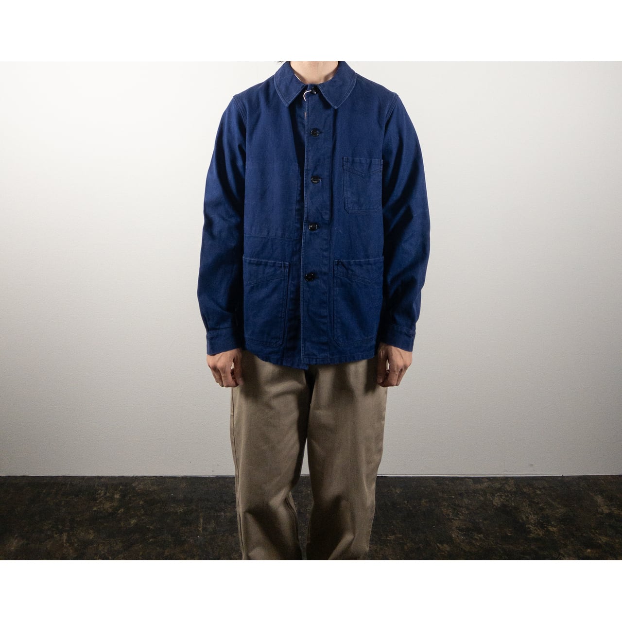 フレンチワークの定番中の定番、ブルーコットンツイルのワークジャケット。