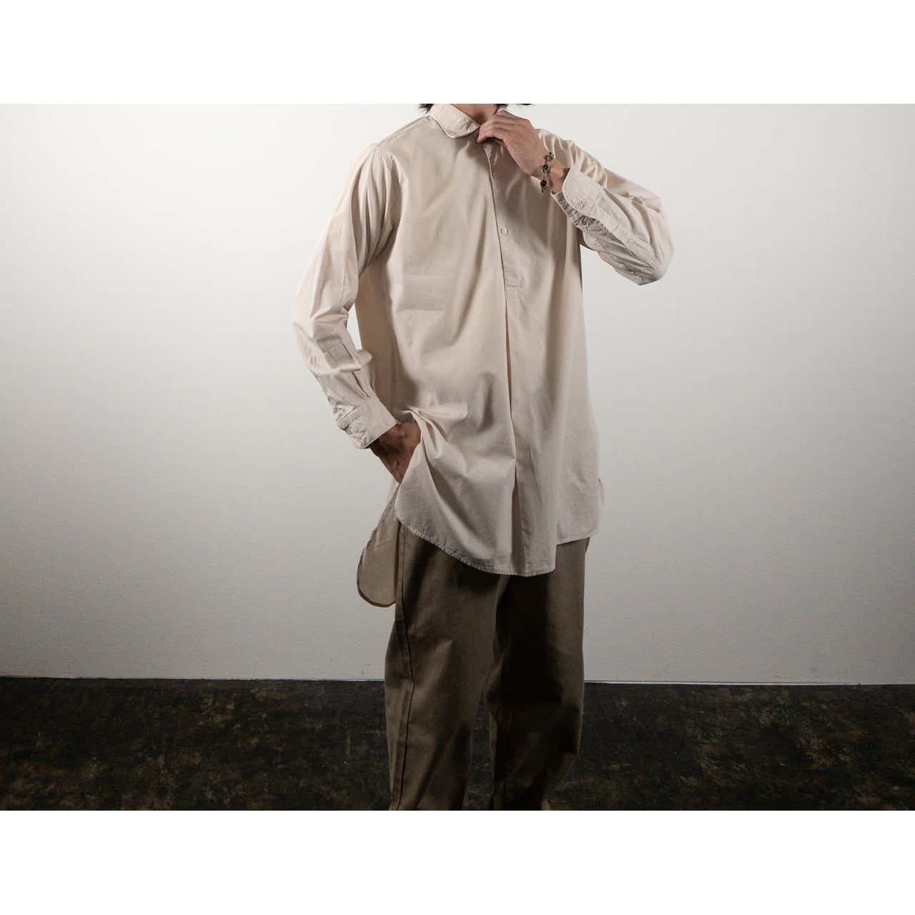 1950s "PARFAITE" French Beige Plain Cotton L/S Shirt