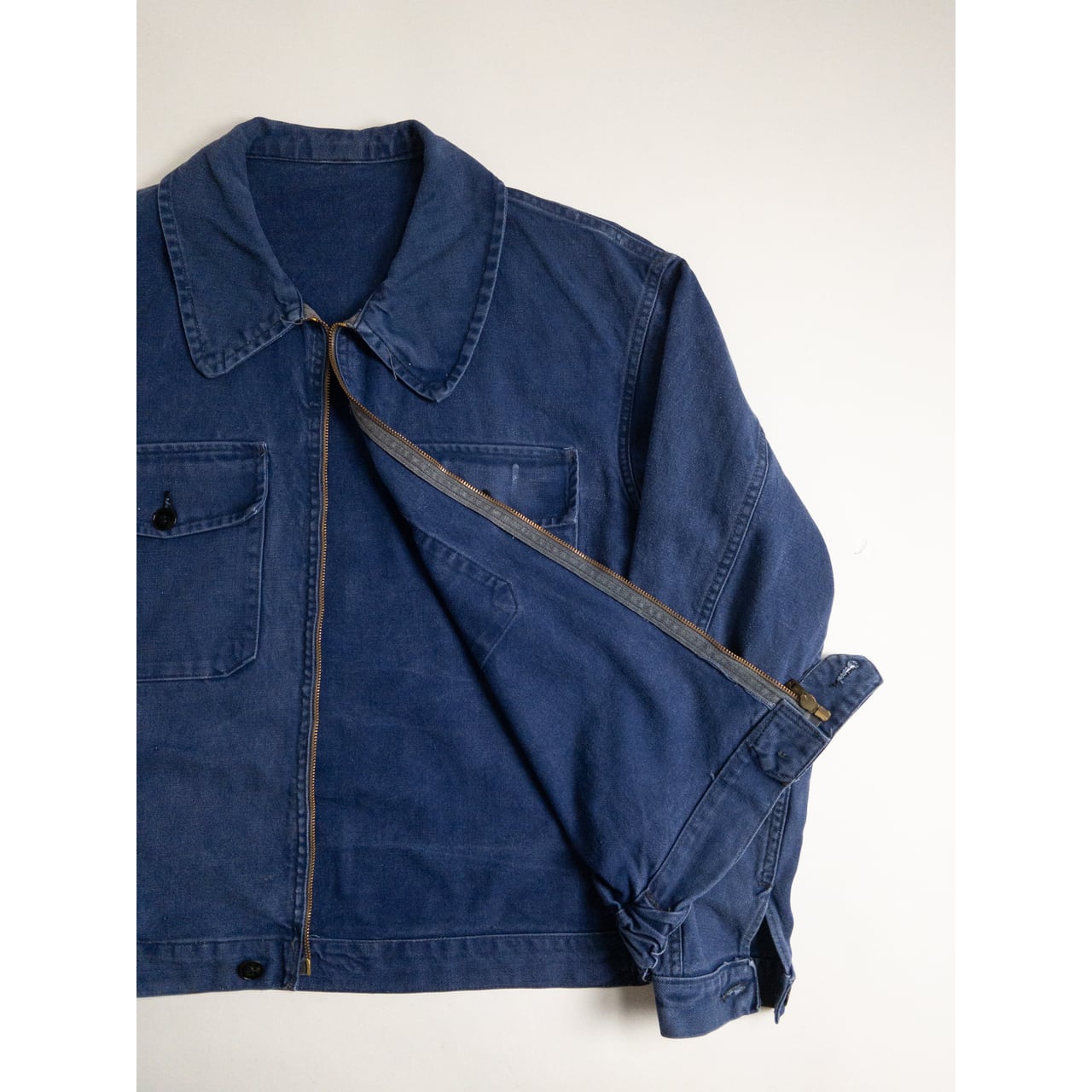 1950s "French Vintage" Faded Blue Cotton Twill Zipper Cyclist Work Jacket