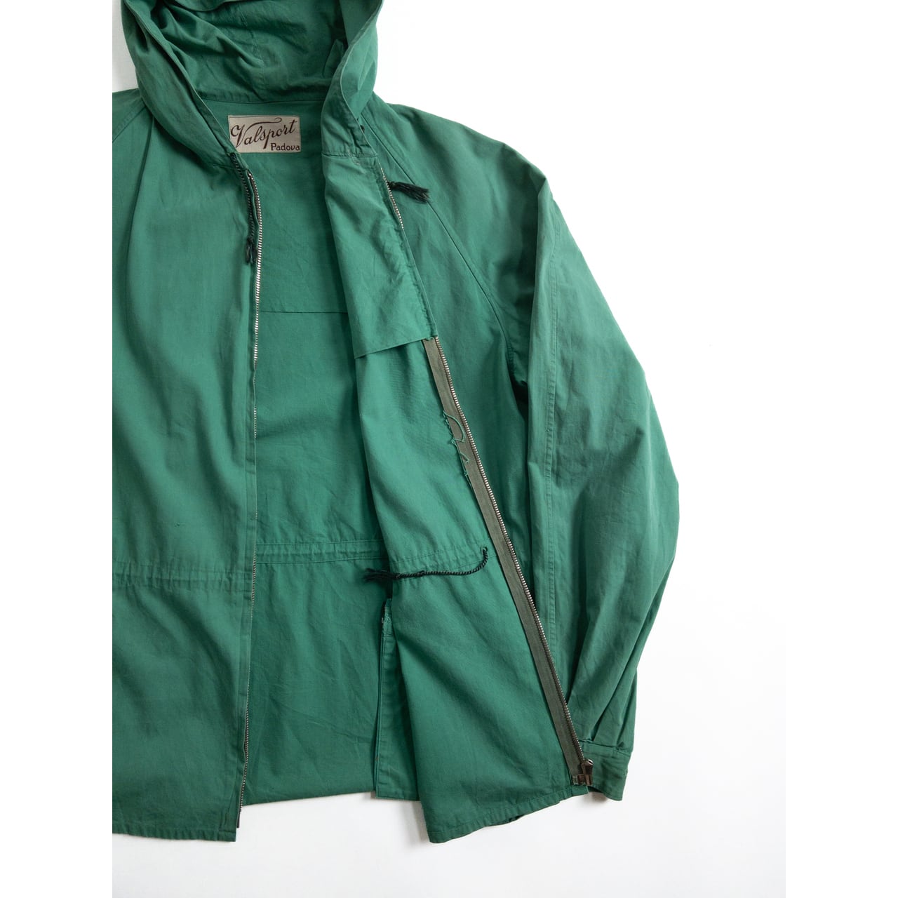 鮮やかでありながらも柔らかさを感じさせる、ライトグリーンの発色が美しい1960〜70年代のイタリア製フルジップパーカー。
