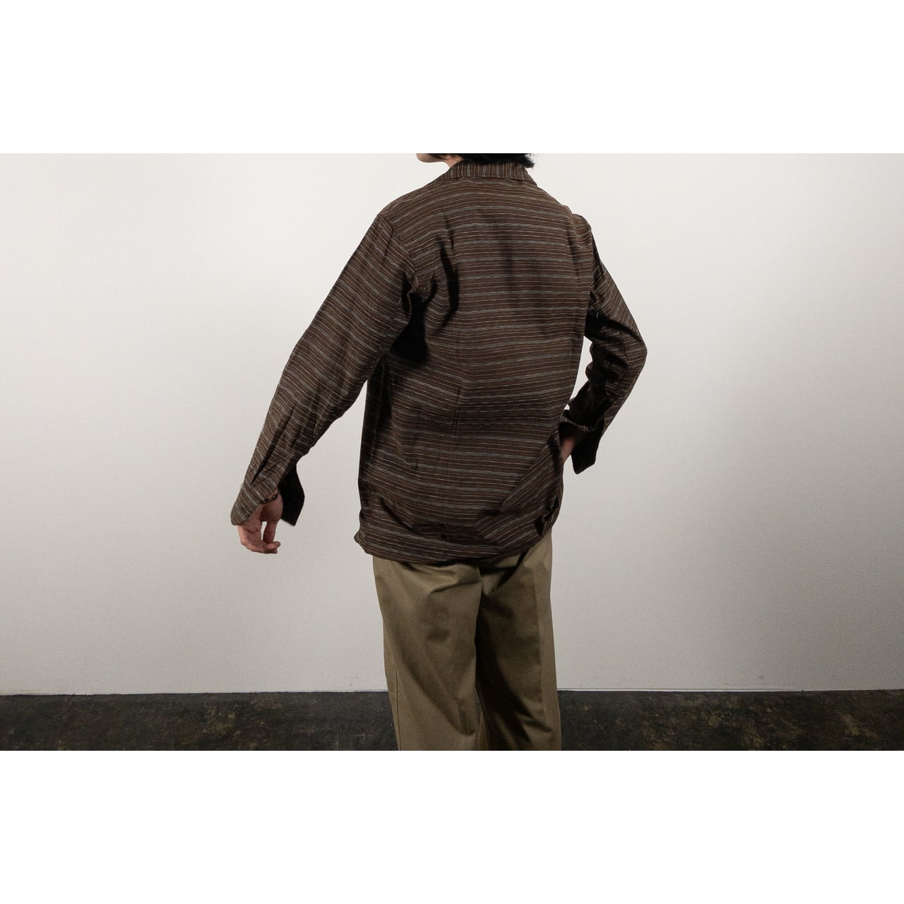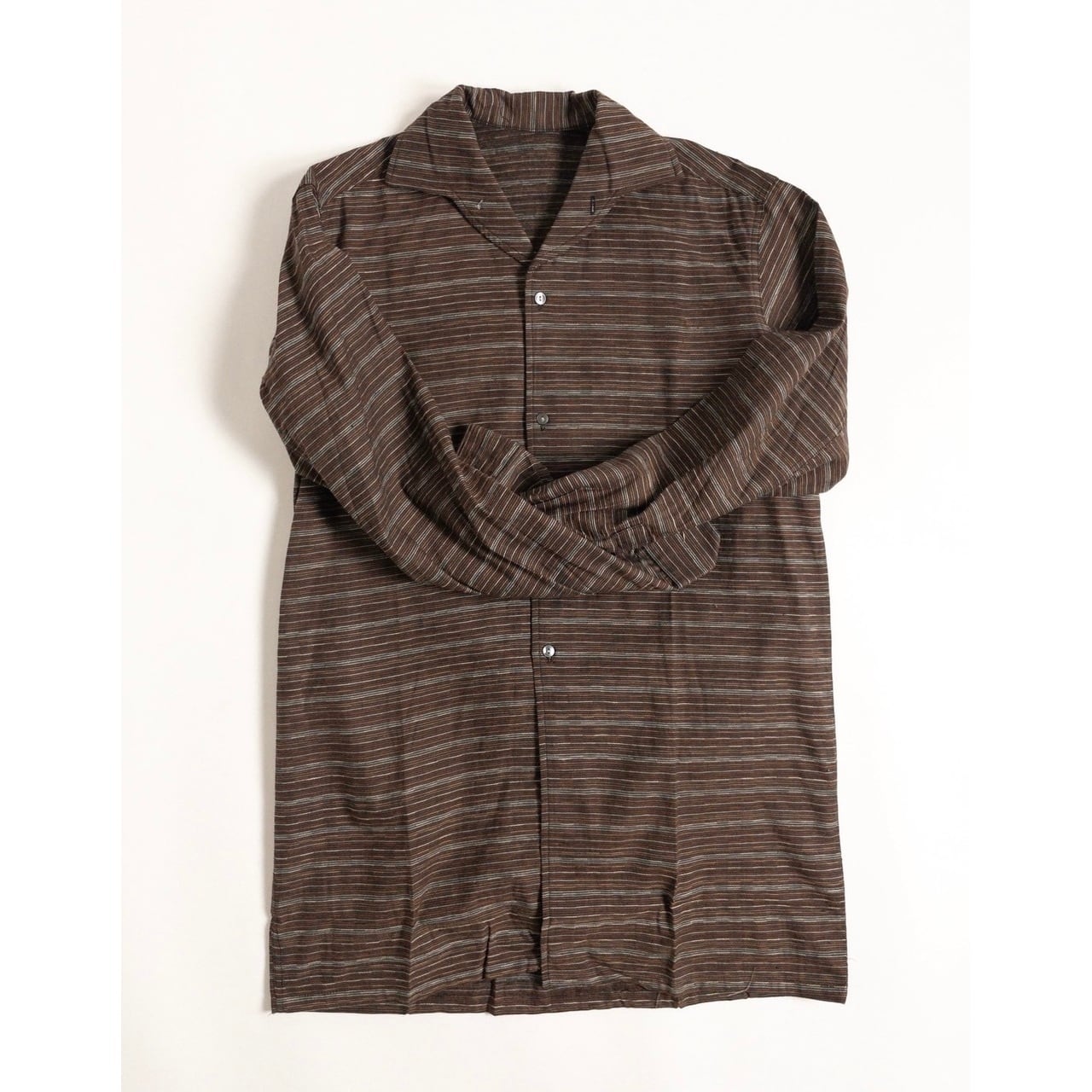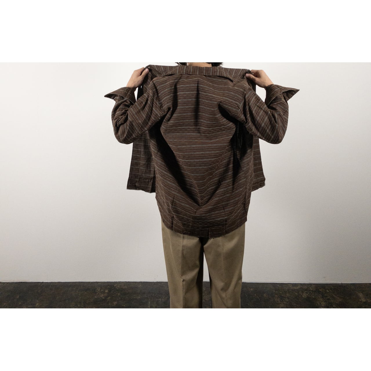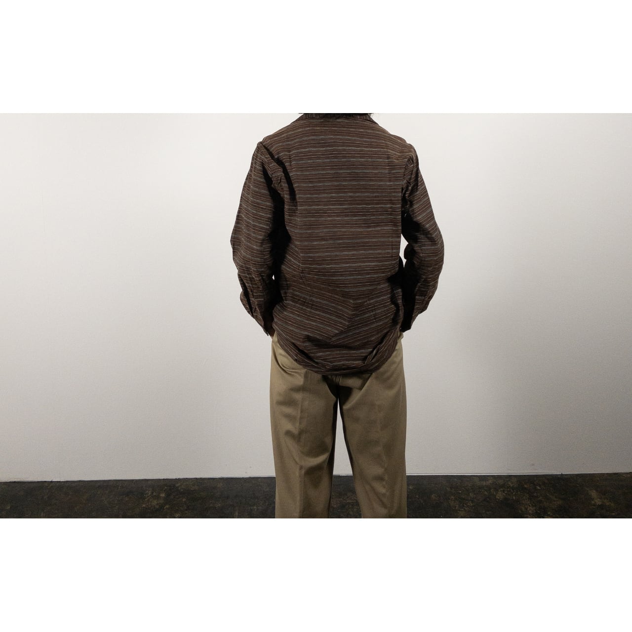 1950-60年代のフレンチヴィンテージより、落ち着いたブラウンベースのボーダー柄が目を引く長袖シャツ。