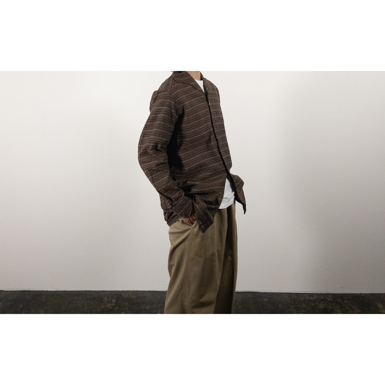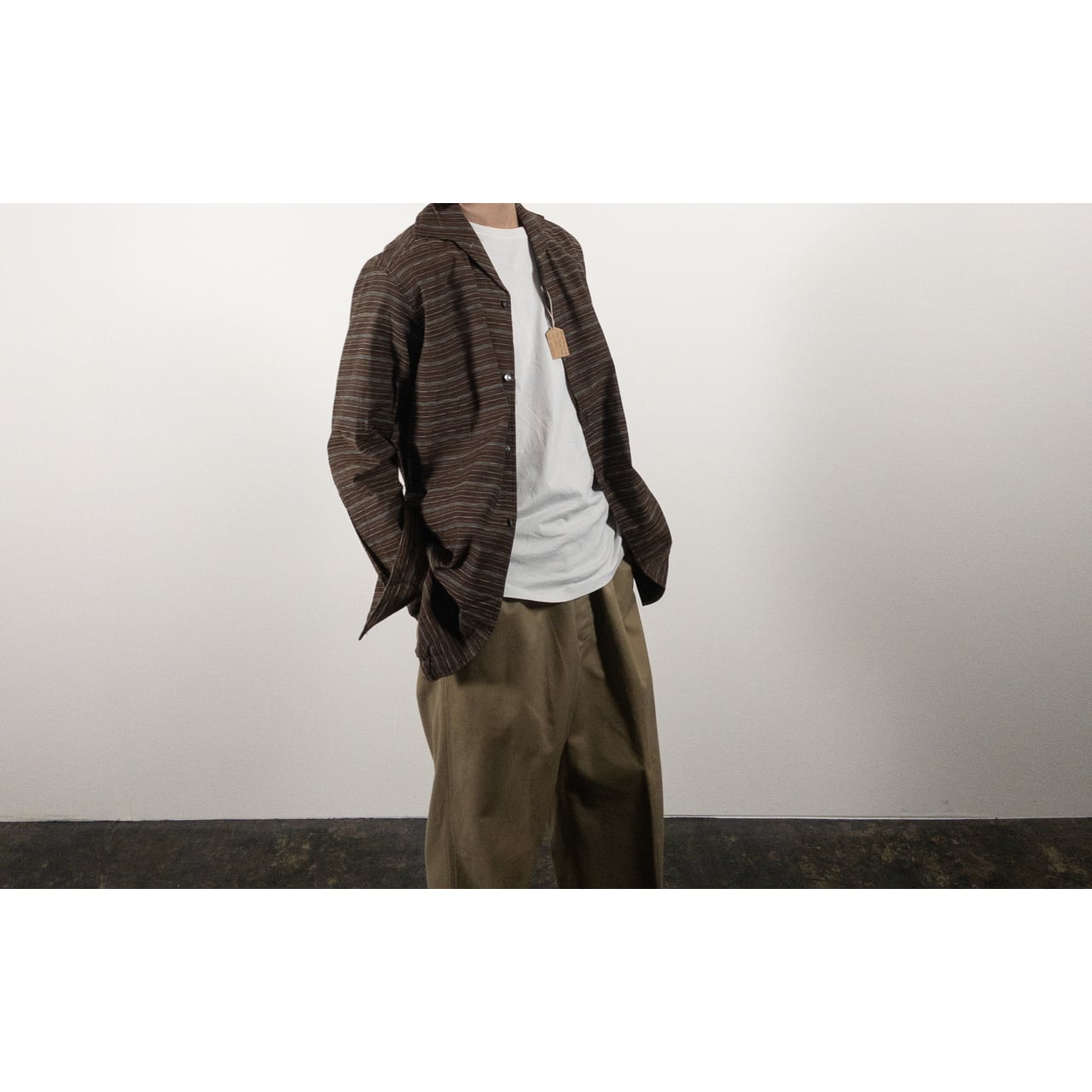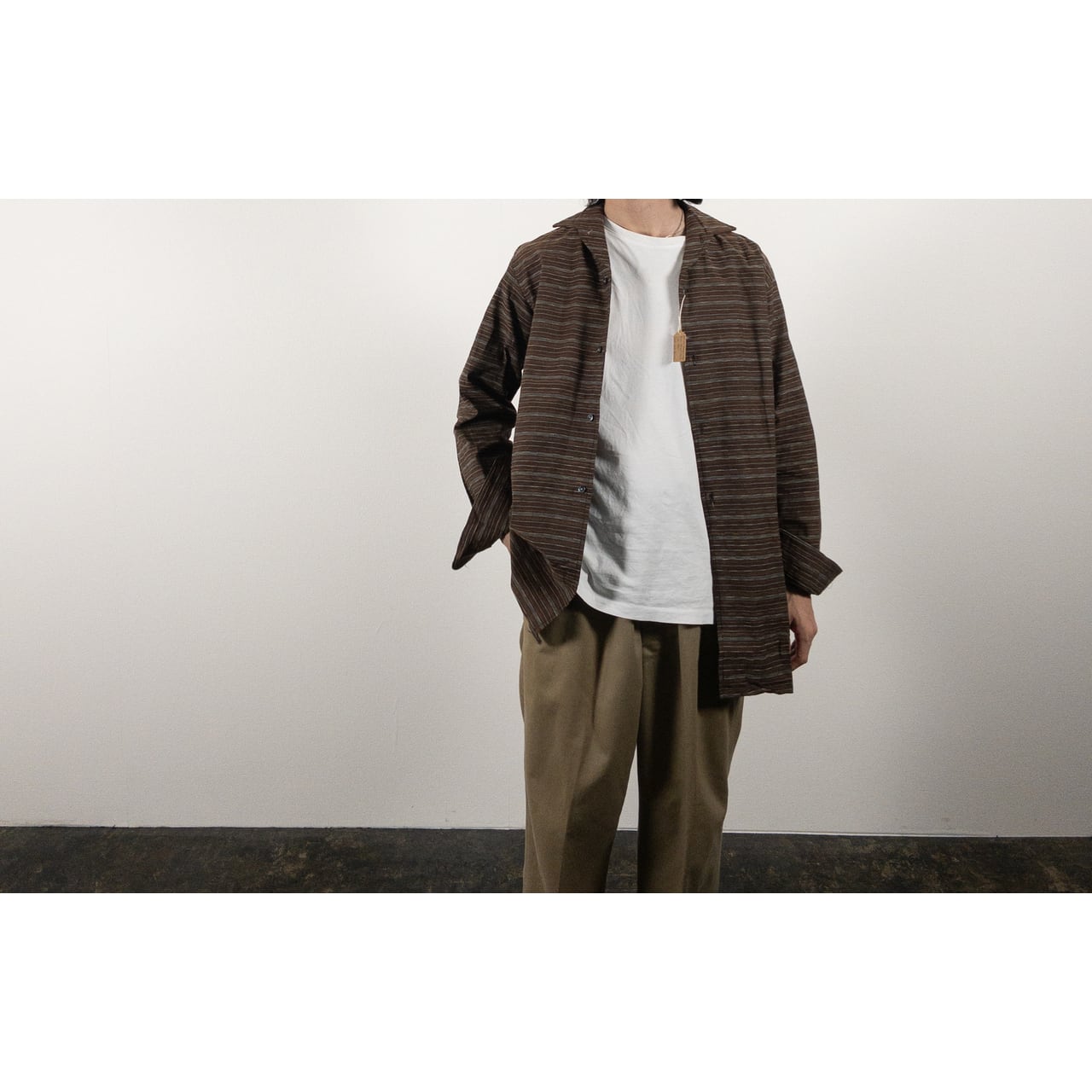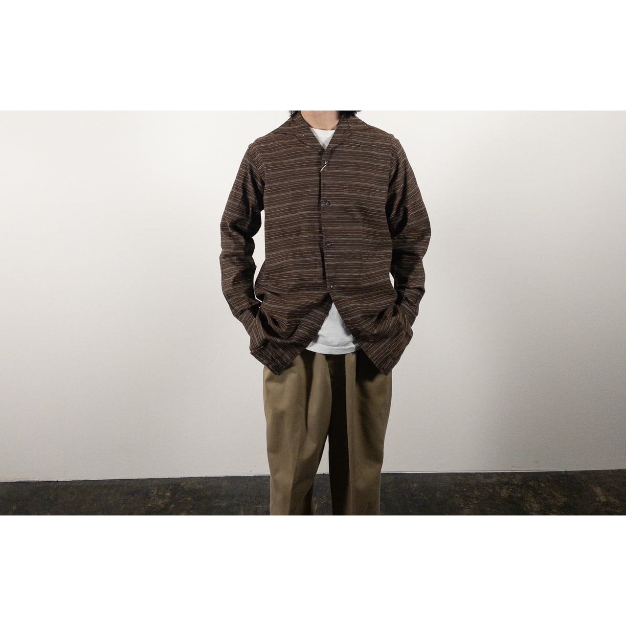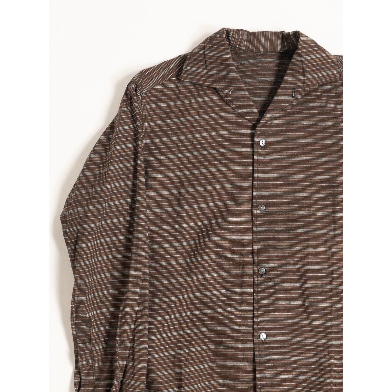 1950-60年代のフレンチヴィンテージより、落ち着いたブラウンベースのボーダー柄が目を引く長袖シャツ。
