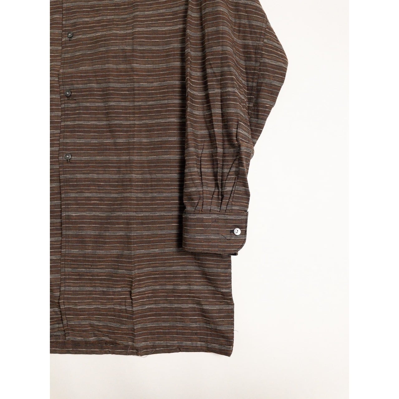 1950-60s "French Vintage" Brown Mixed Stripe L/S Shirt, Dead Stock