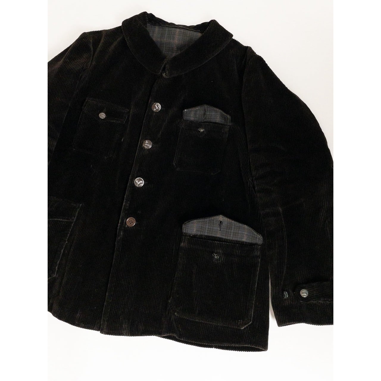 1930-40s "French Vintage" Black Heavy Corduroy Hunting Jacket