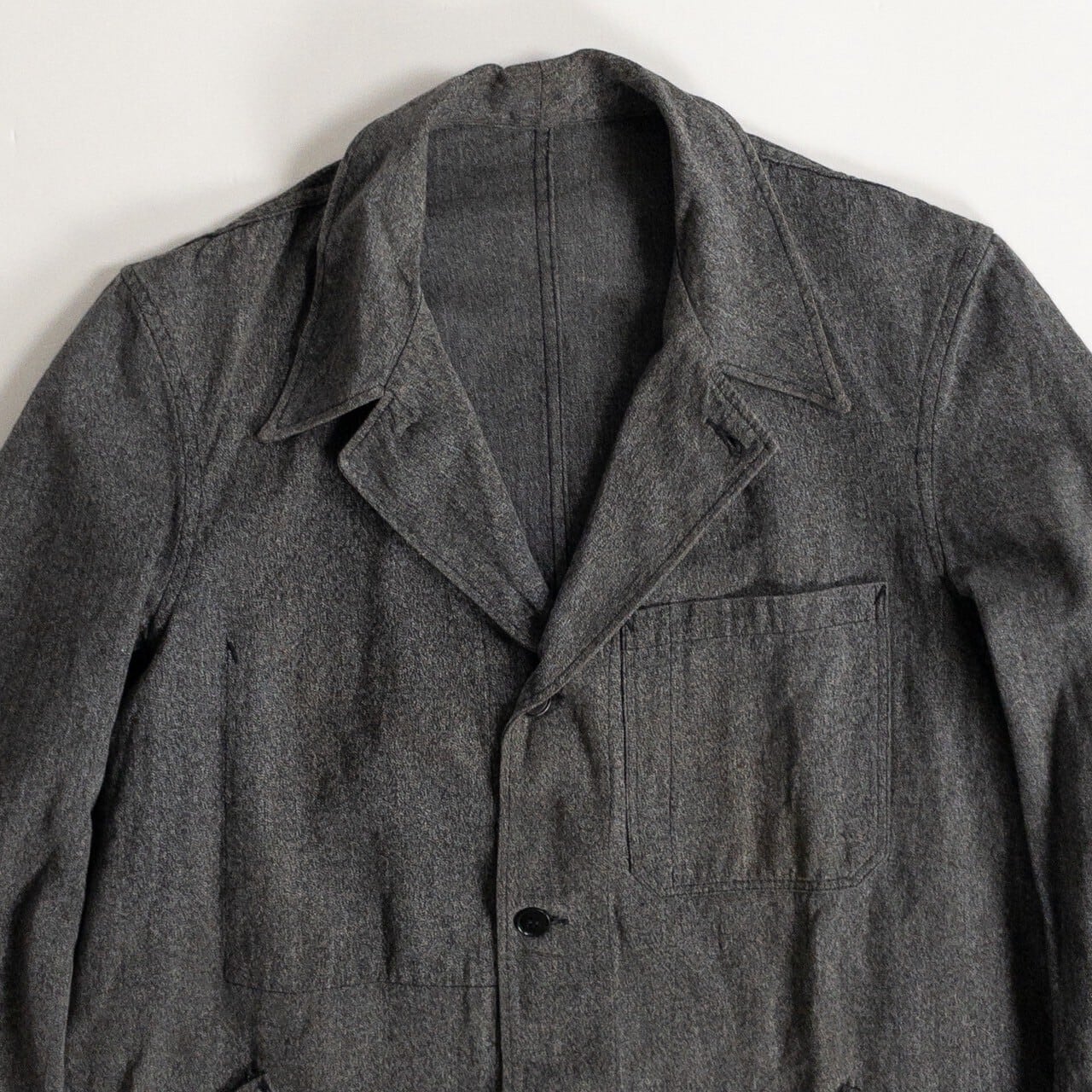 生地には上質なブラックシャンブレーを使用。経年によって生まれたグレーがかった褪色と、織りの立体感が見事に調和し、独特の深みを感じさせる風合いに仕上がっています。