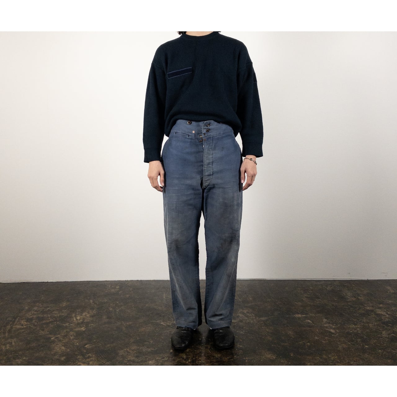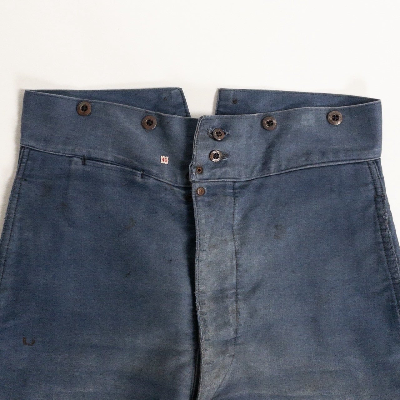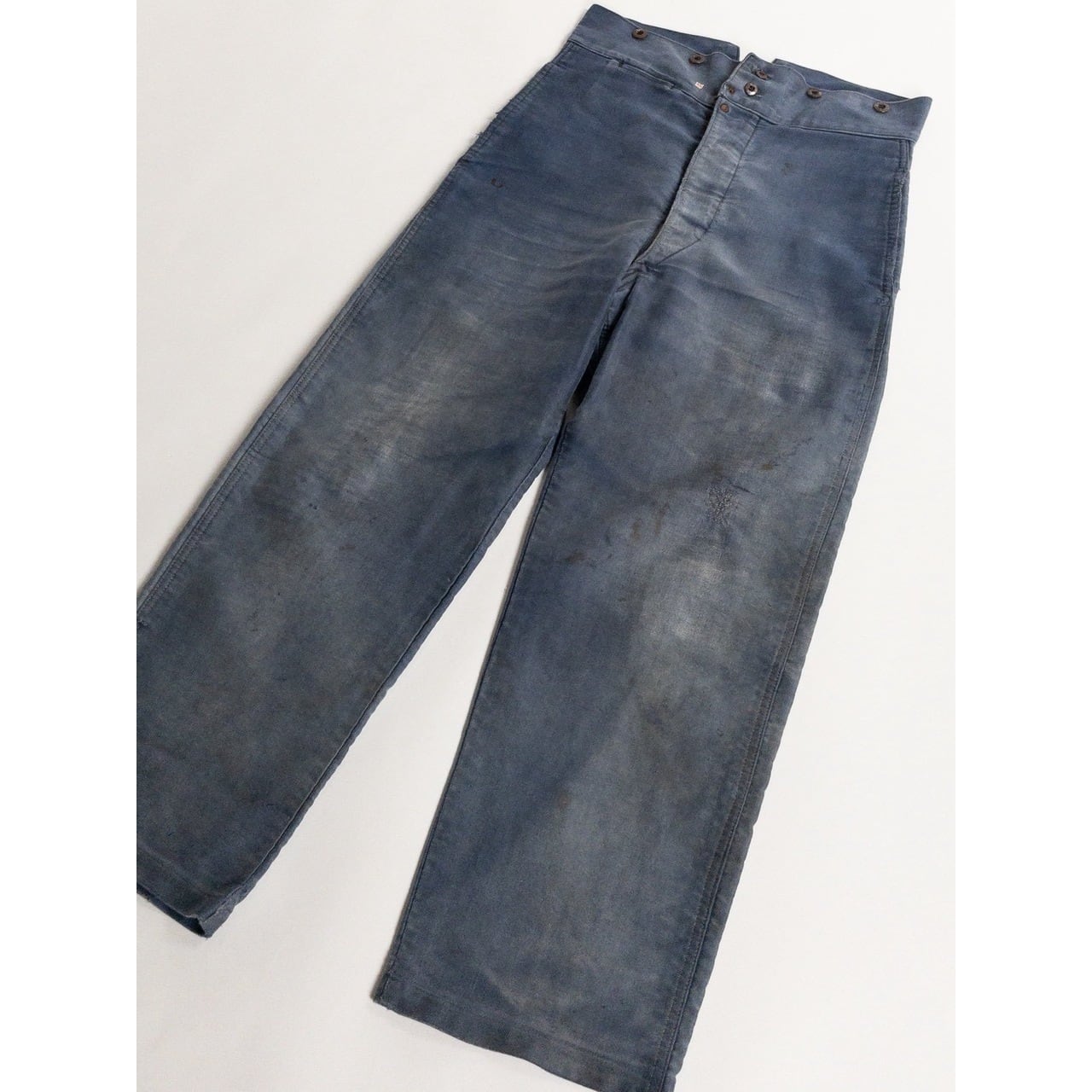 1940s "French Vintage" Faded Blue Moleskin Work Trousers