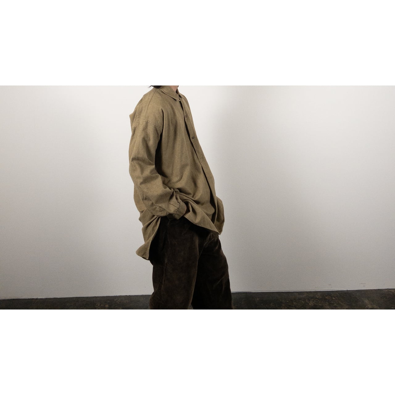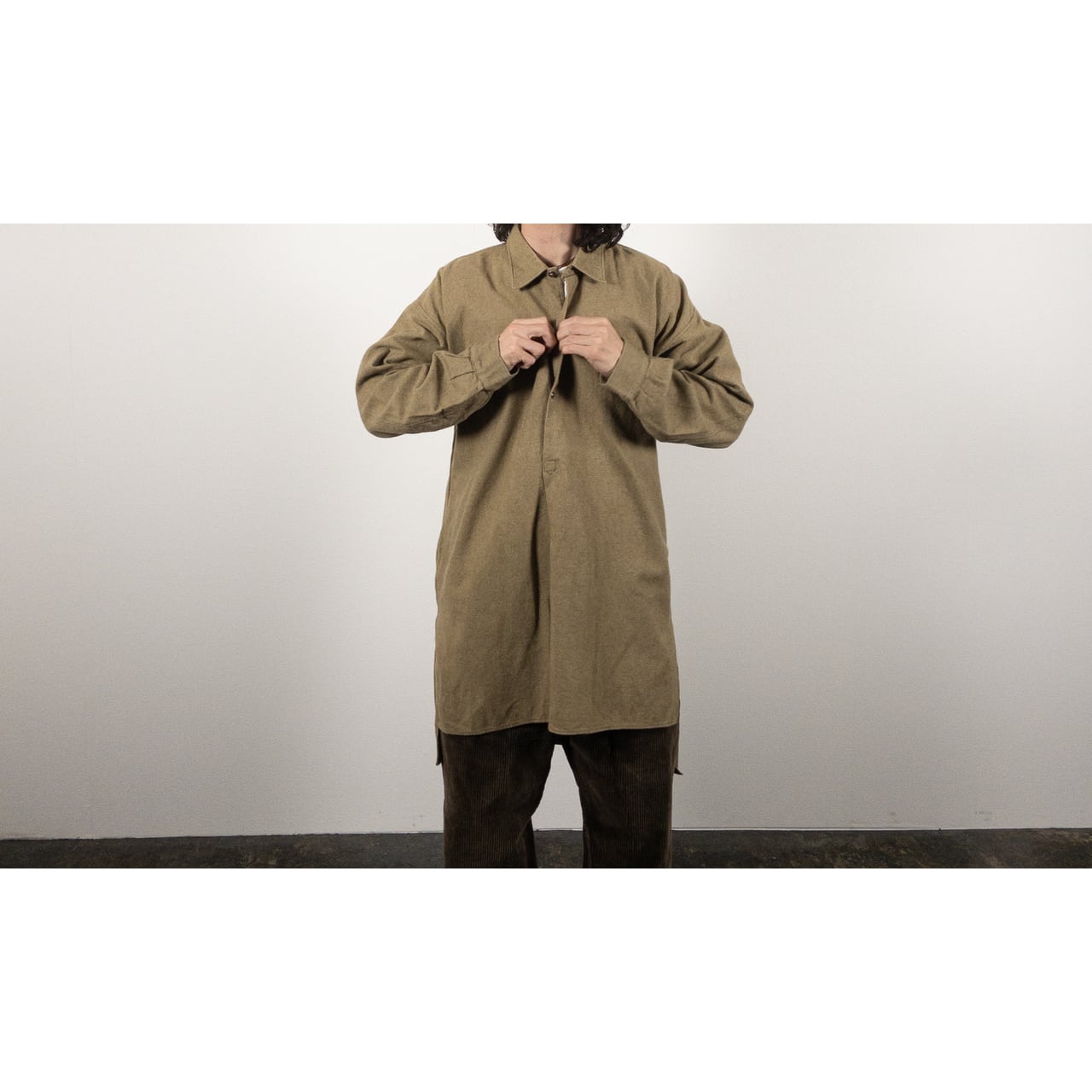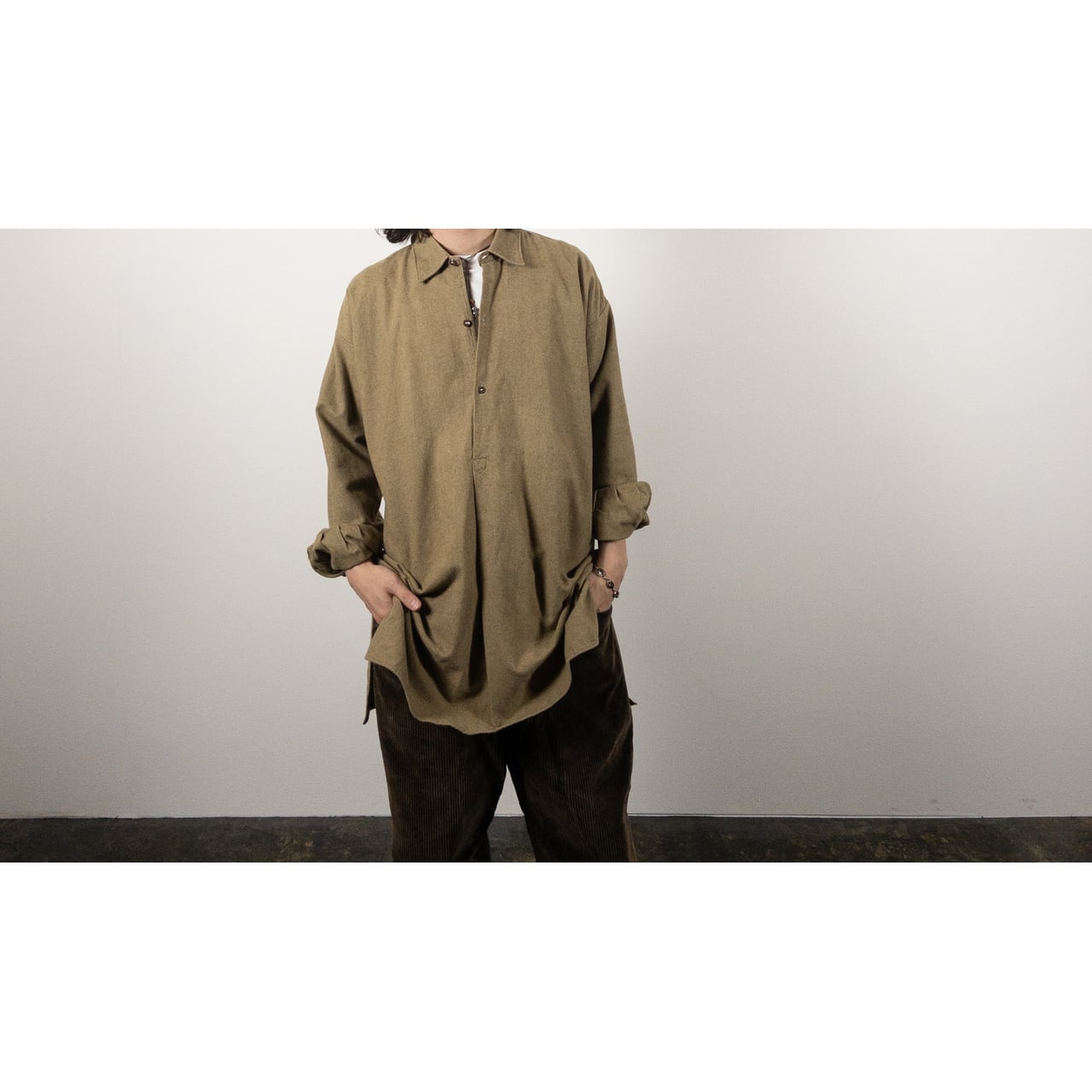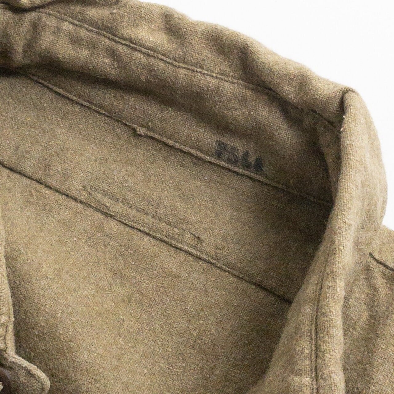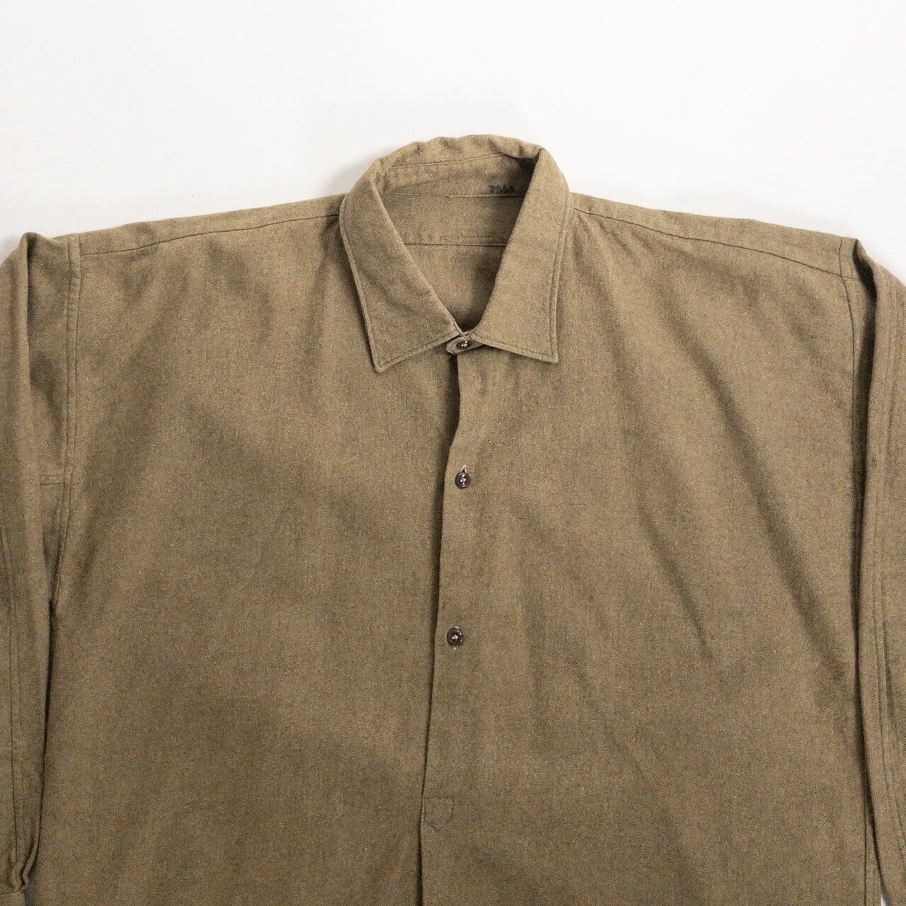 1940-50s "Euro Vintage" Khaki Wool Grgndpa Work Shirt, Big Size