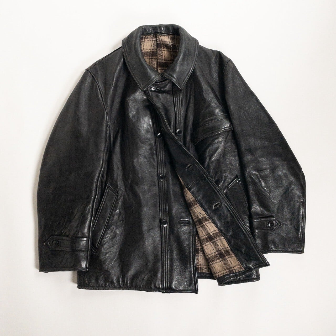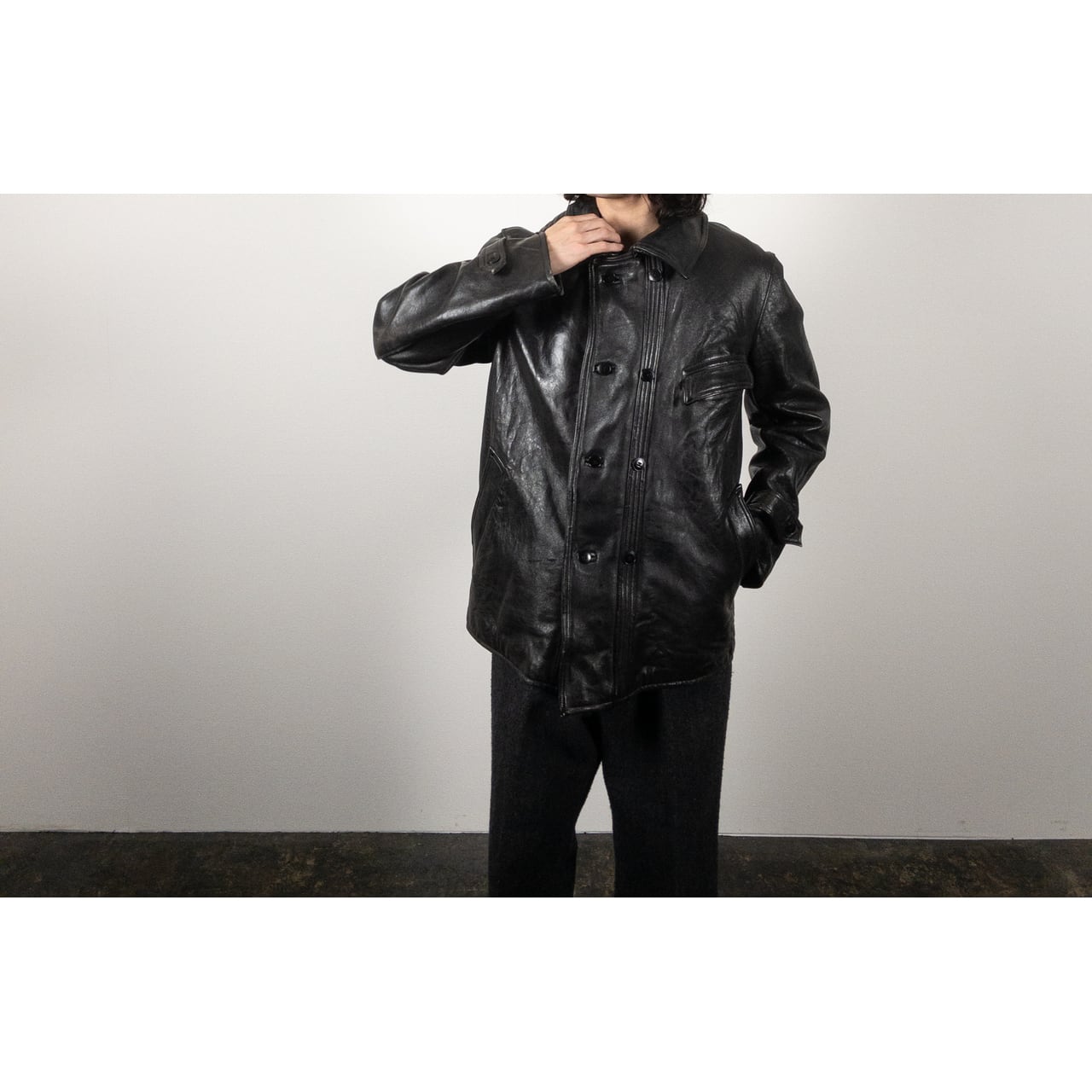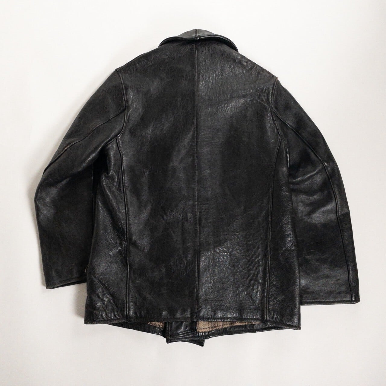 1950-60s "Le Corbusier" French Black Leather Double Breasted Jacket