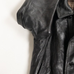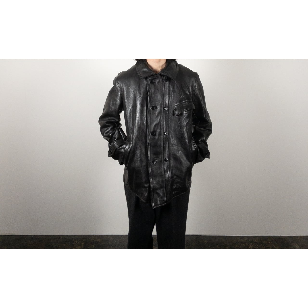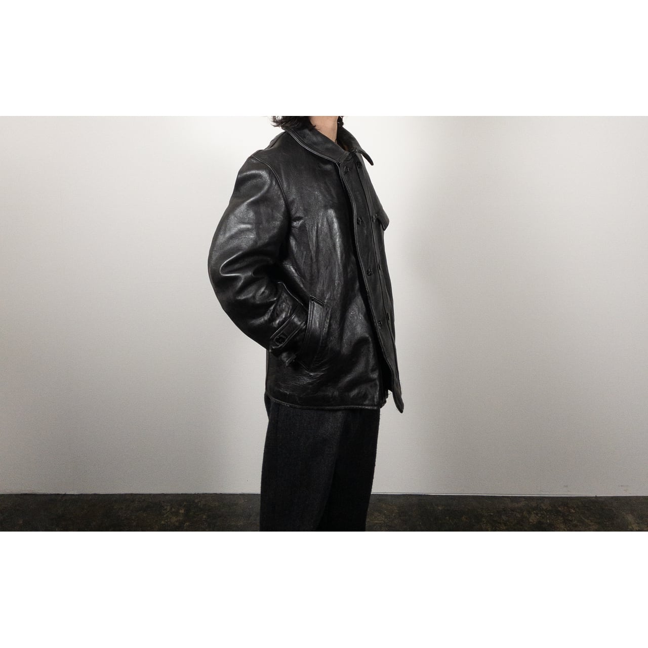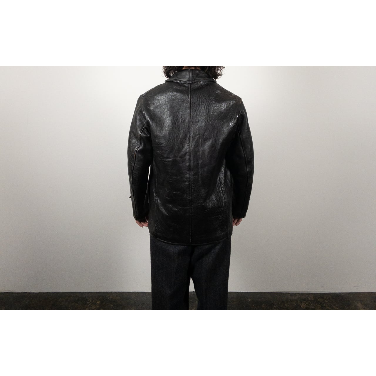 1950-60s "Le Corbusier" French Black Leather Double Breasted Jacket