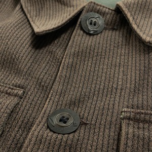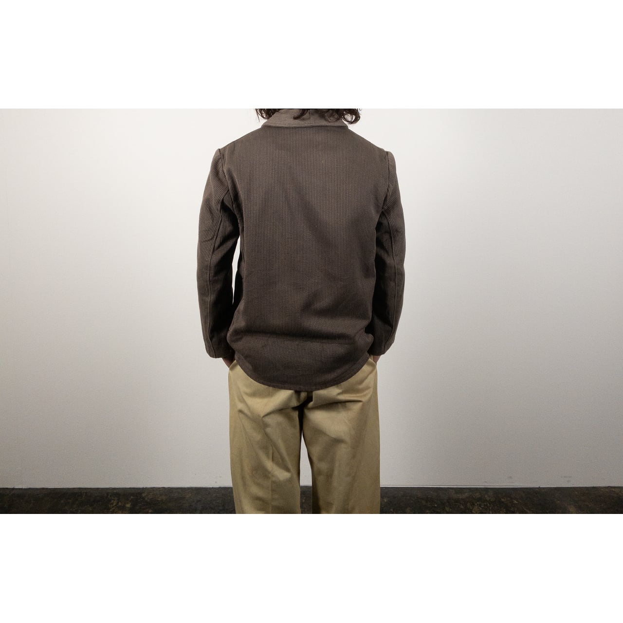 ピケ特有の凹凸が単調になりがちなブラウンに奥行きを与え、着込むほどに風合いが増していく素材感です。キャンバスほど硬くなく、ツイルよりも表情があり、非常にバランスの取れたファブリックと言えます。