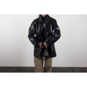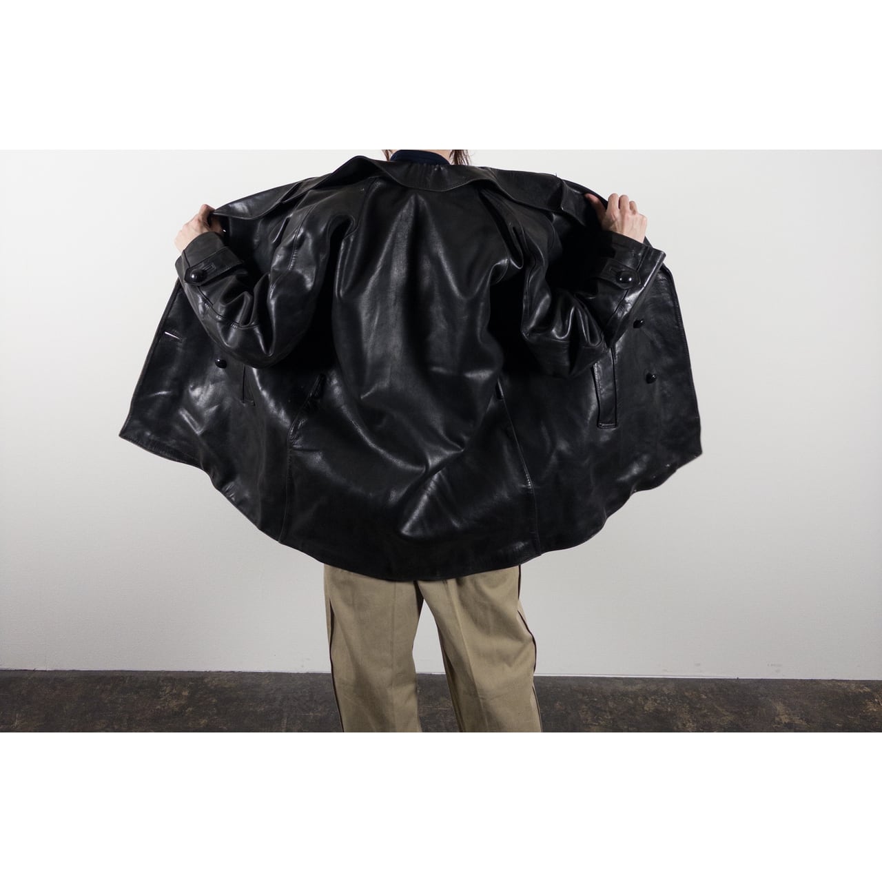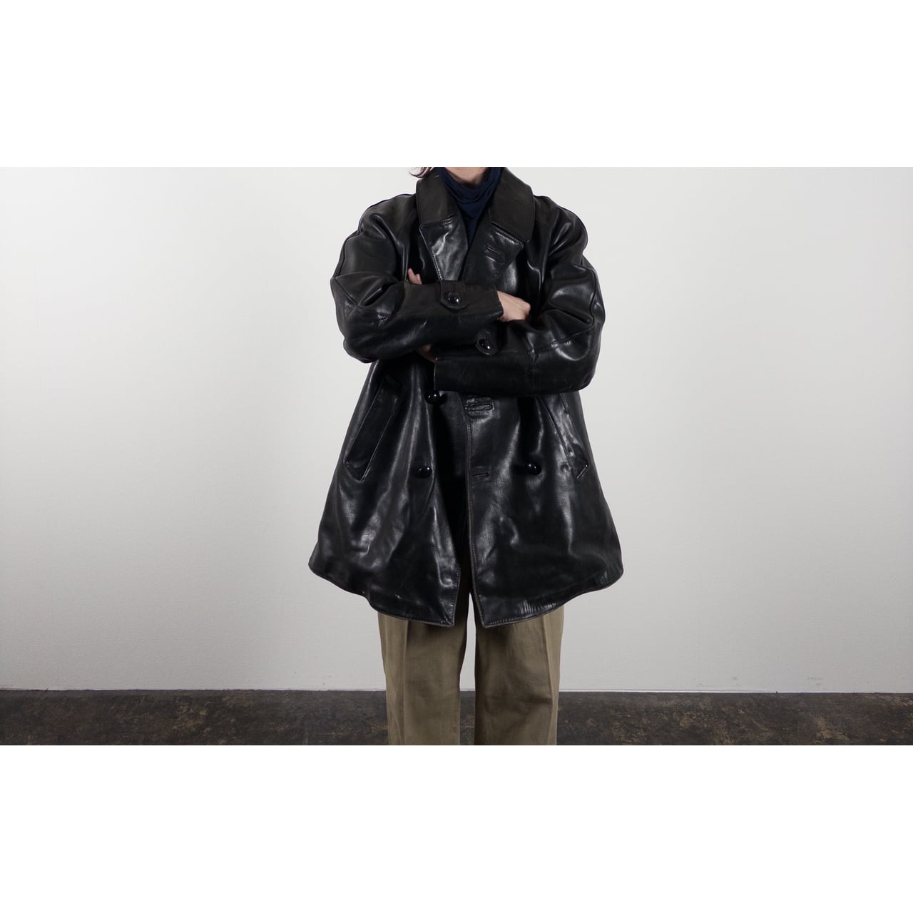 1950-60s "LORO PICENO" Black Leather Doble Brested Jacket