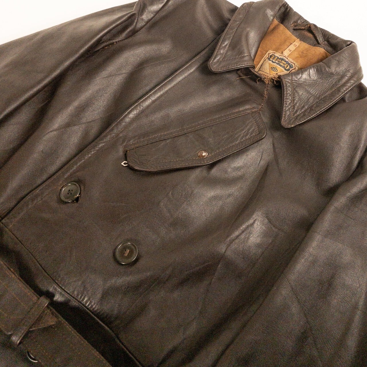 1960s "German Vintage" Brown Leather Double Breasted Coat