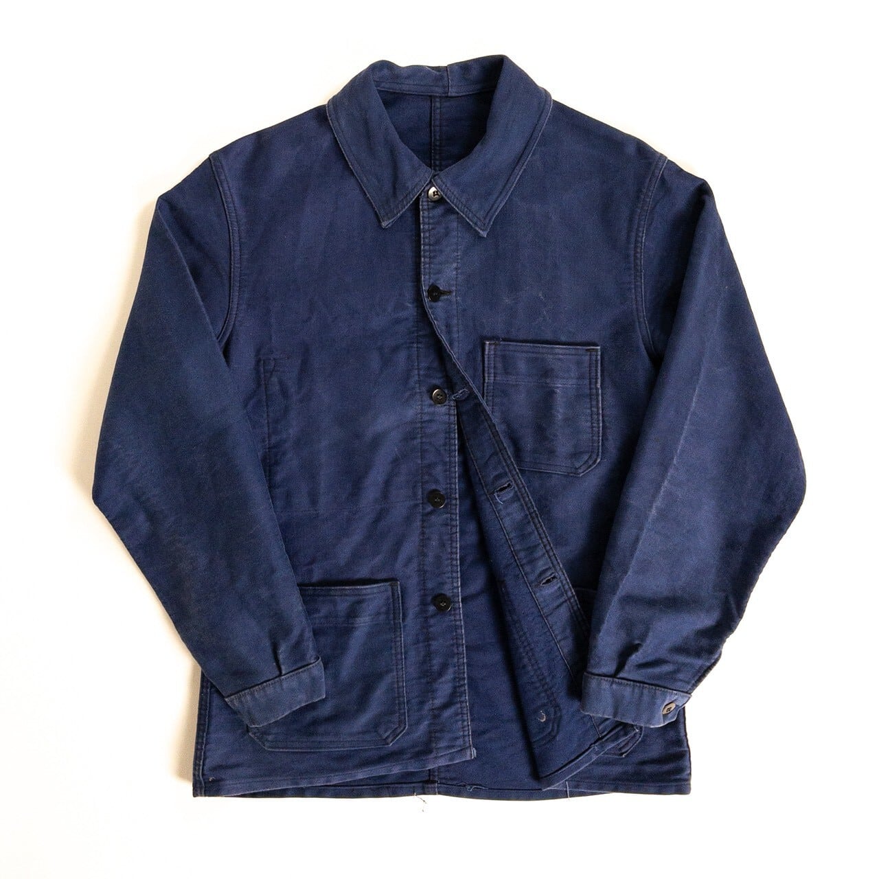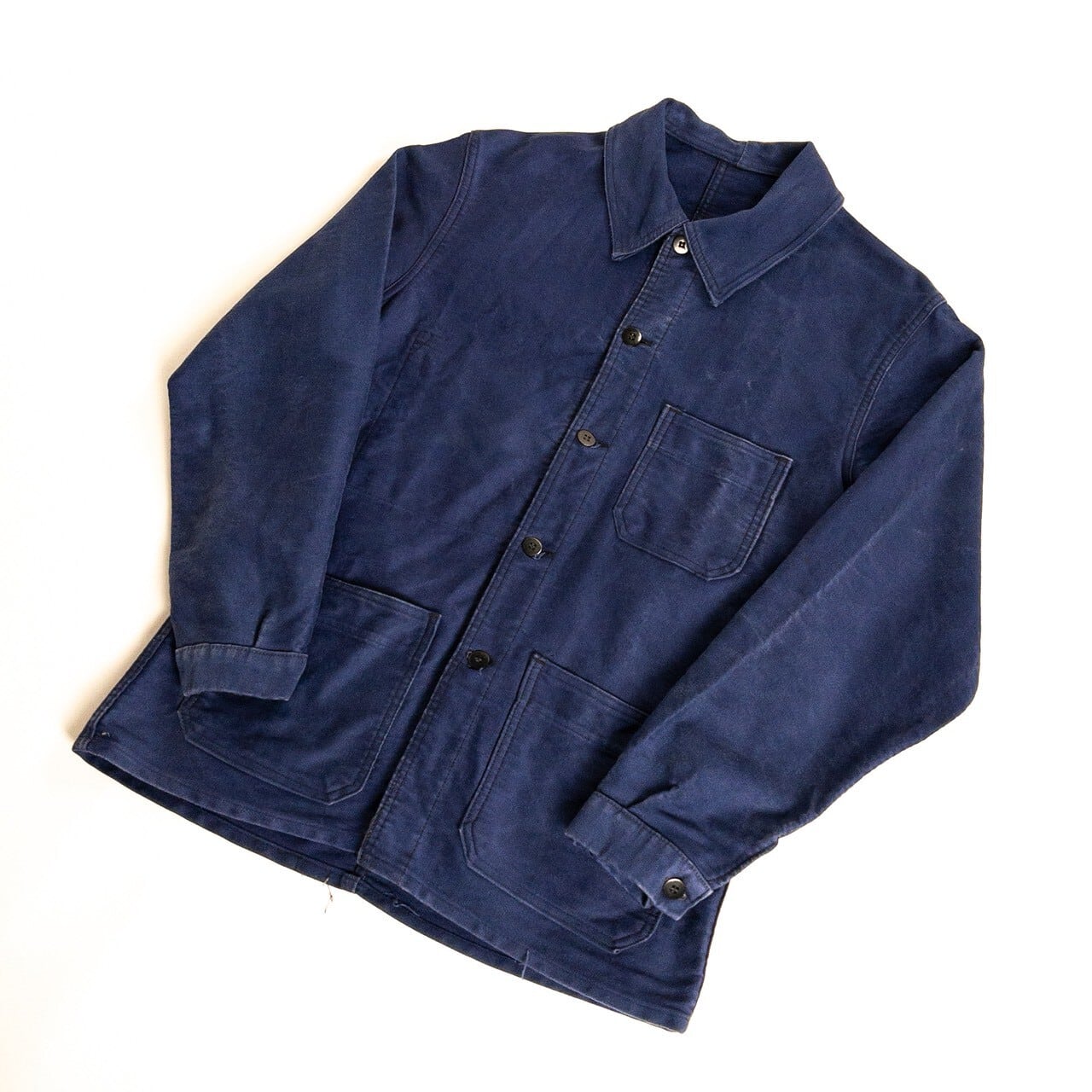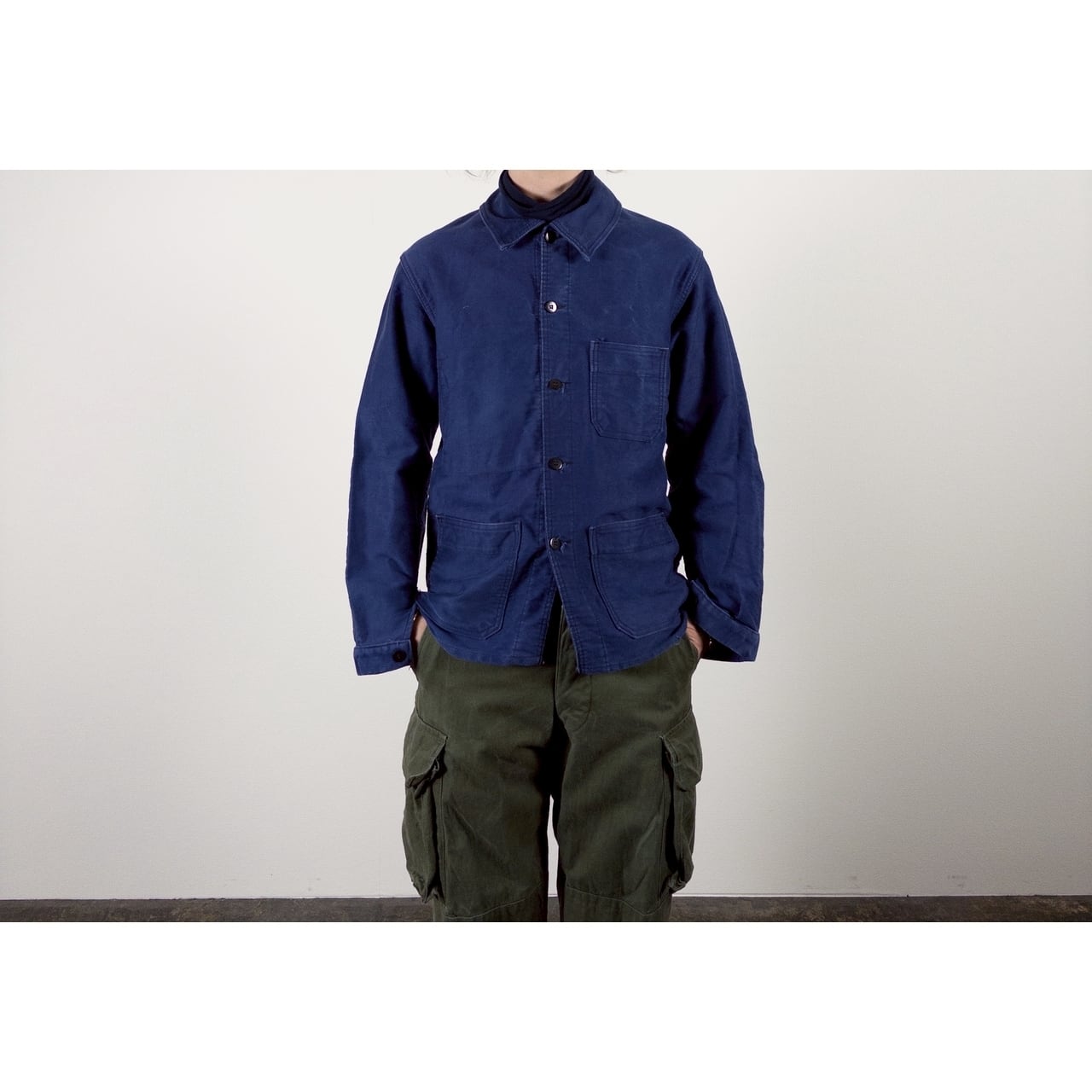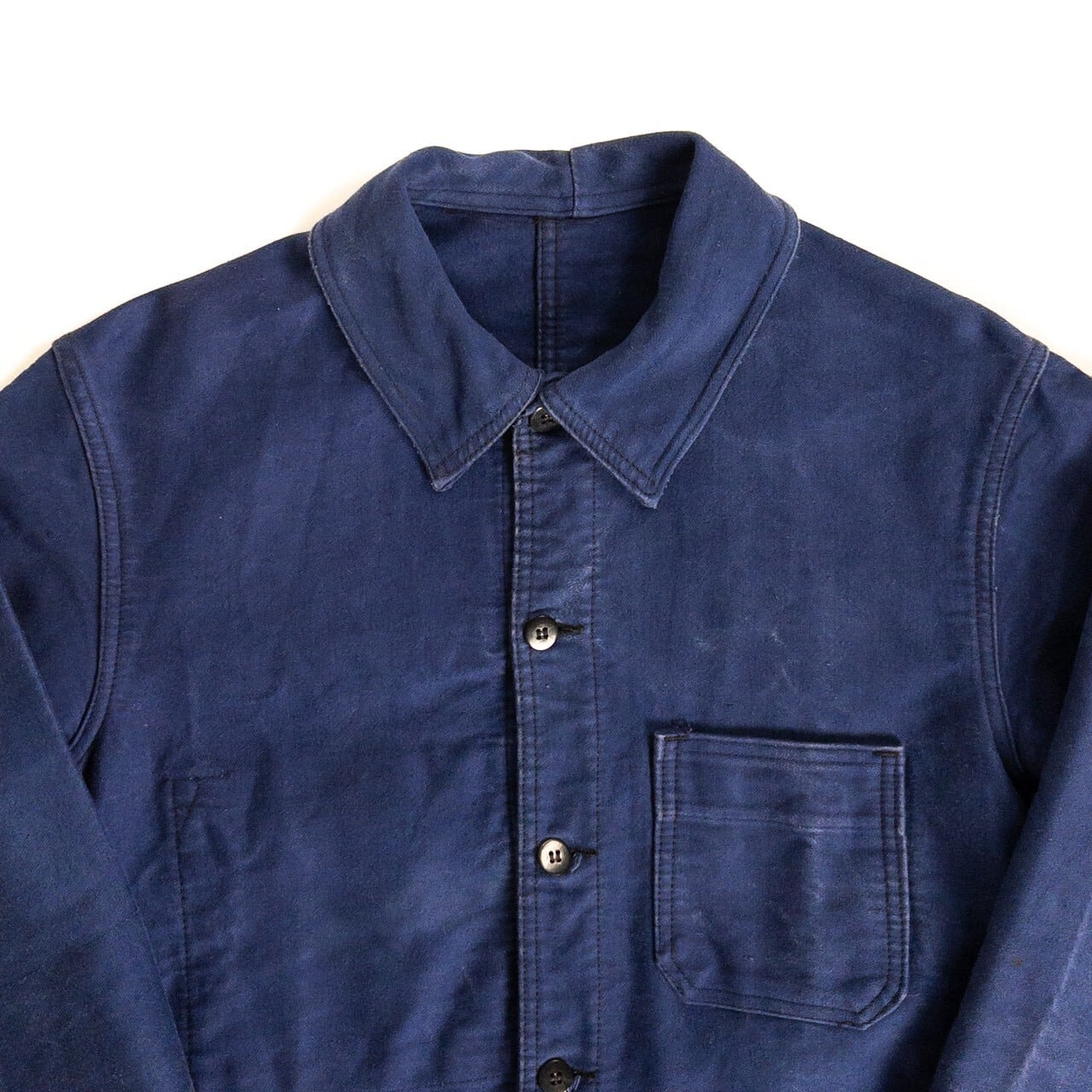 こちらは1950年代頃のフランス製ブルーモールスキンワークジャケットです。