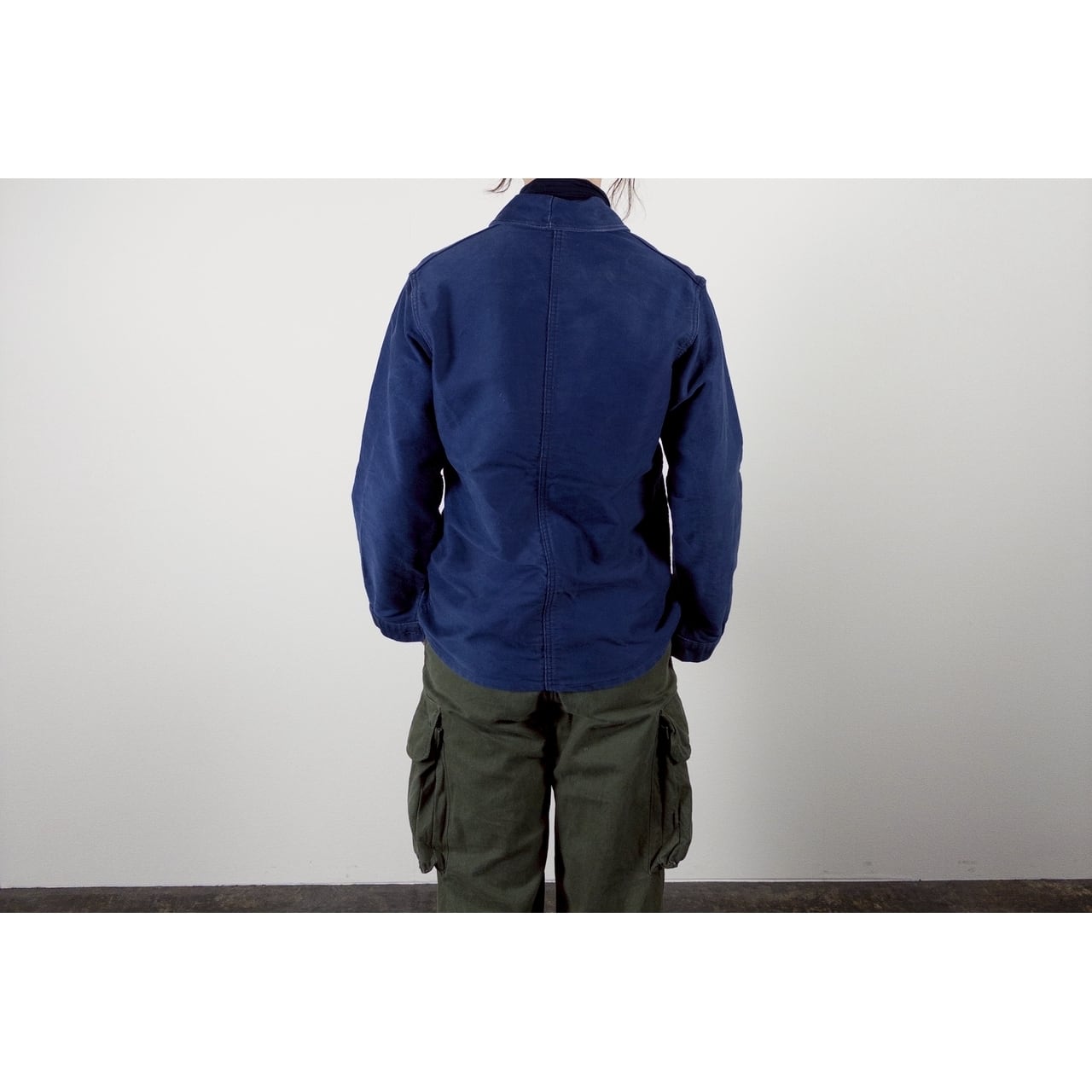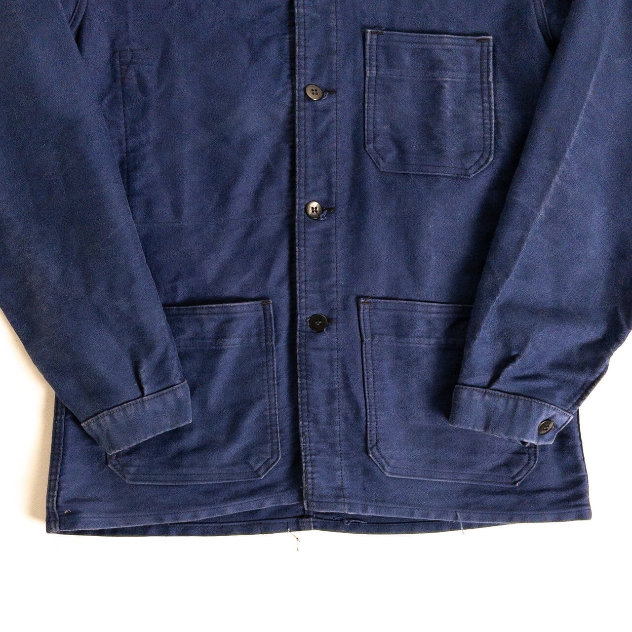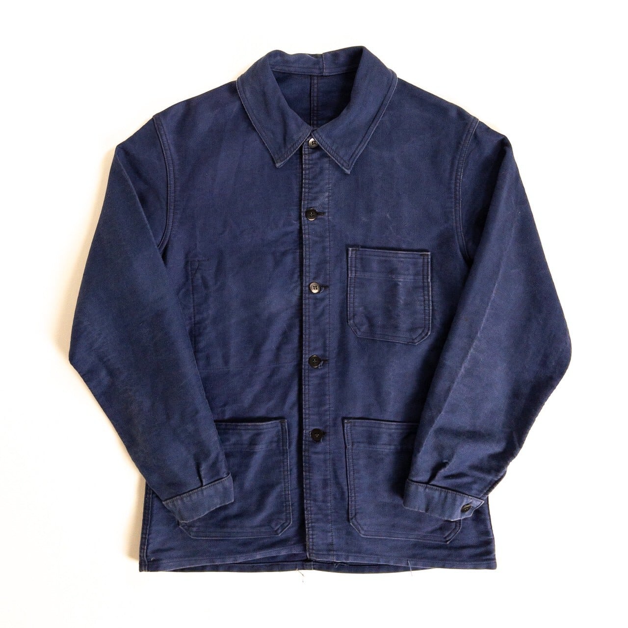 こちらは1950年代頃のフランス製ブルーモールスキンワークジャケットです。