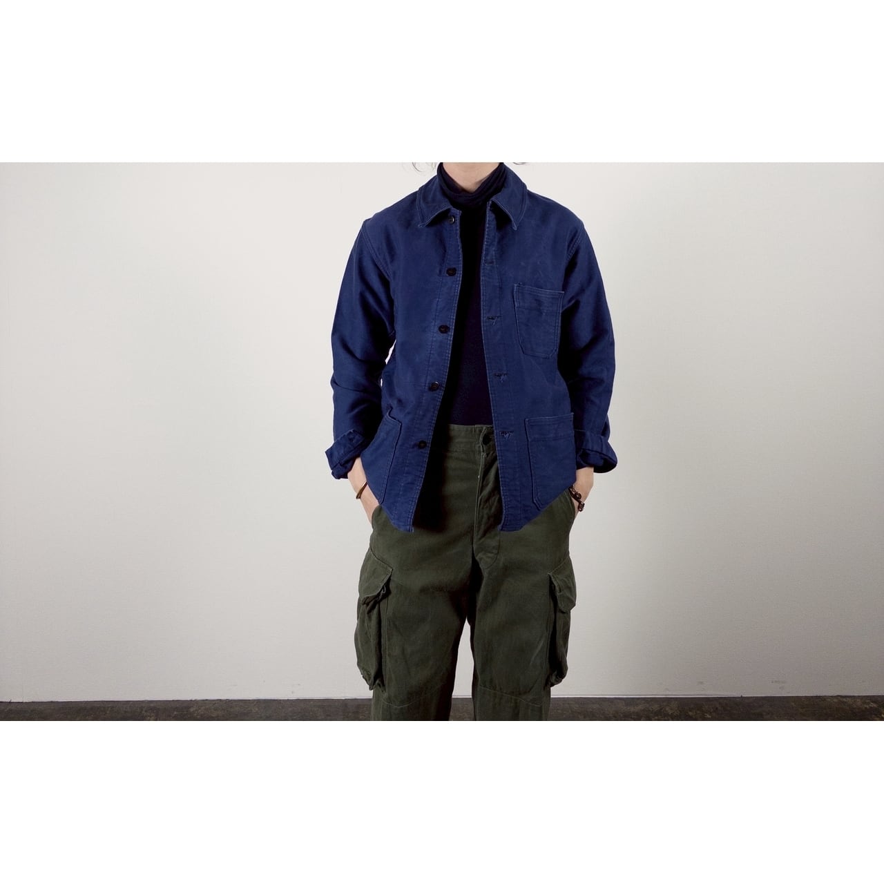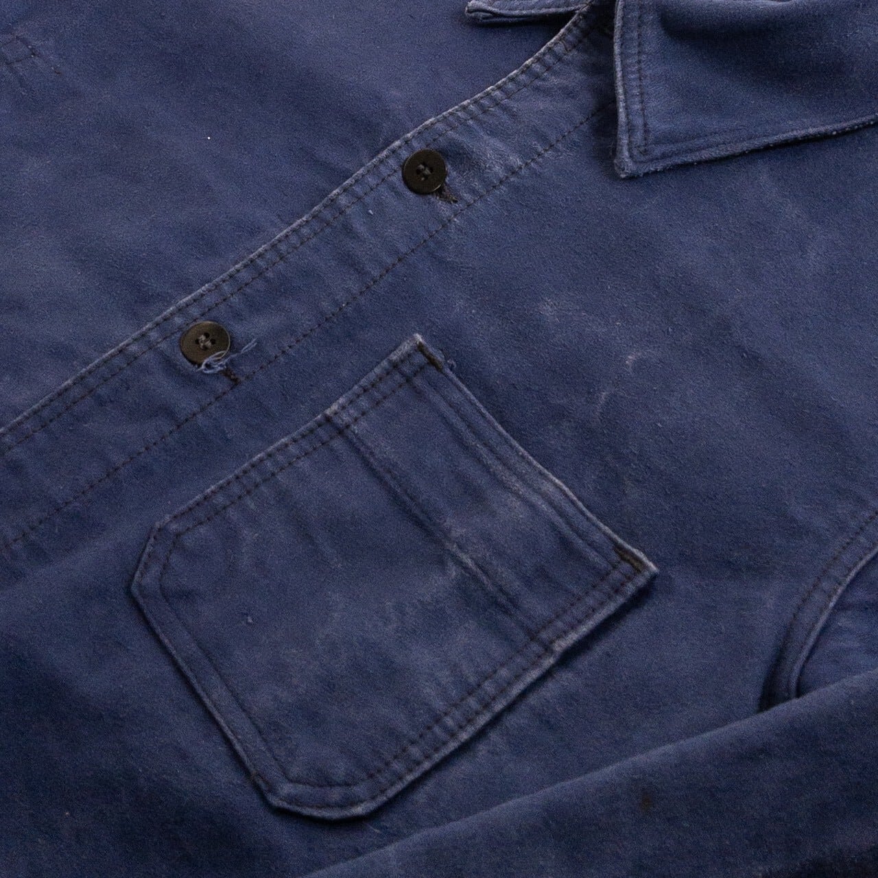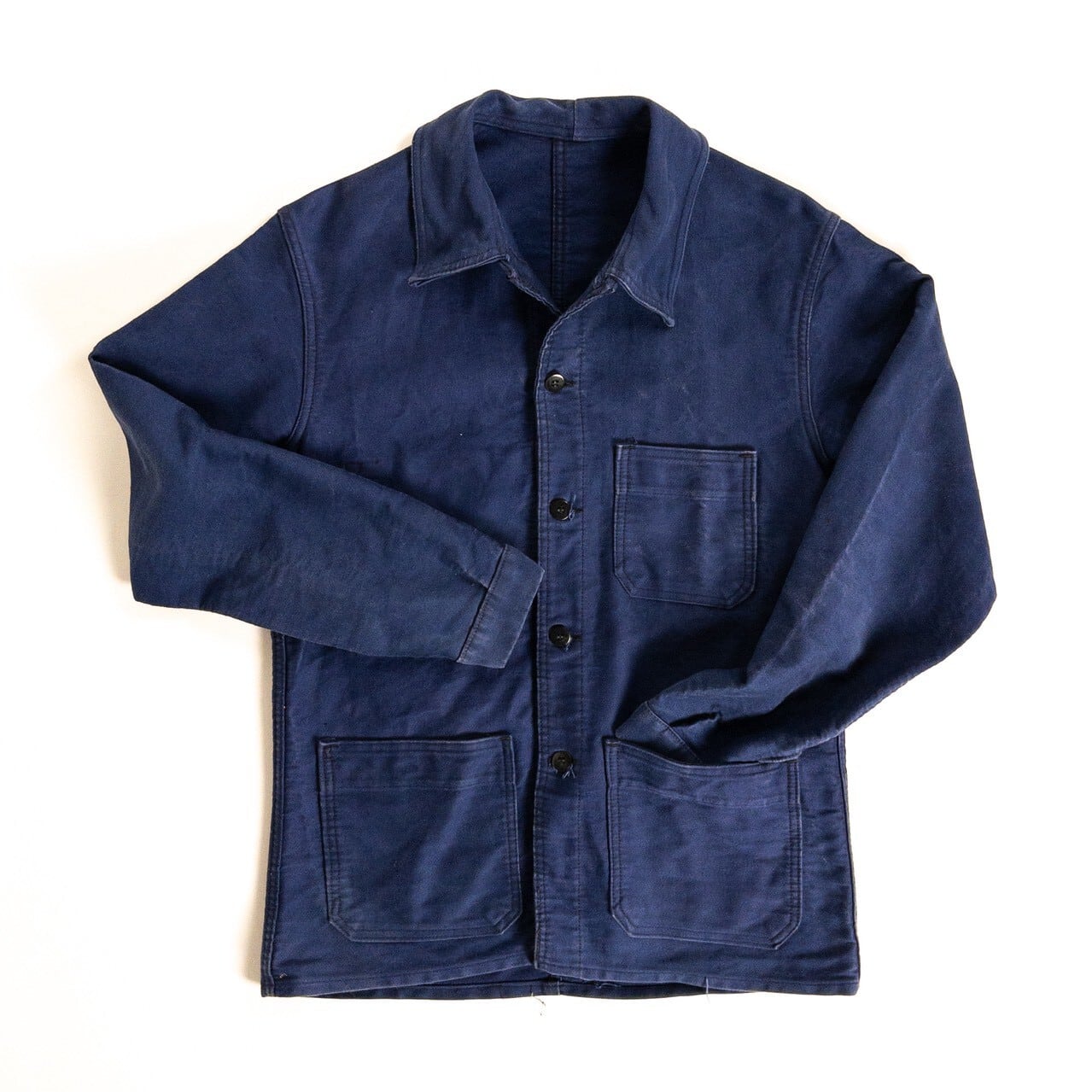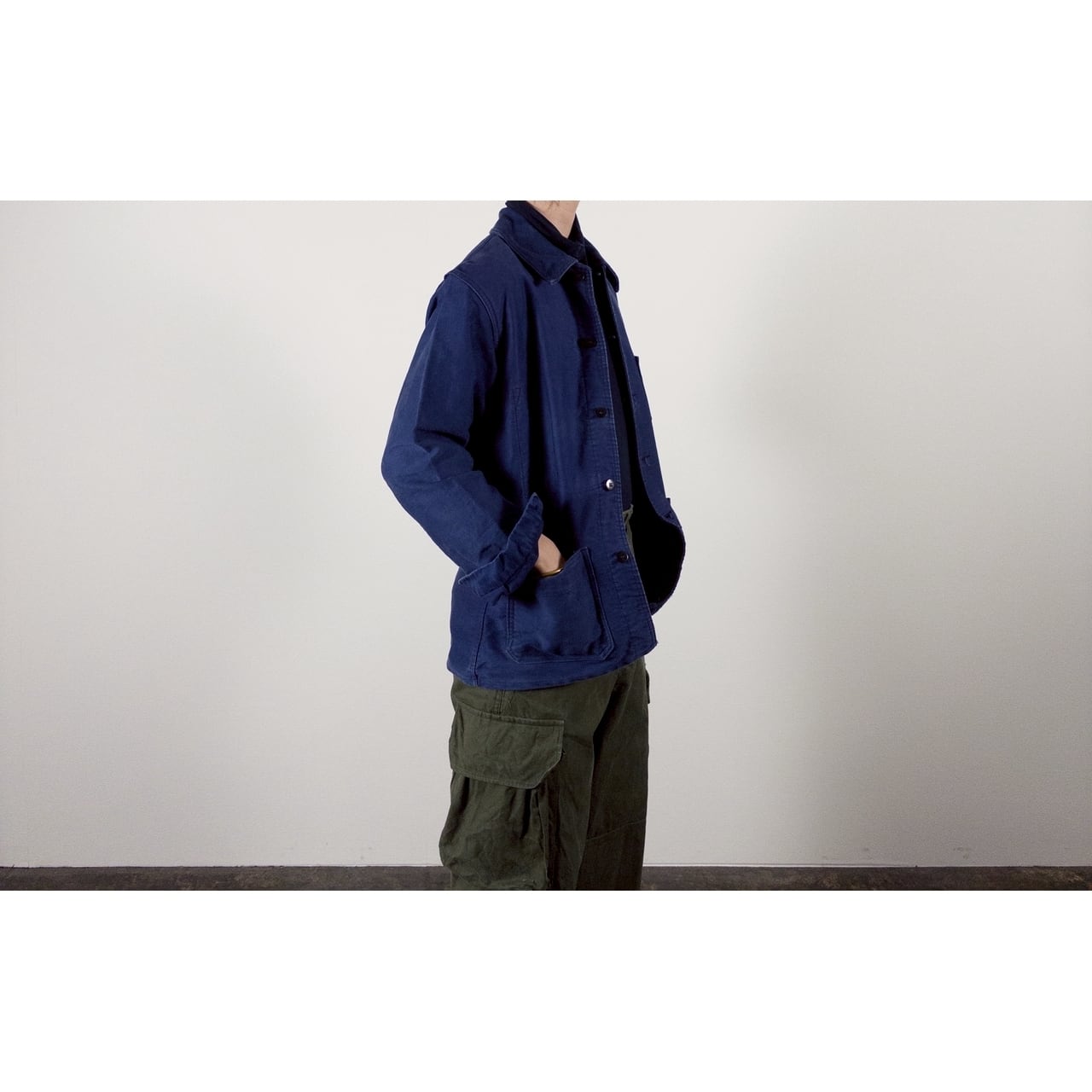 こちらは1950年代頃のフランス製ブルーモールスキンワークジャケットです。