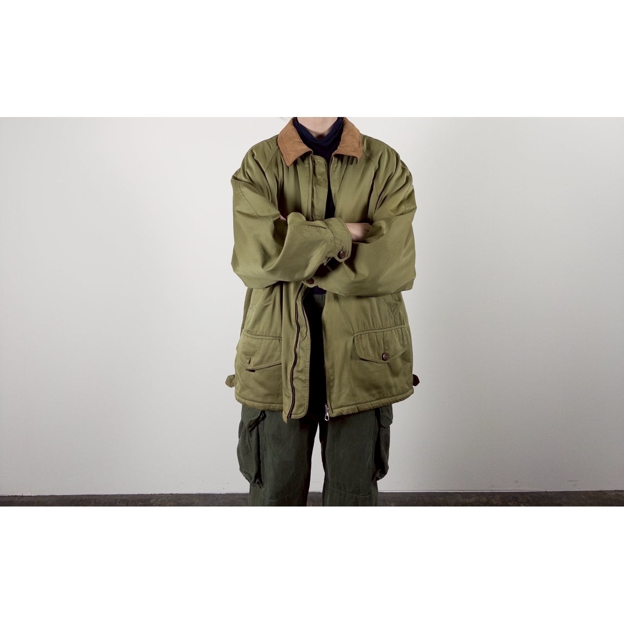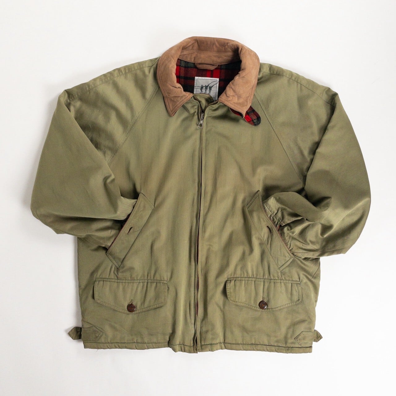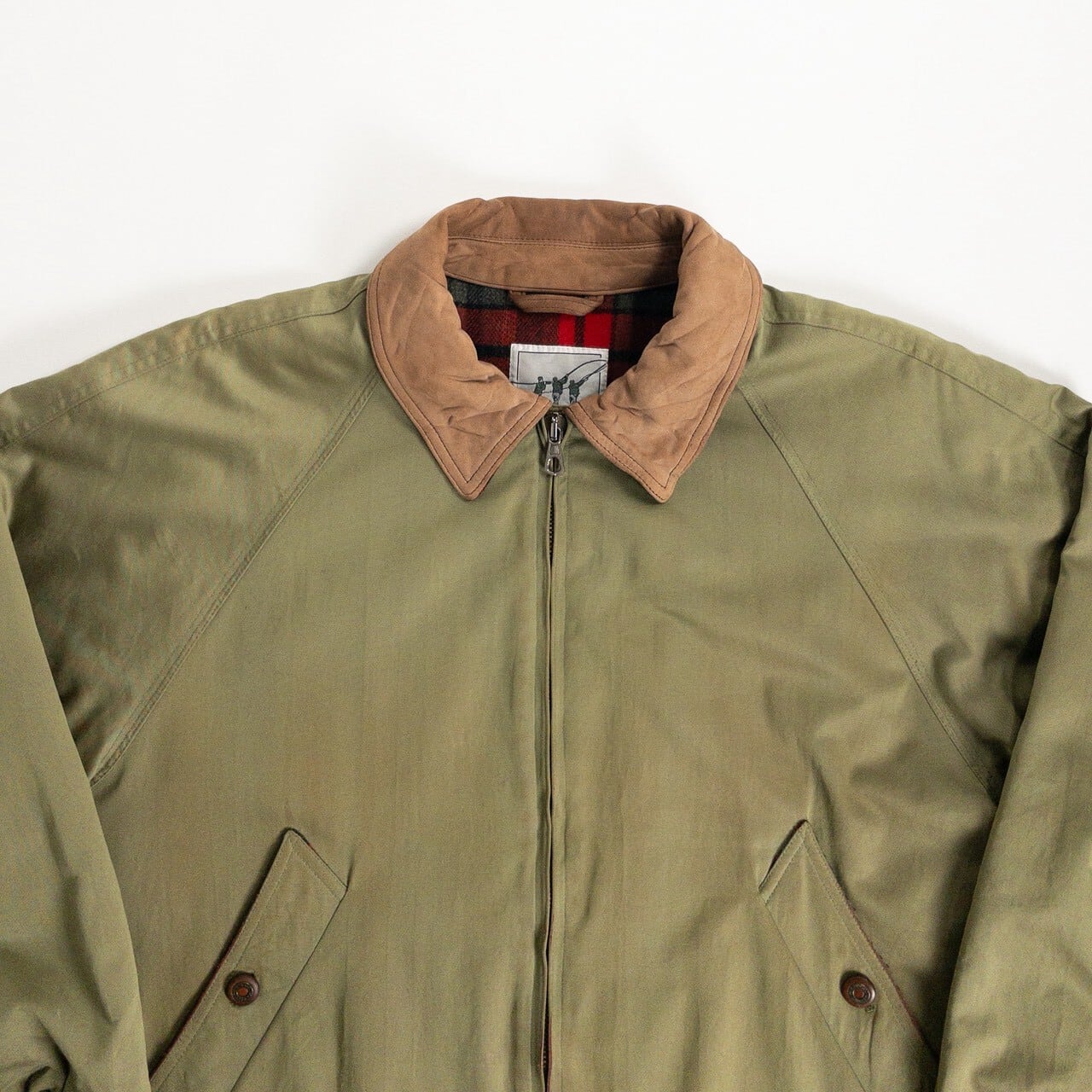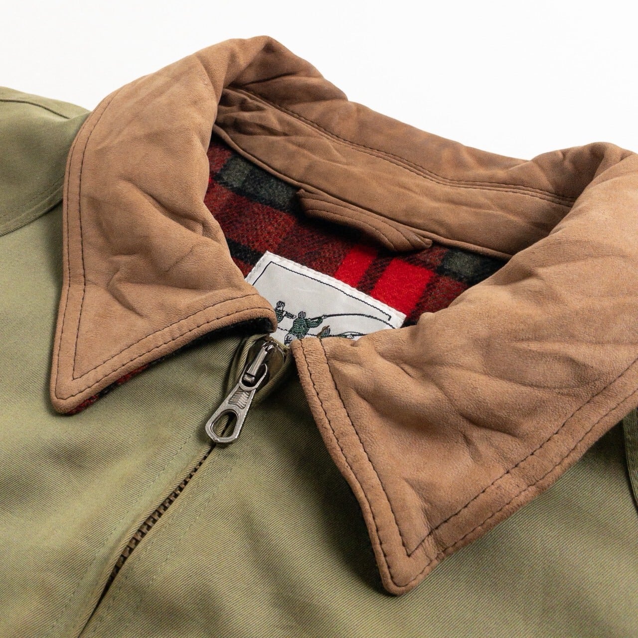 1980-90s "Europe Vintage" Khaki Cotton Sport Jacket with Suede Collar