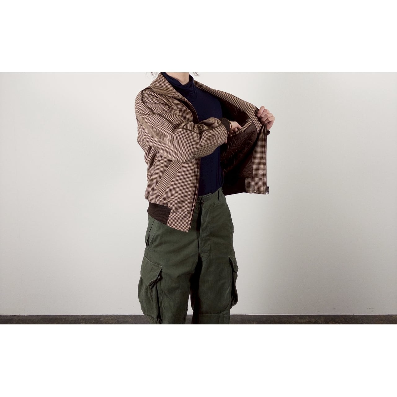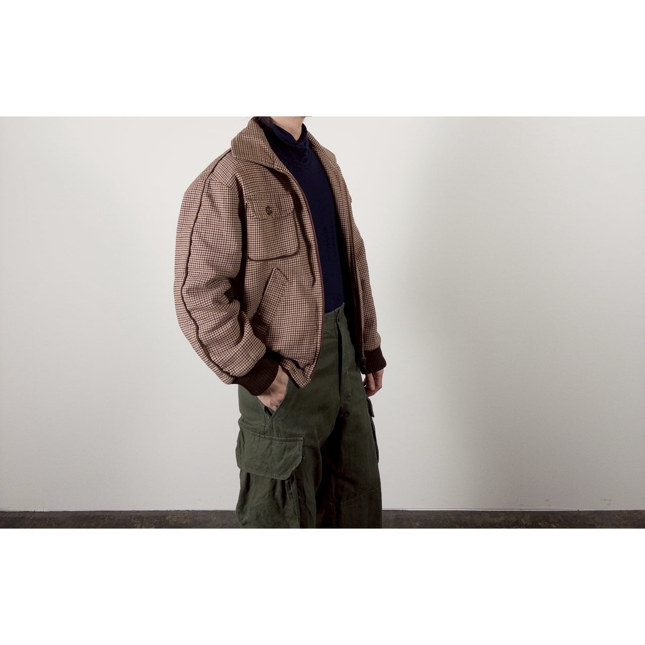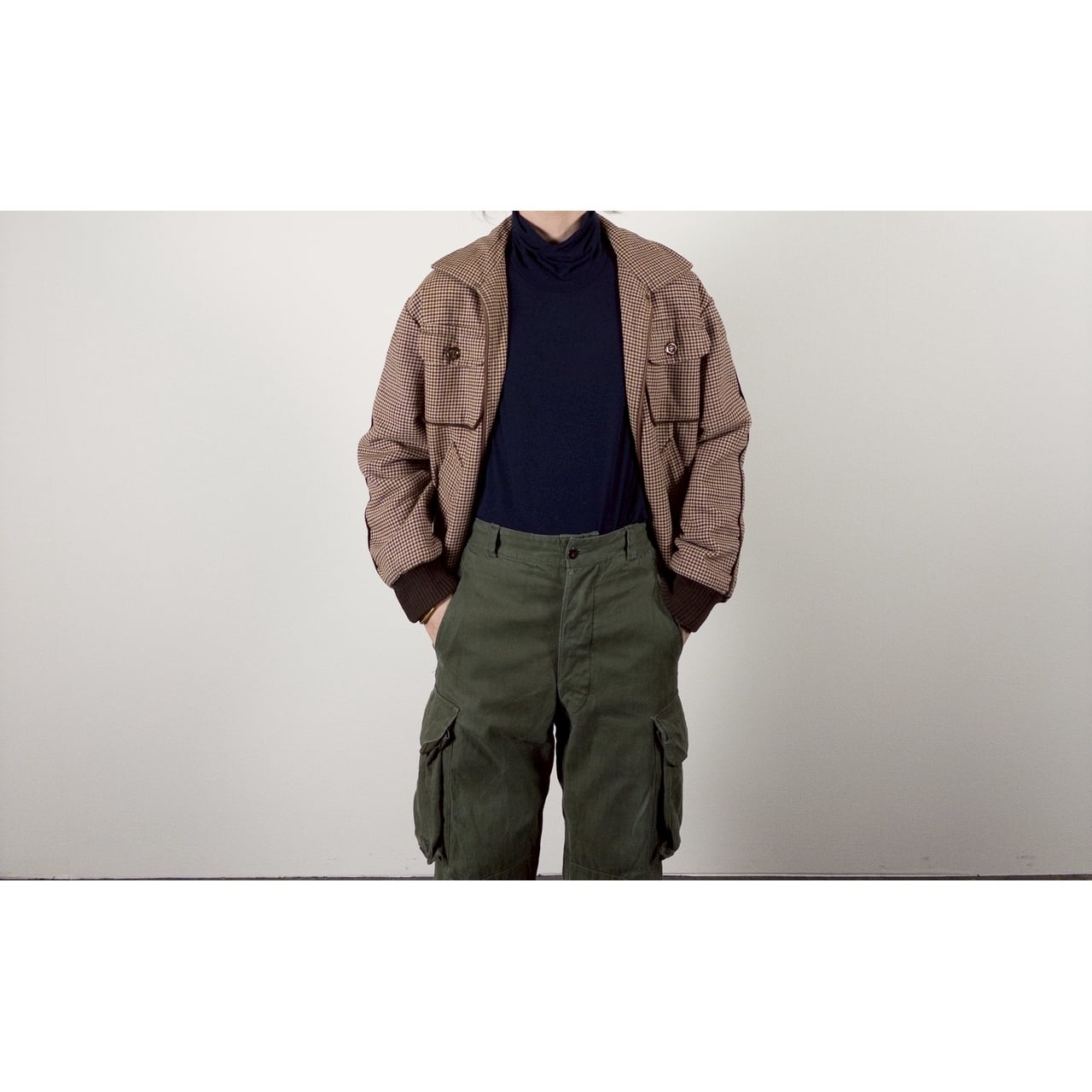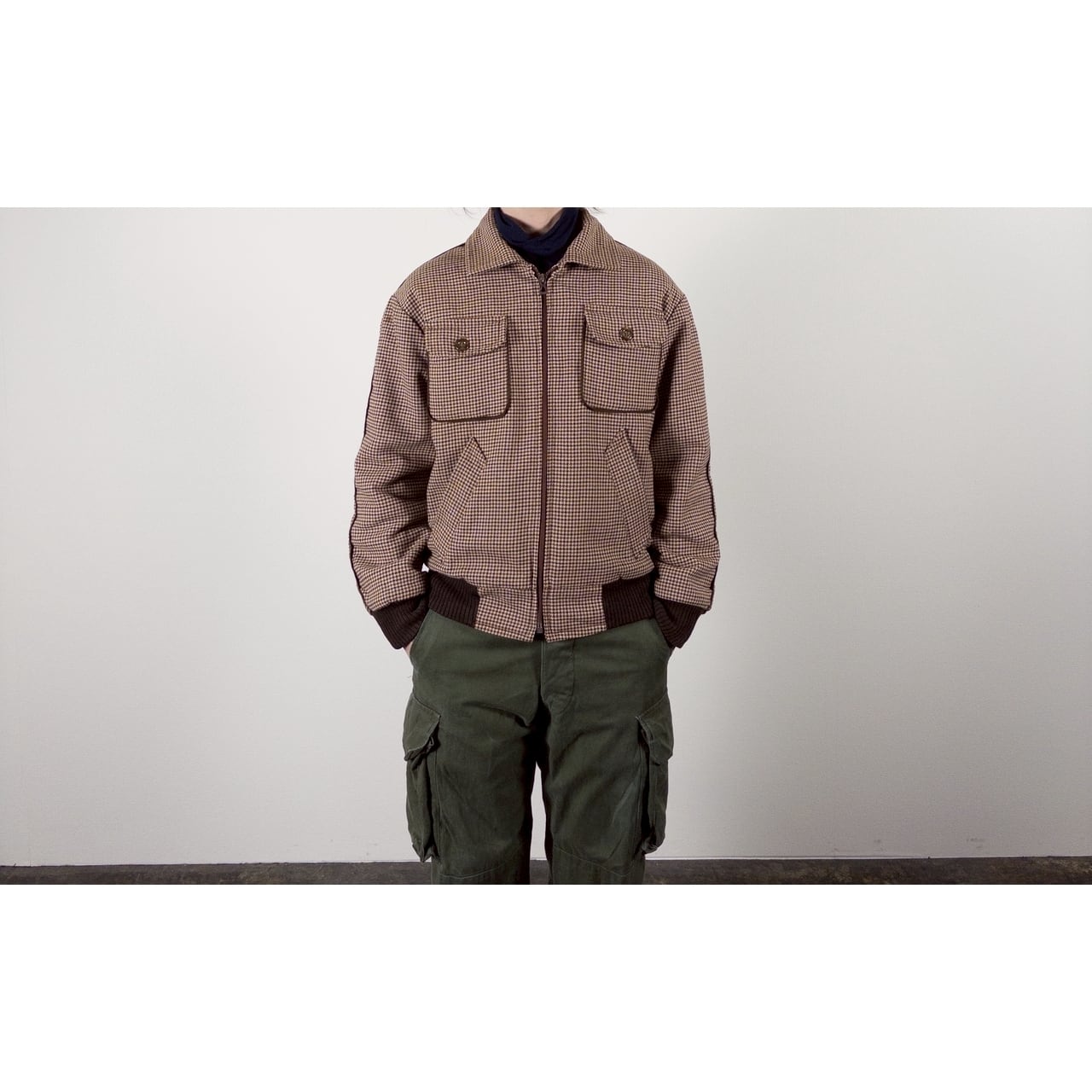 英国の風を感じるベージュのハウンドトゥース生地で、フロントには印象的だけどミニマルなフラップポケットが上手く馴染んだ、癖がありながらもシンプルな表情。