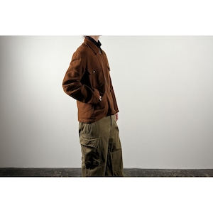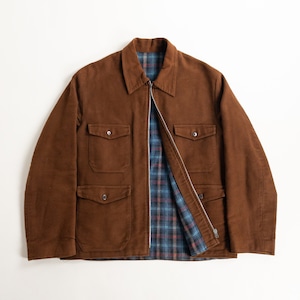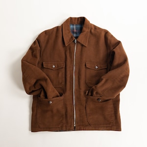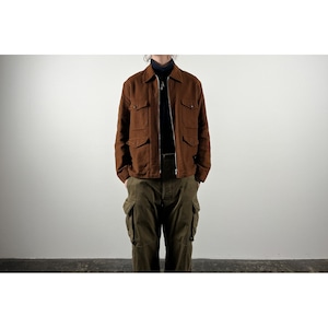 1960s "French Vintage" Brown Peach Skin 4 Pockets Cyclist Work Jacket