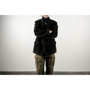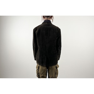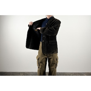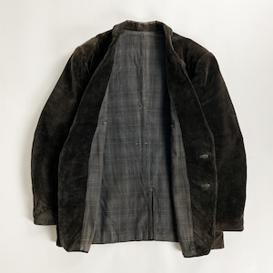 1940s "Le Mont St Michel" Black Heavy Corduroy Farmers Lapeled Work Jacket