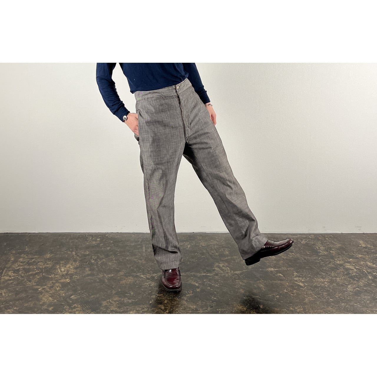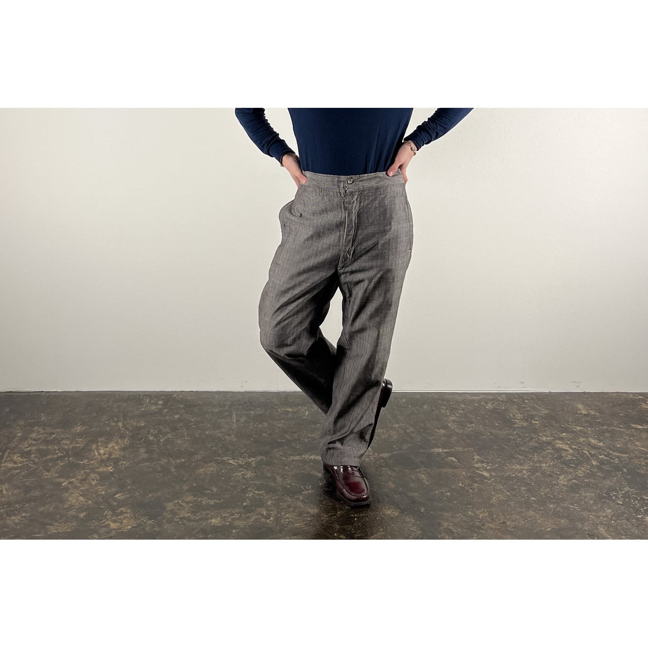 1930-40s "French Vintage" Gray Cotton Stripe Work Trousers