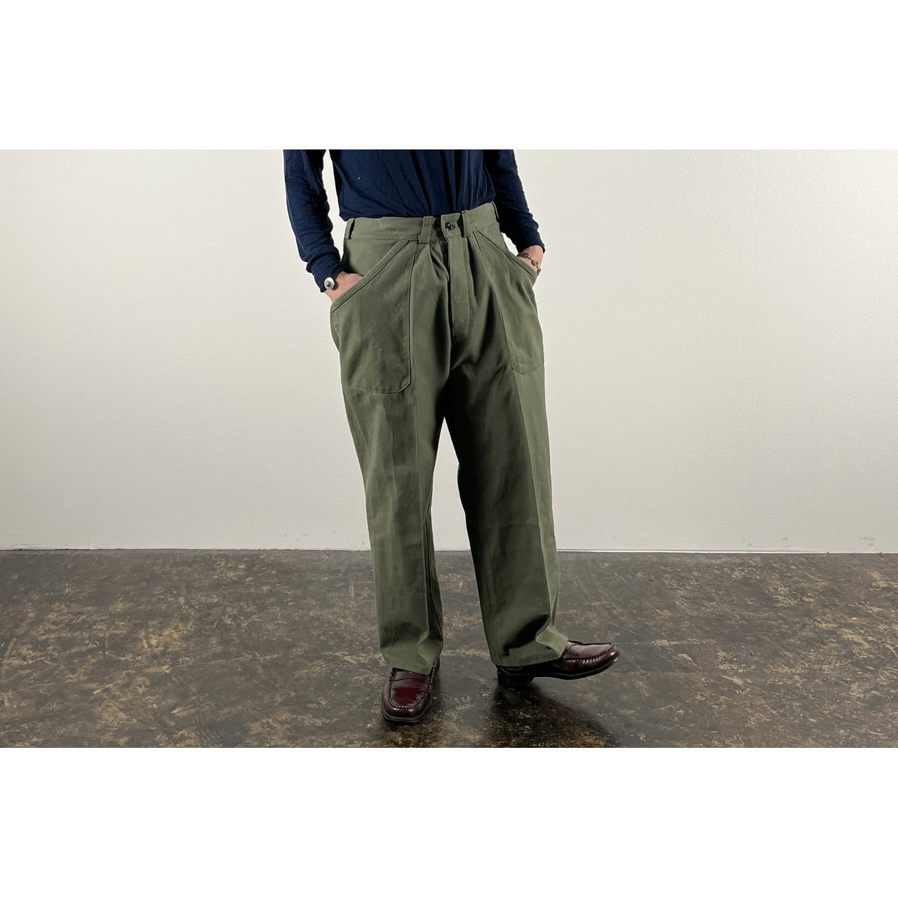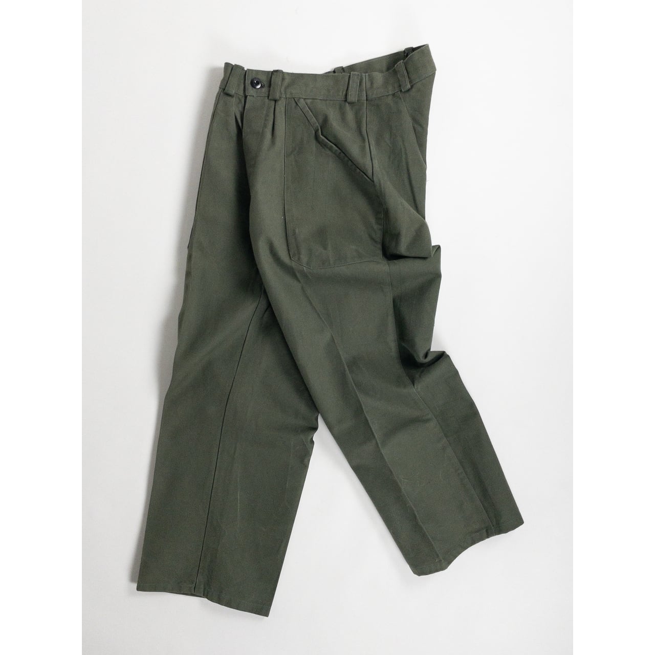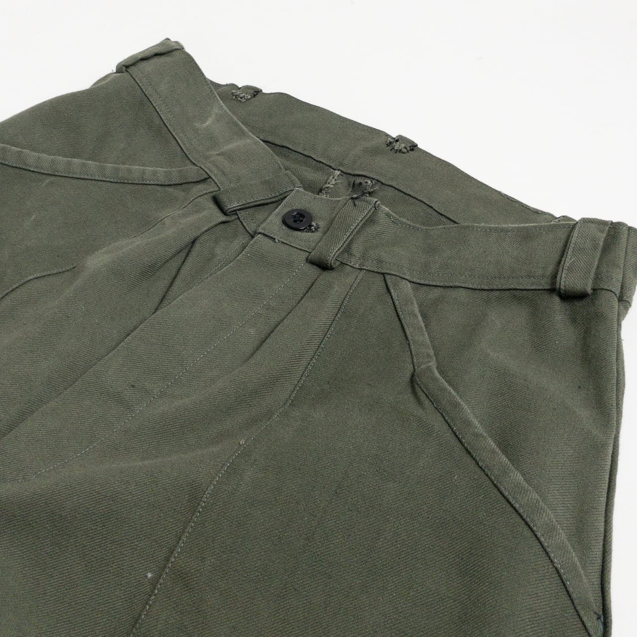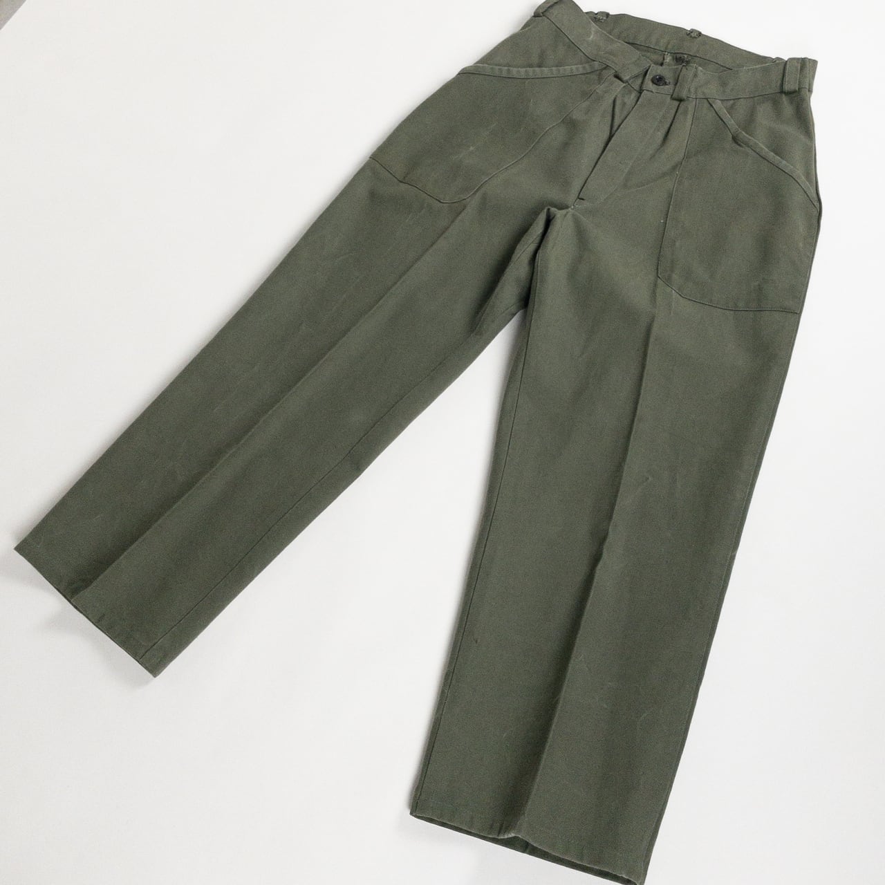 1950s "French Vintage" Olive Cotton Twill Work Trousers with French Military Fabric