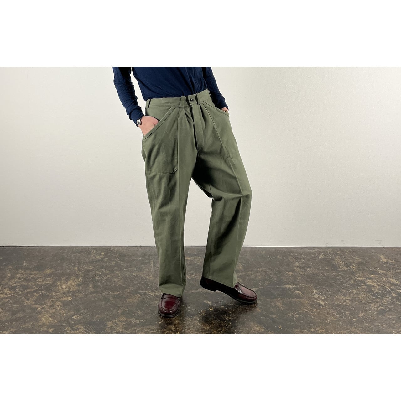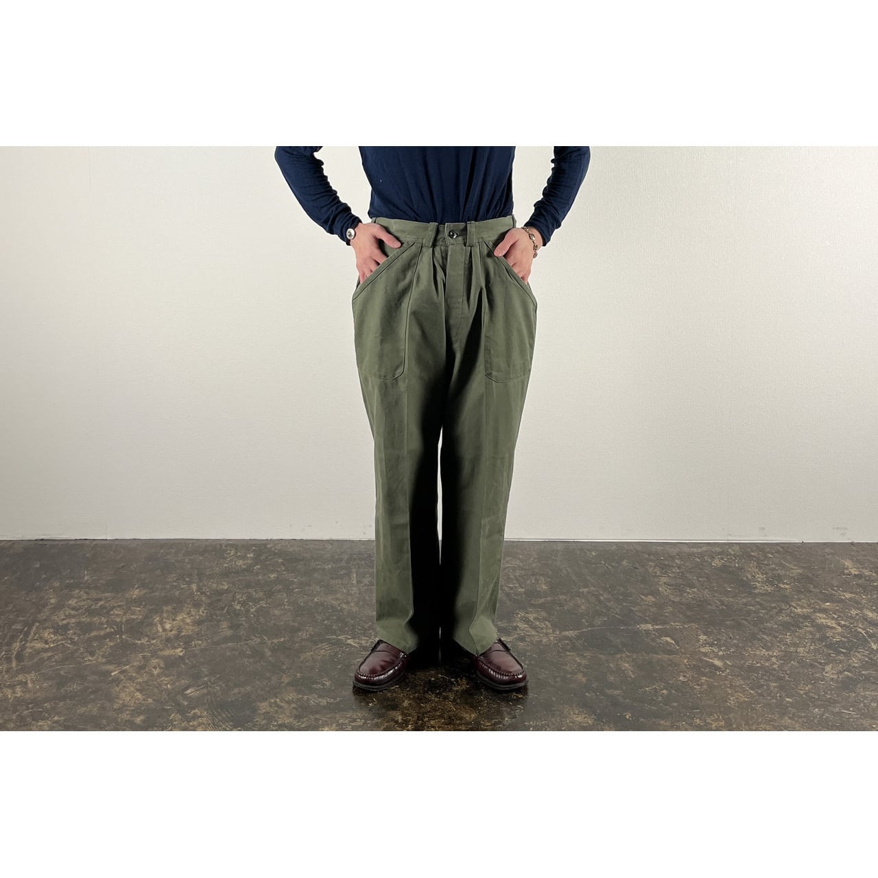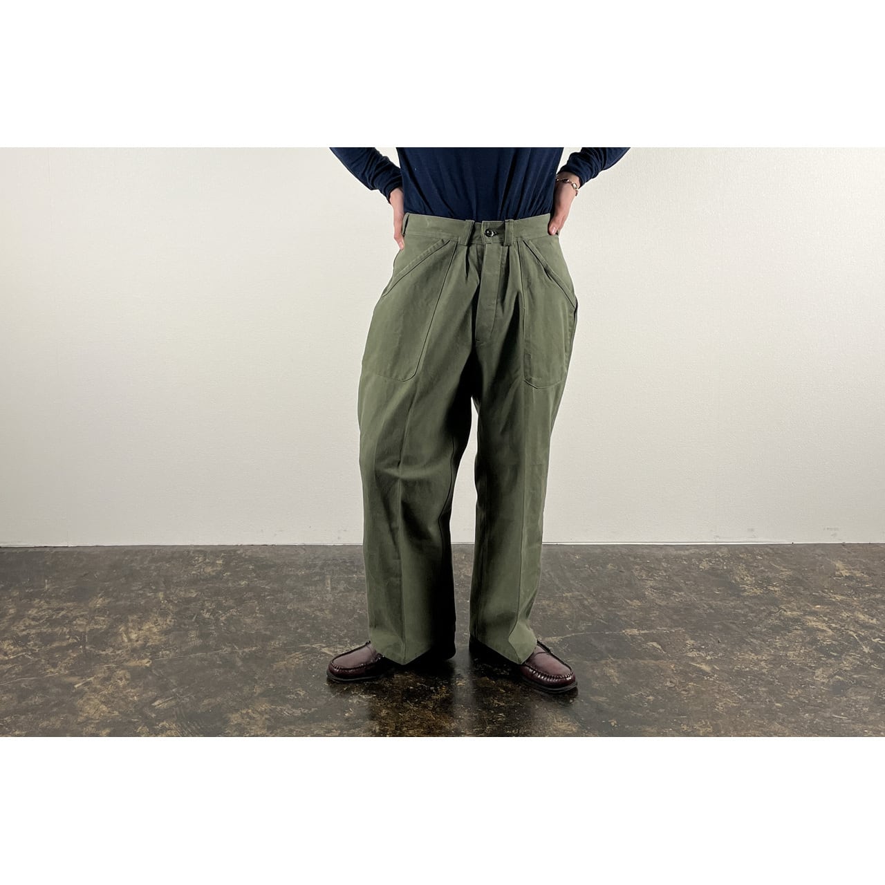 1950s "French Vintage" Olive Cotton Twill Work Trousers with French Military Fabric