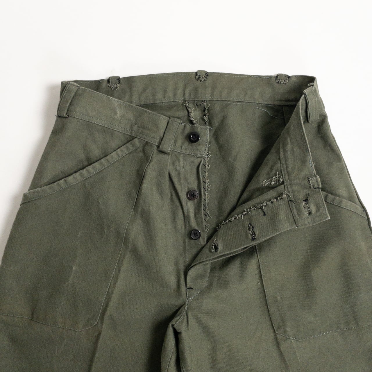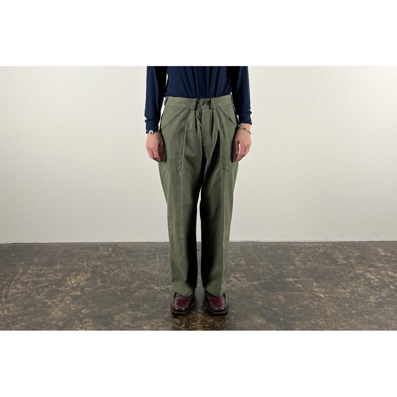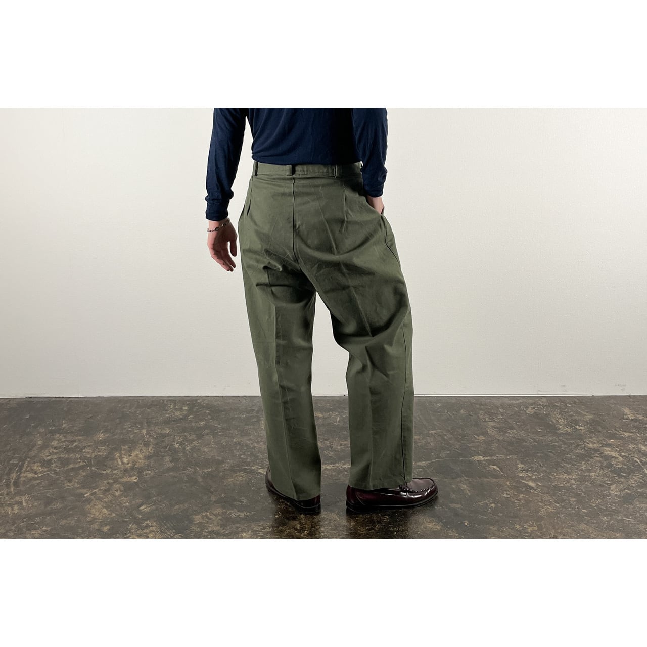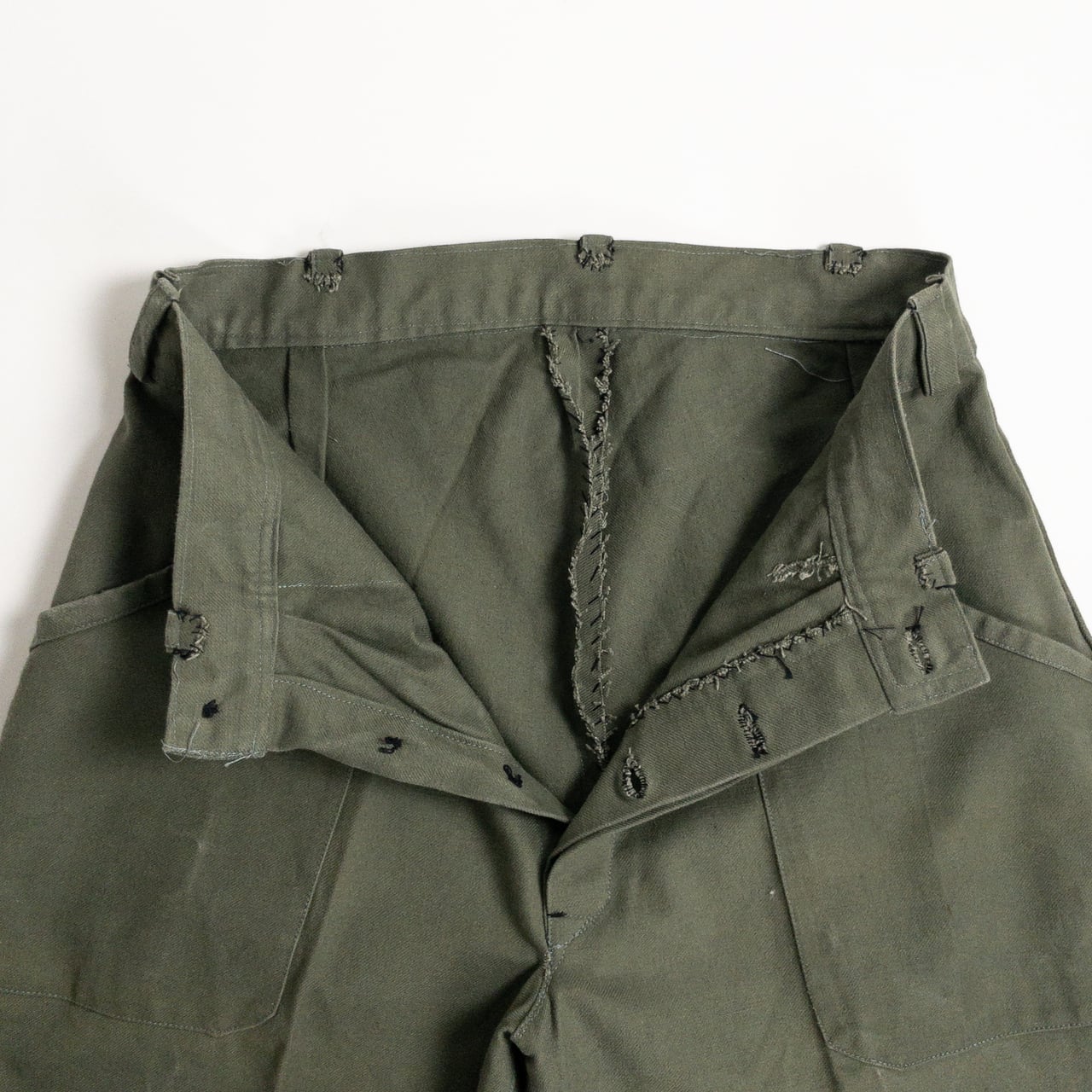 1950s "French Vintage" Olive Cotton Twill Work Trousers with French Military Fabric