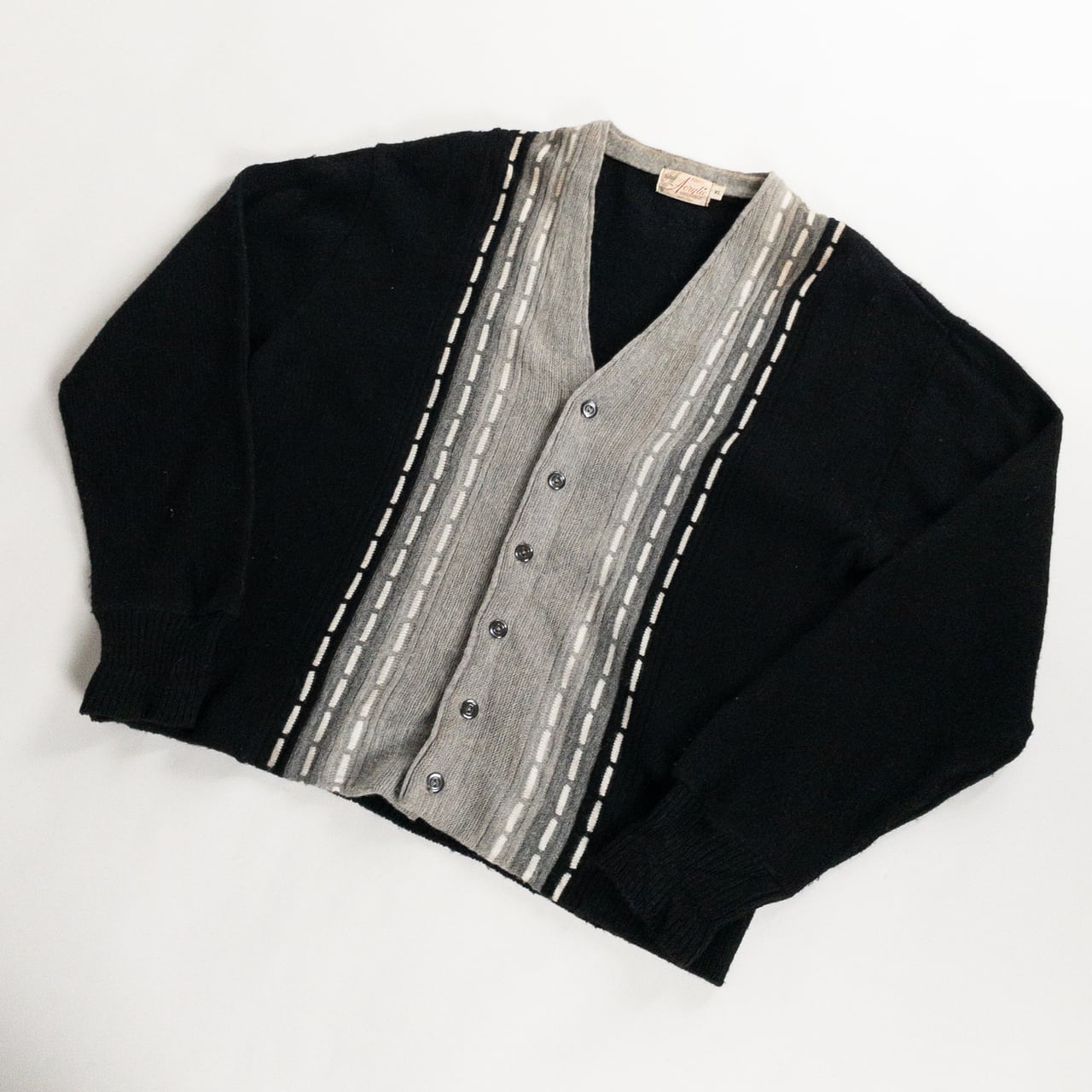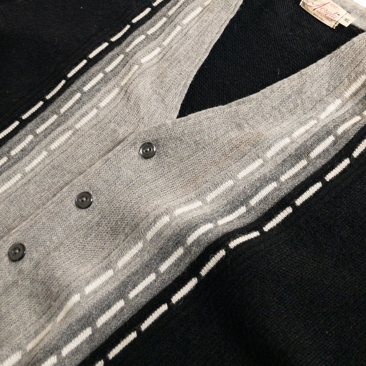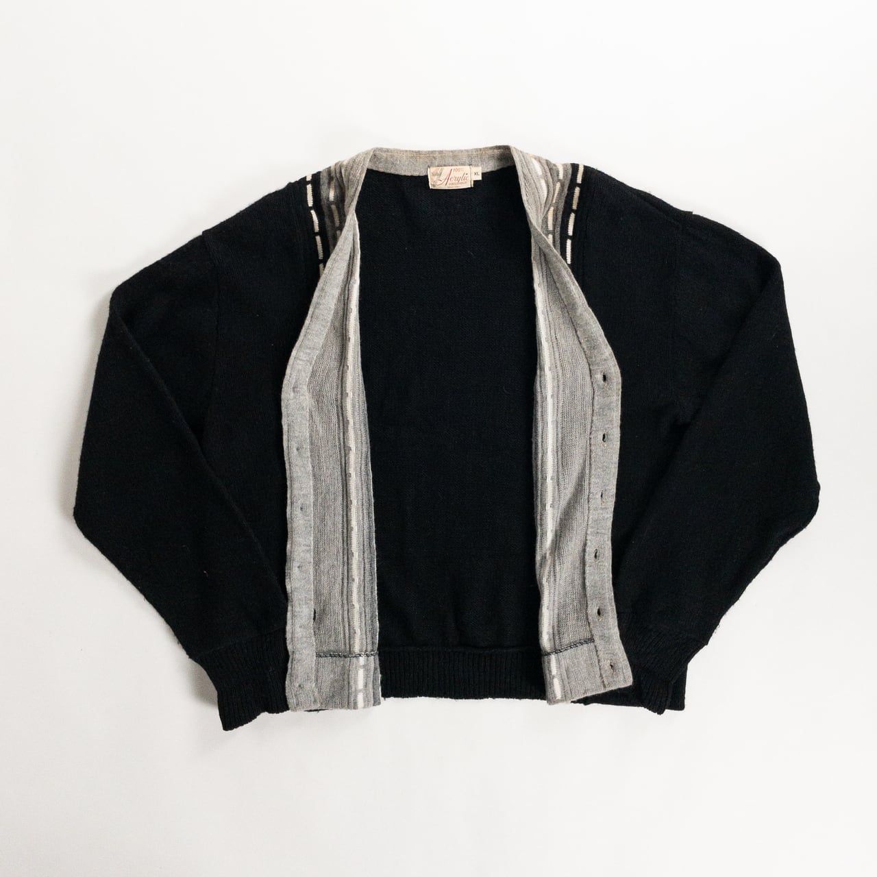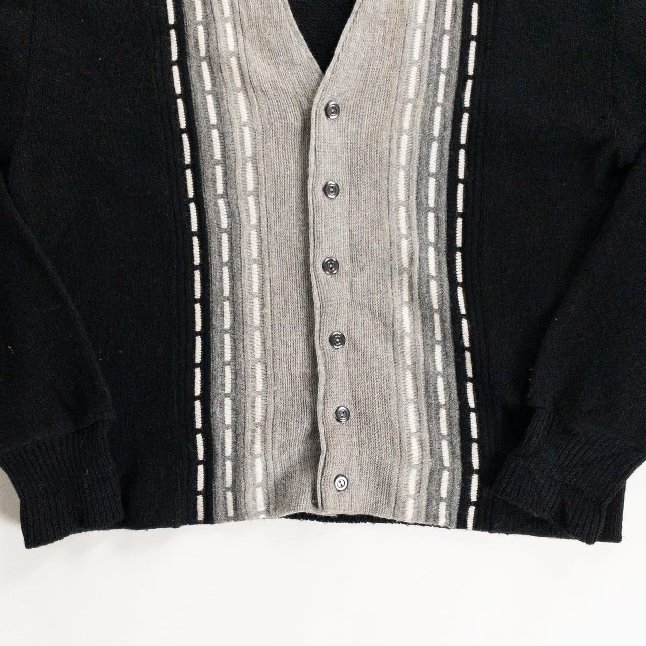 1970s Acrylic Black × Gray Cardigan