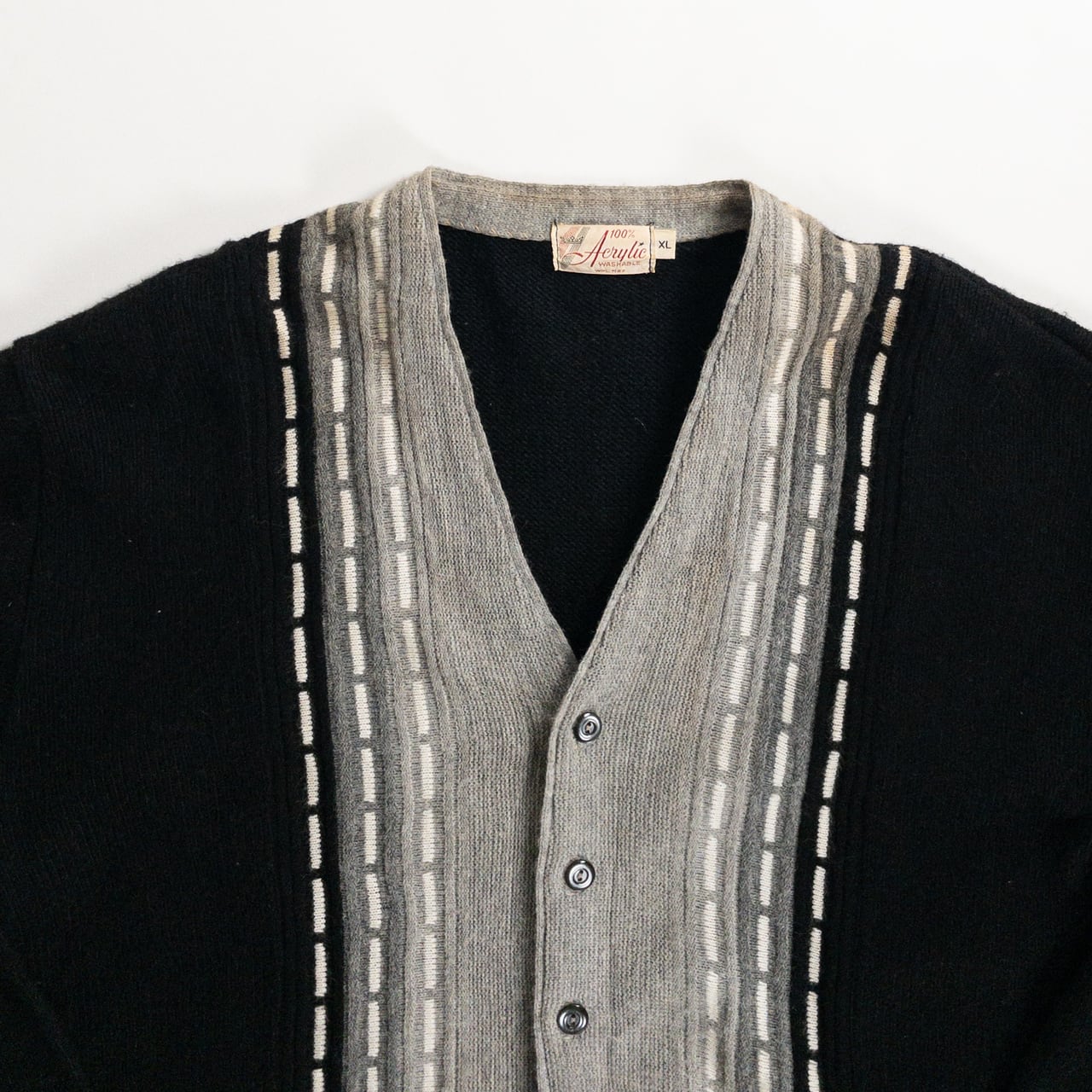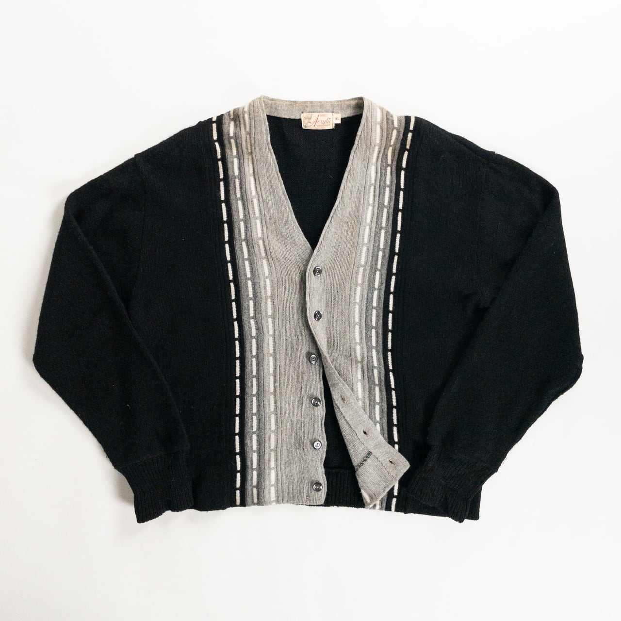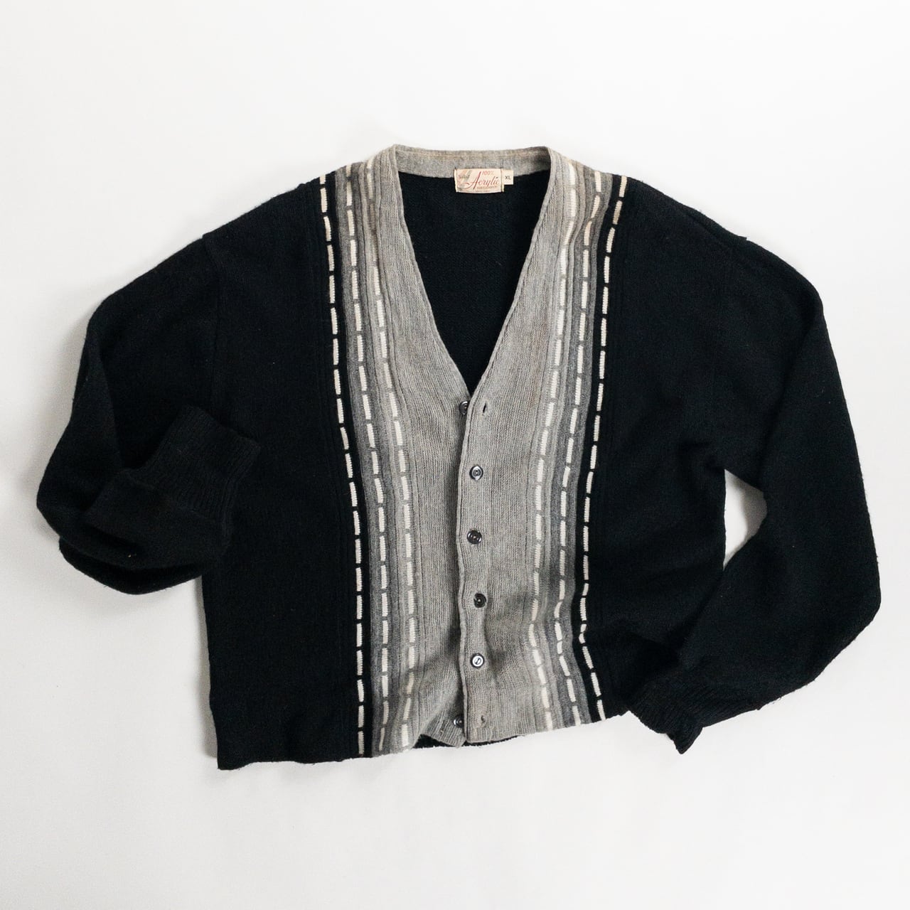 1970s Acrylic Black × Gray Cardigan