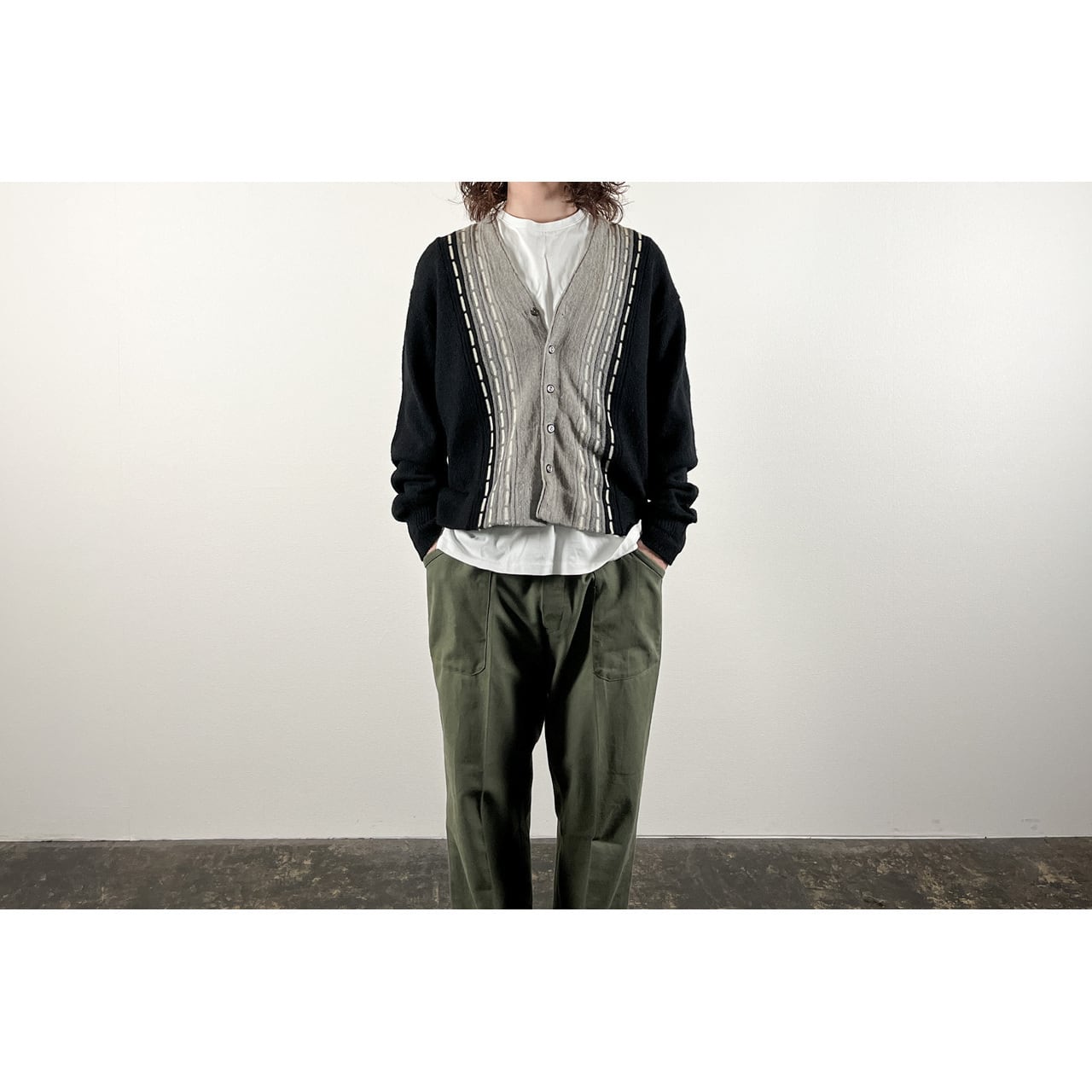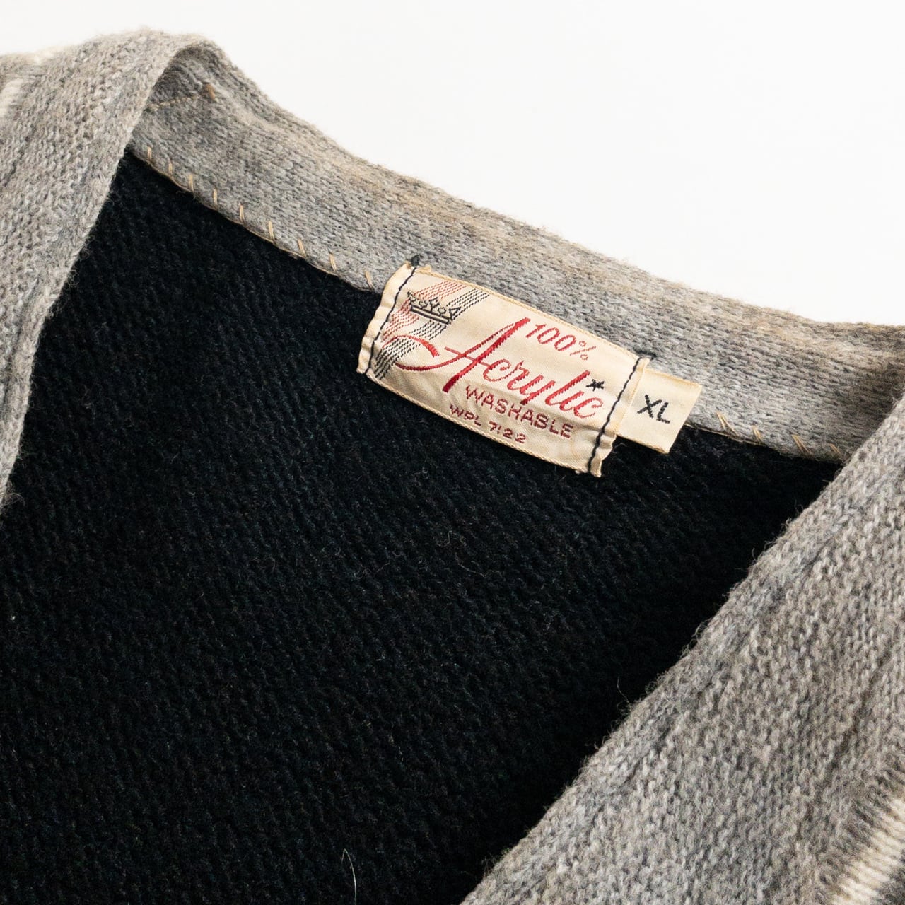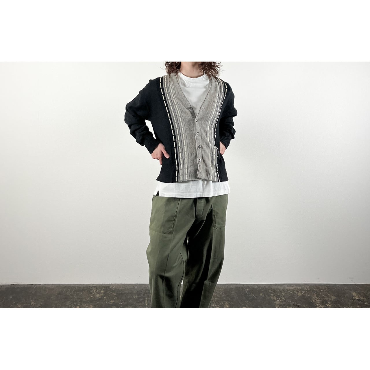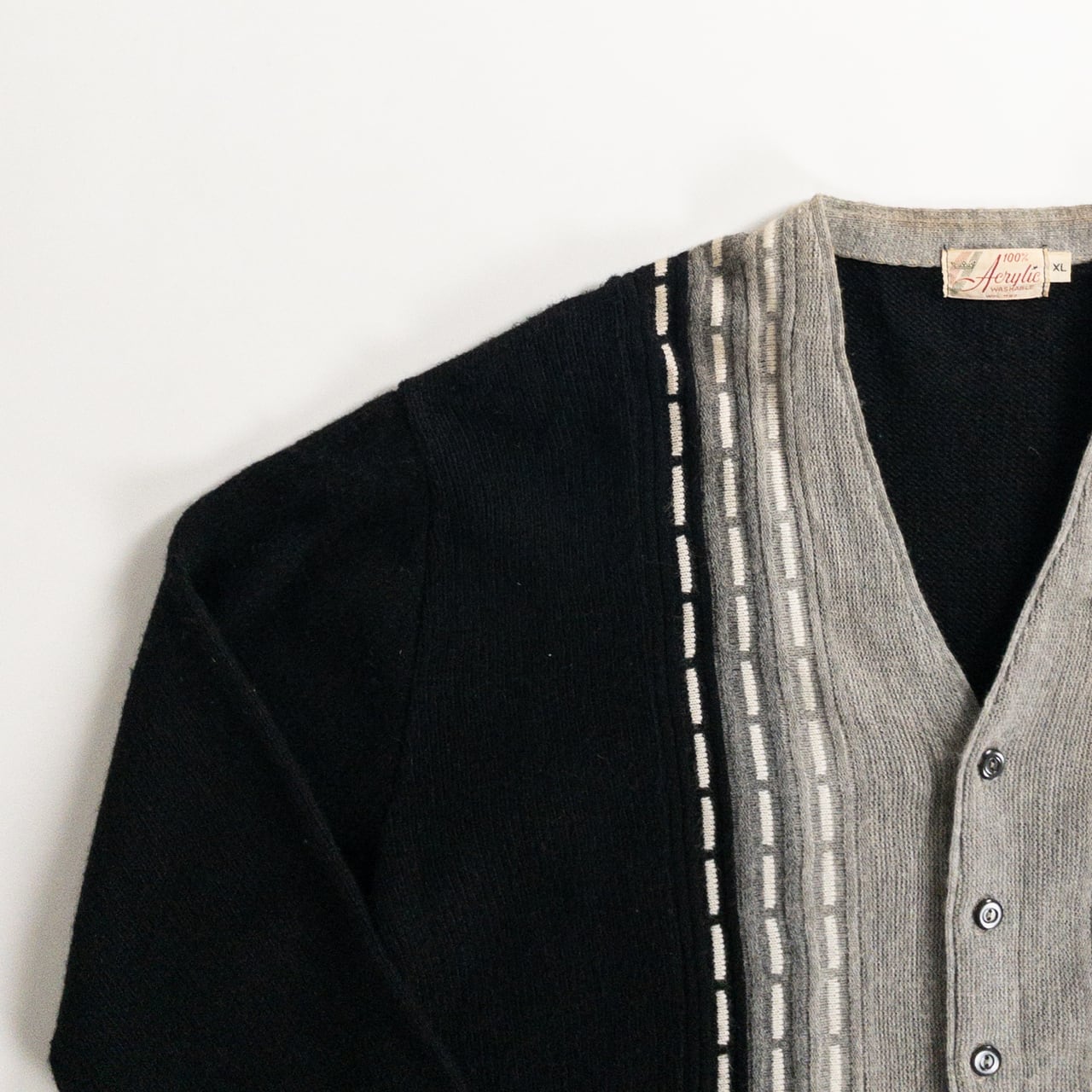 1970s Acrylic Black × Gray Cardigan