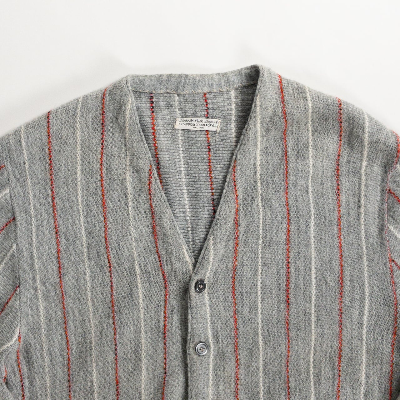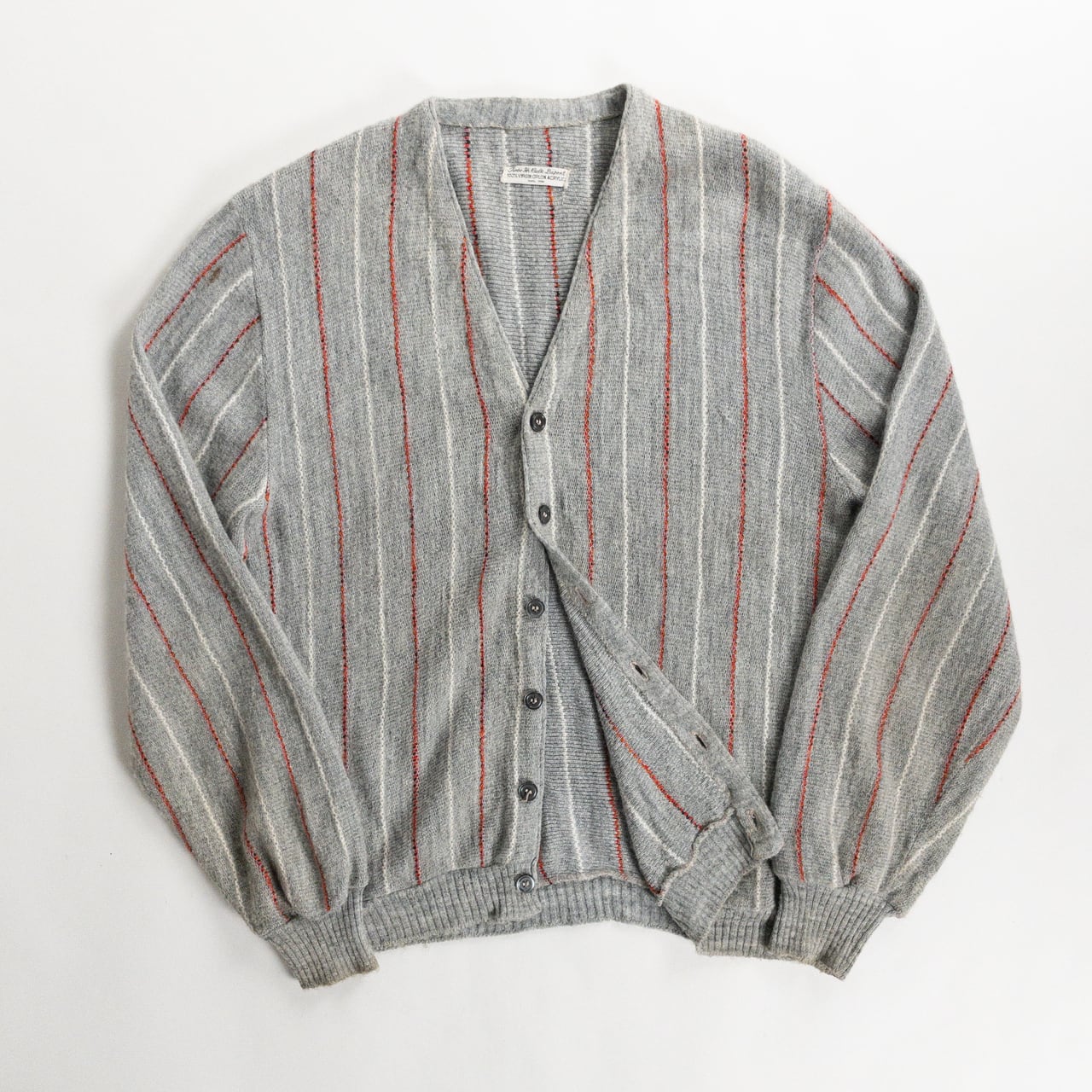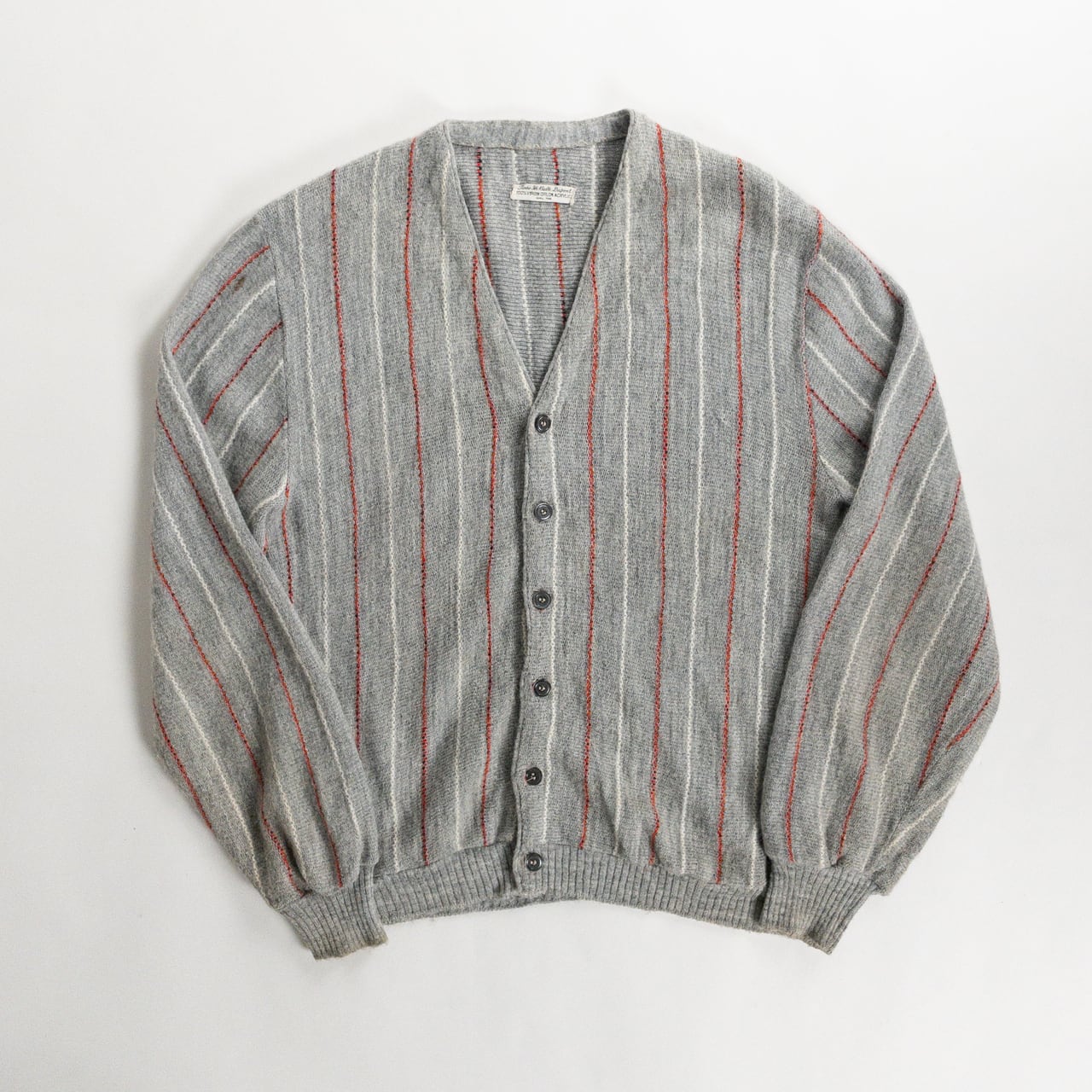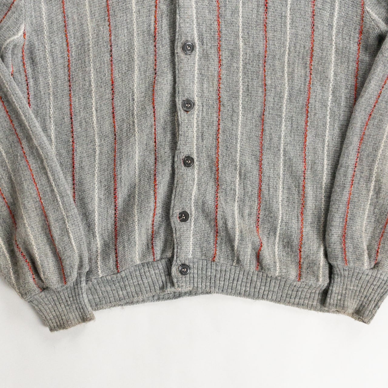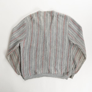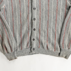 1970s Acrylic Gray Red Stripe Cardigan