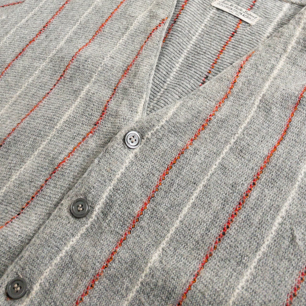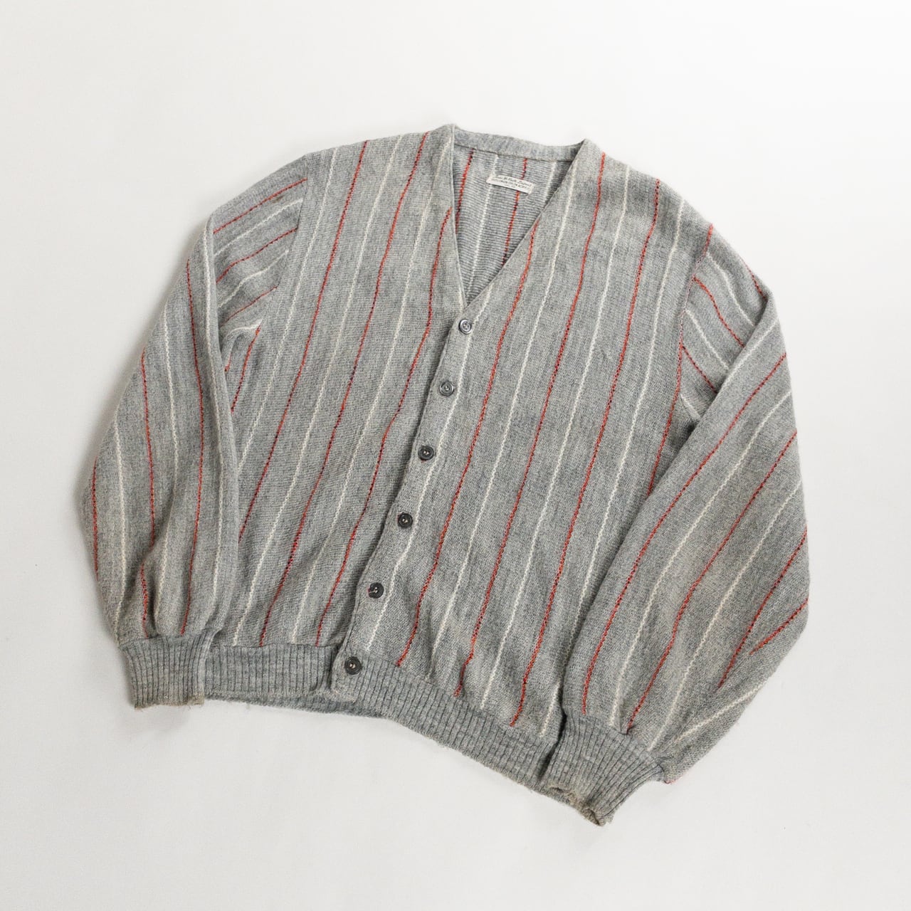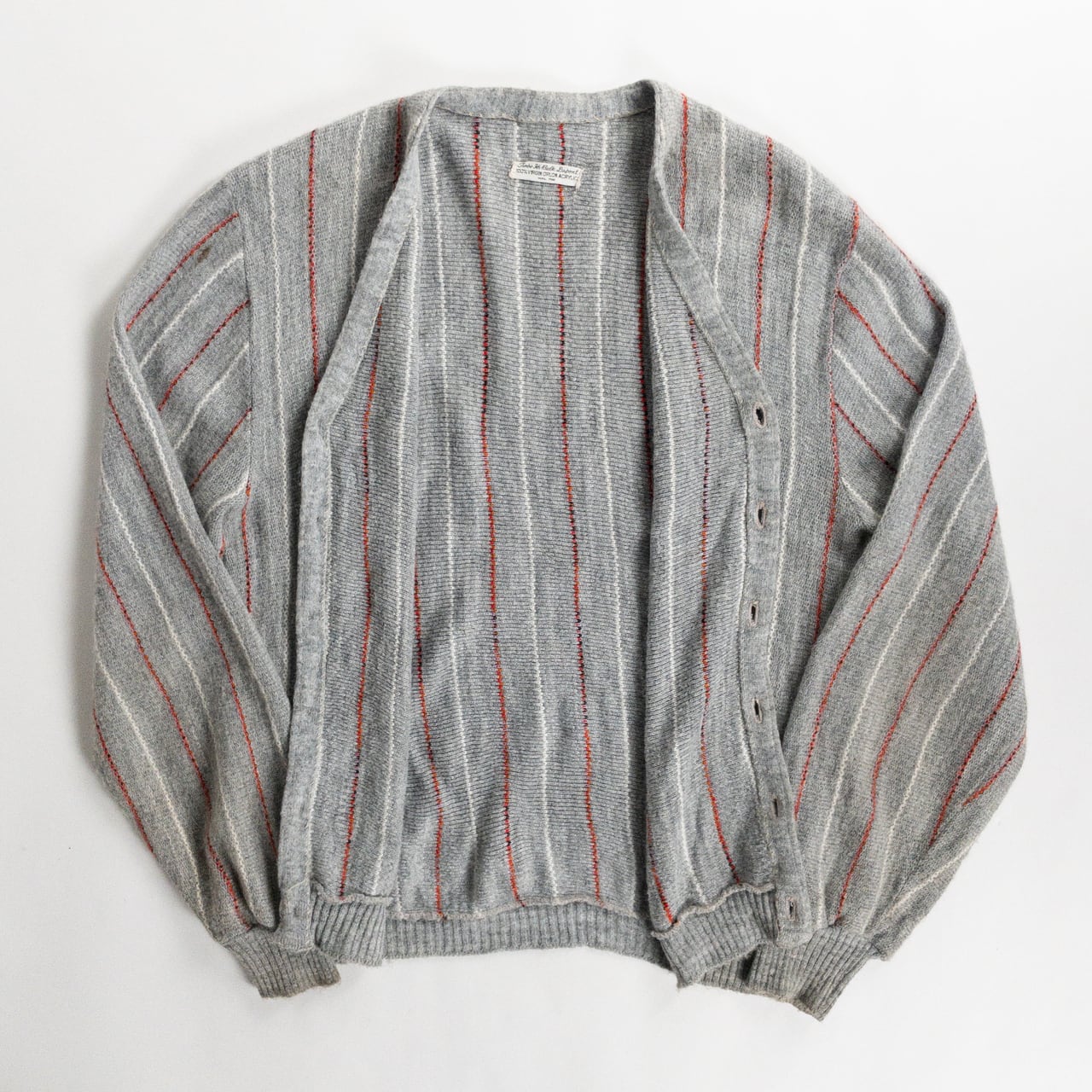 1970s Acrylic Gray Red Stripe Cardigan