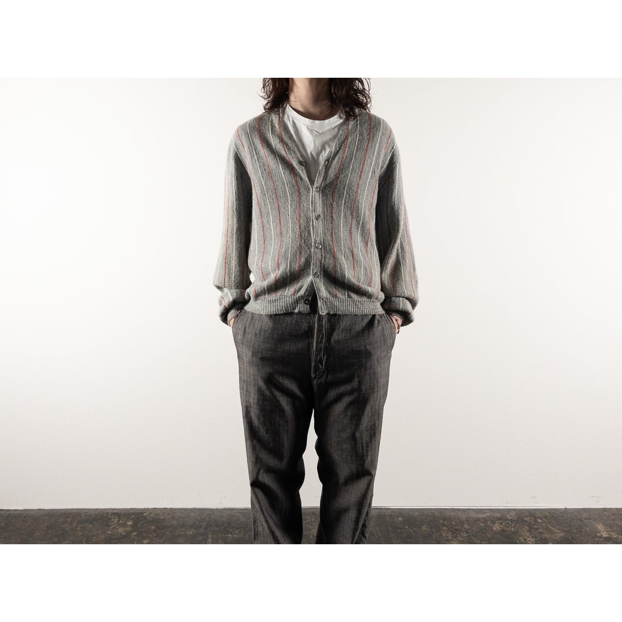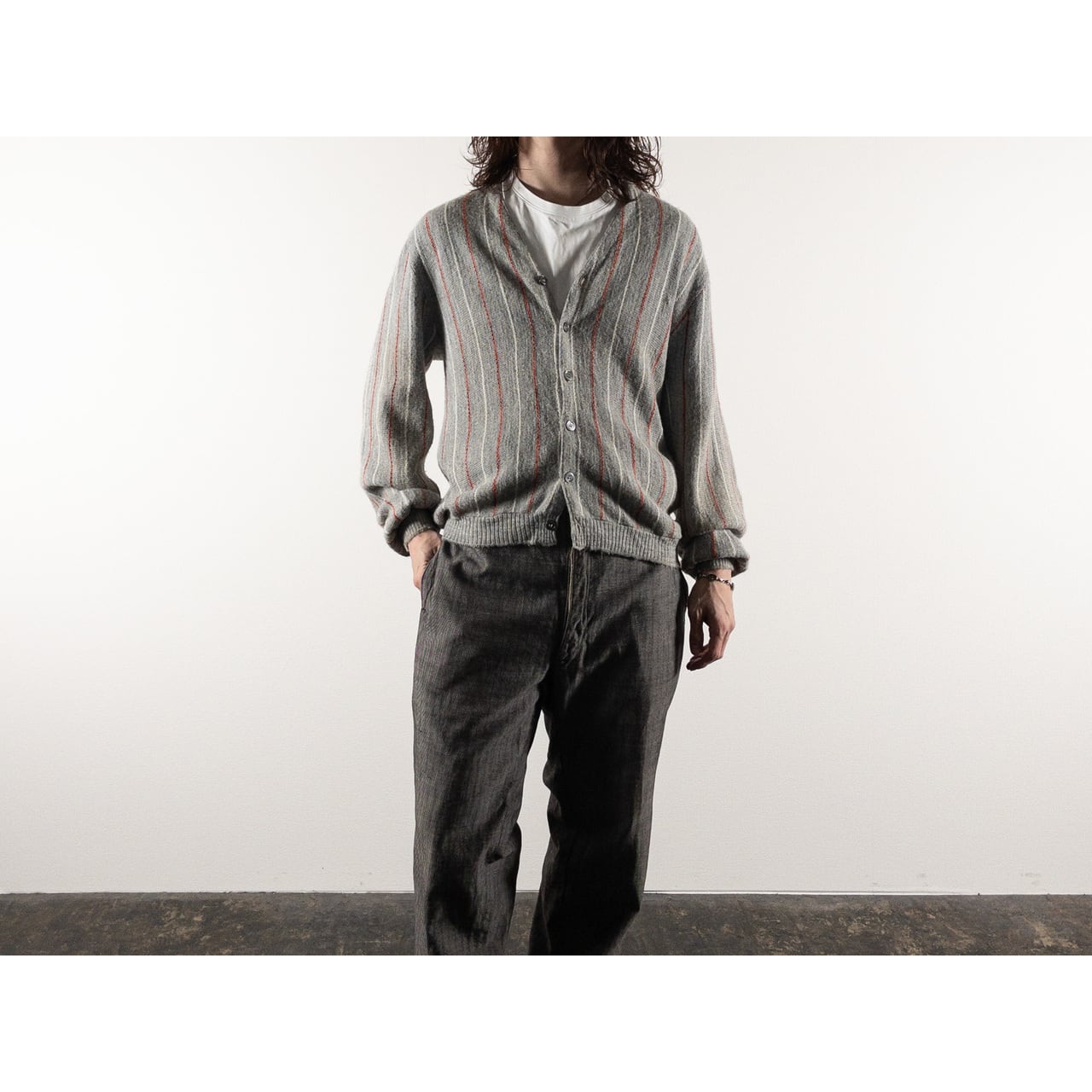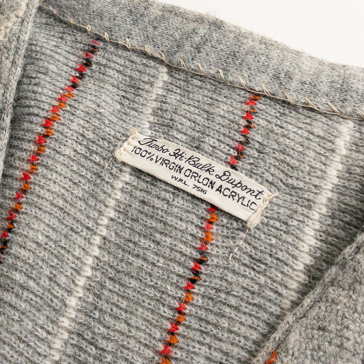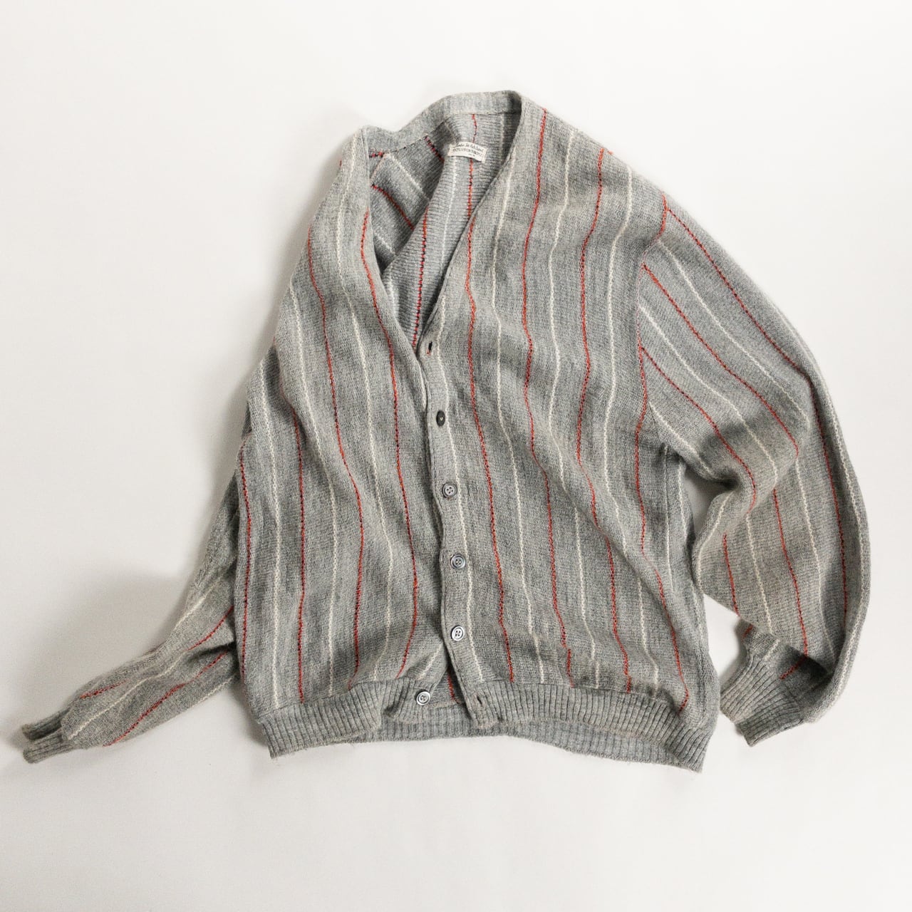 1970s Acrylic Gray Red Stripe Cardigan
