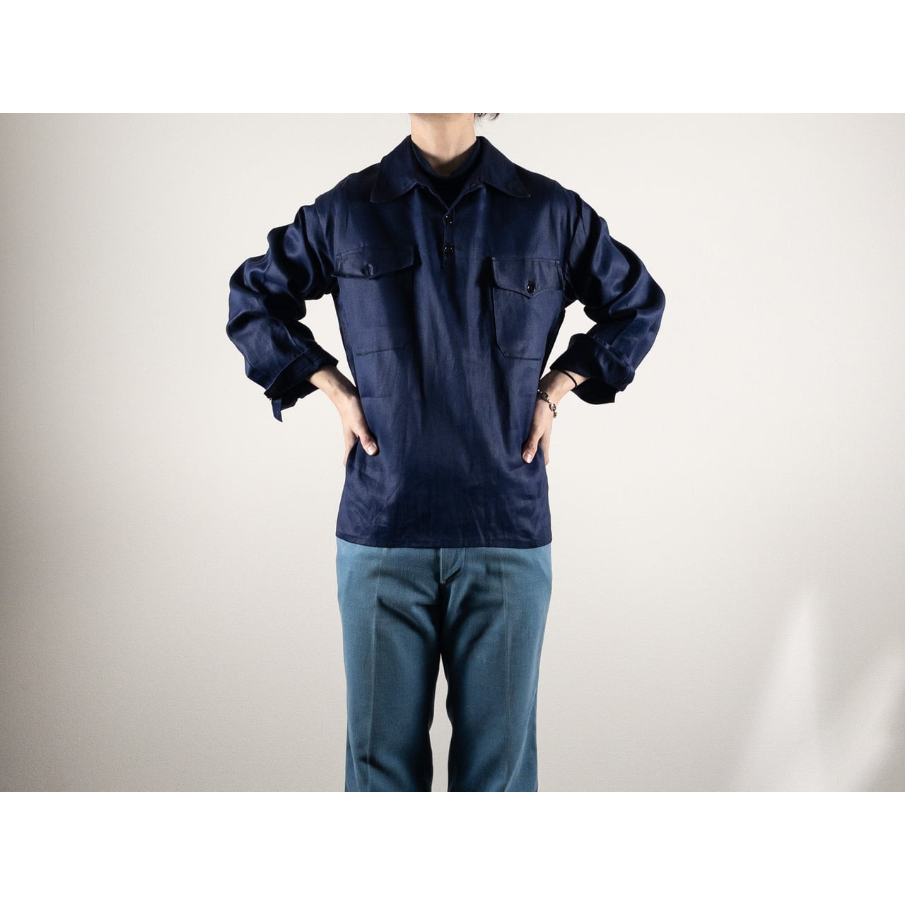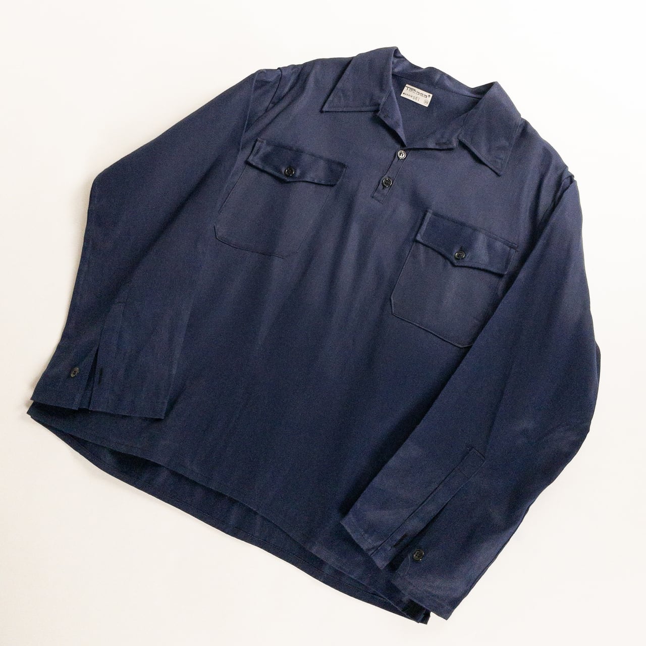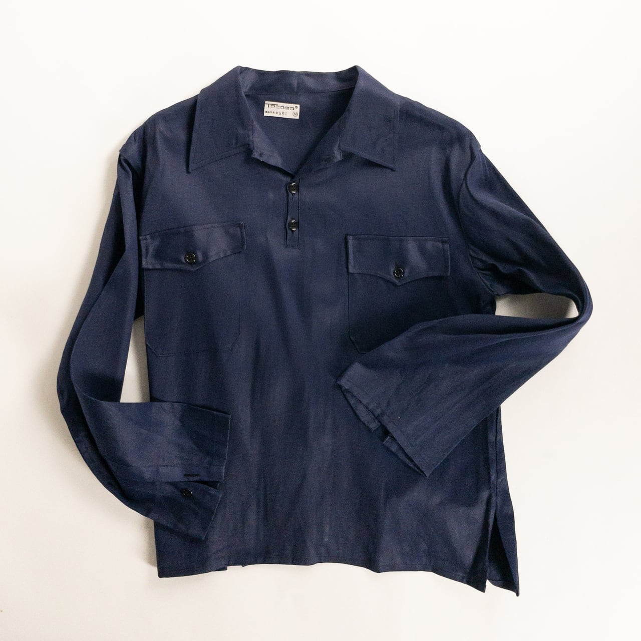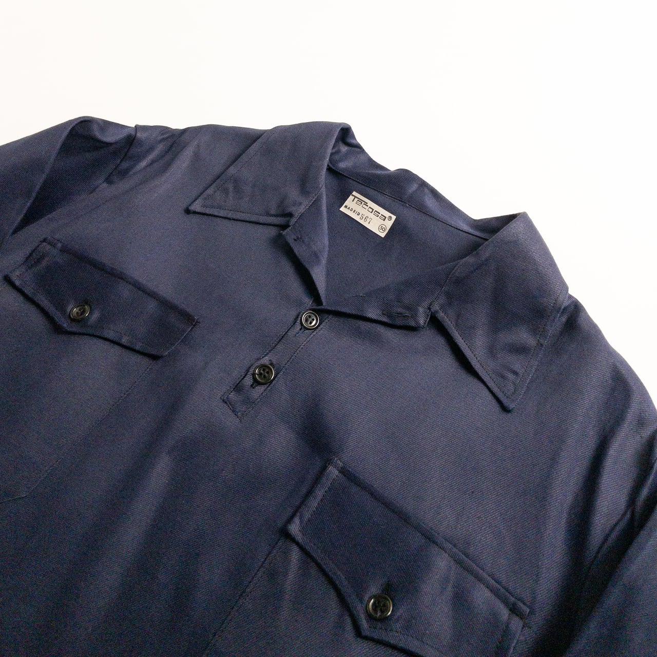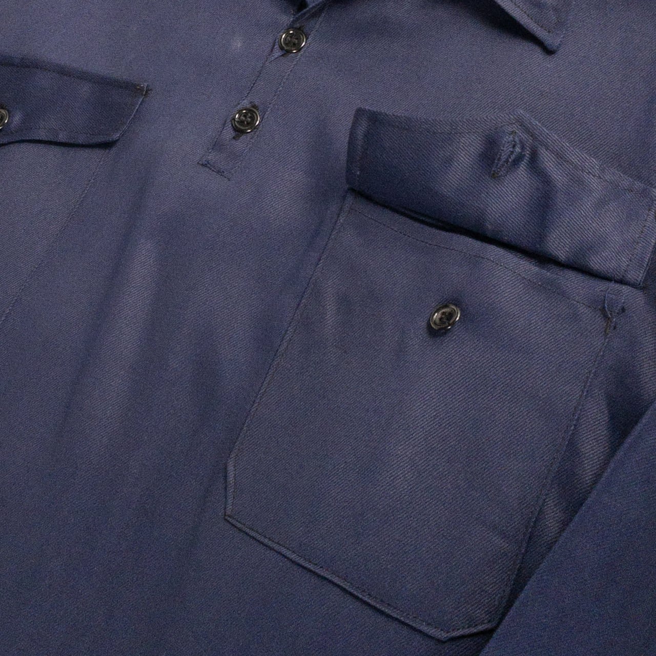 1950s "Spanish Vintage" Blue Cotton Twill Pullover Work Shirt, Dead Stock
