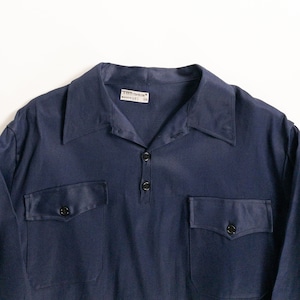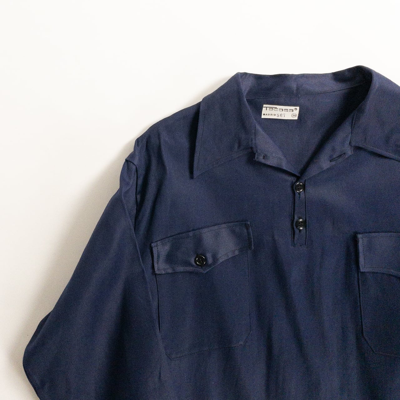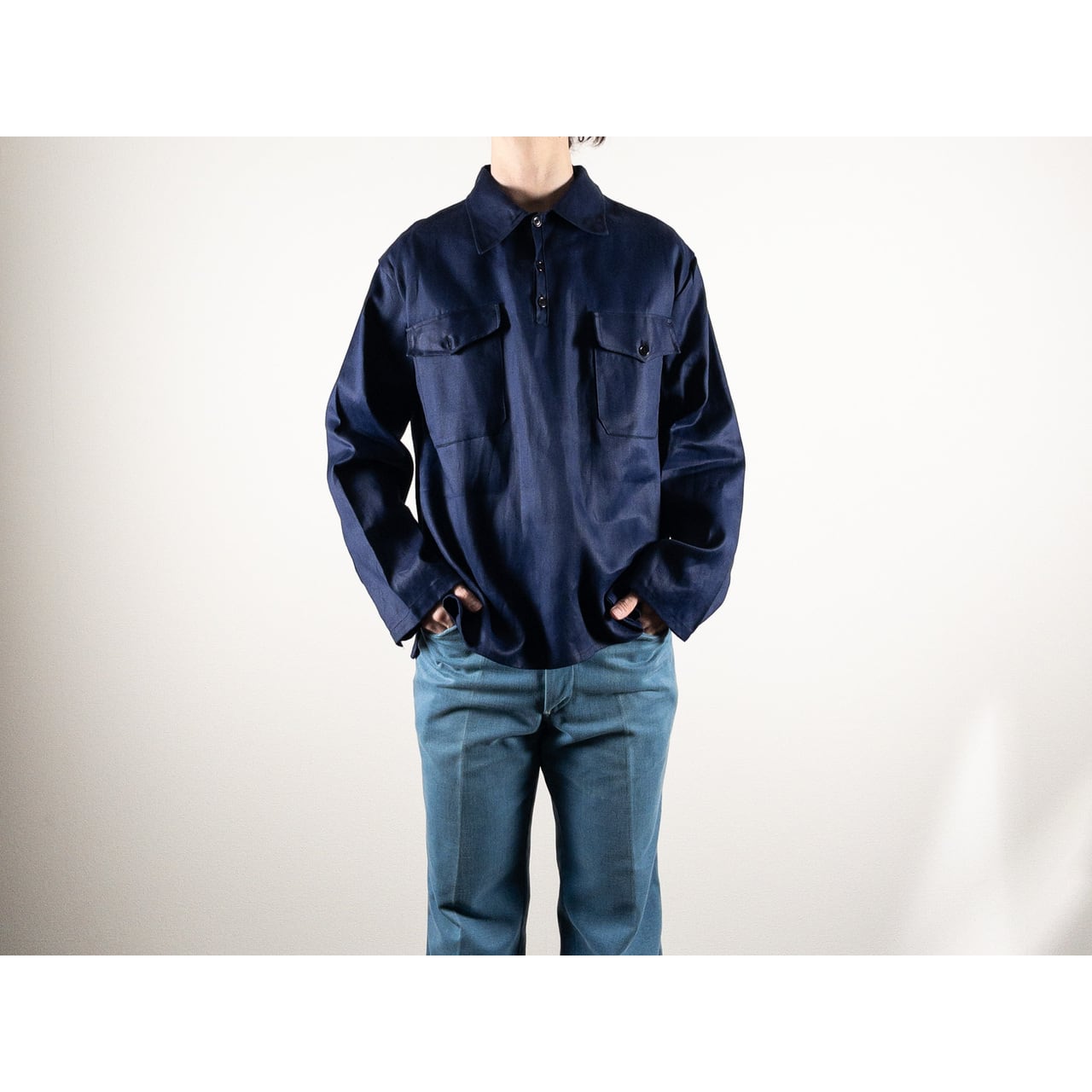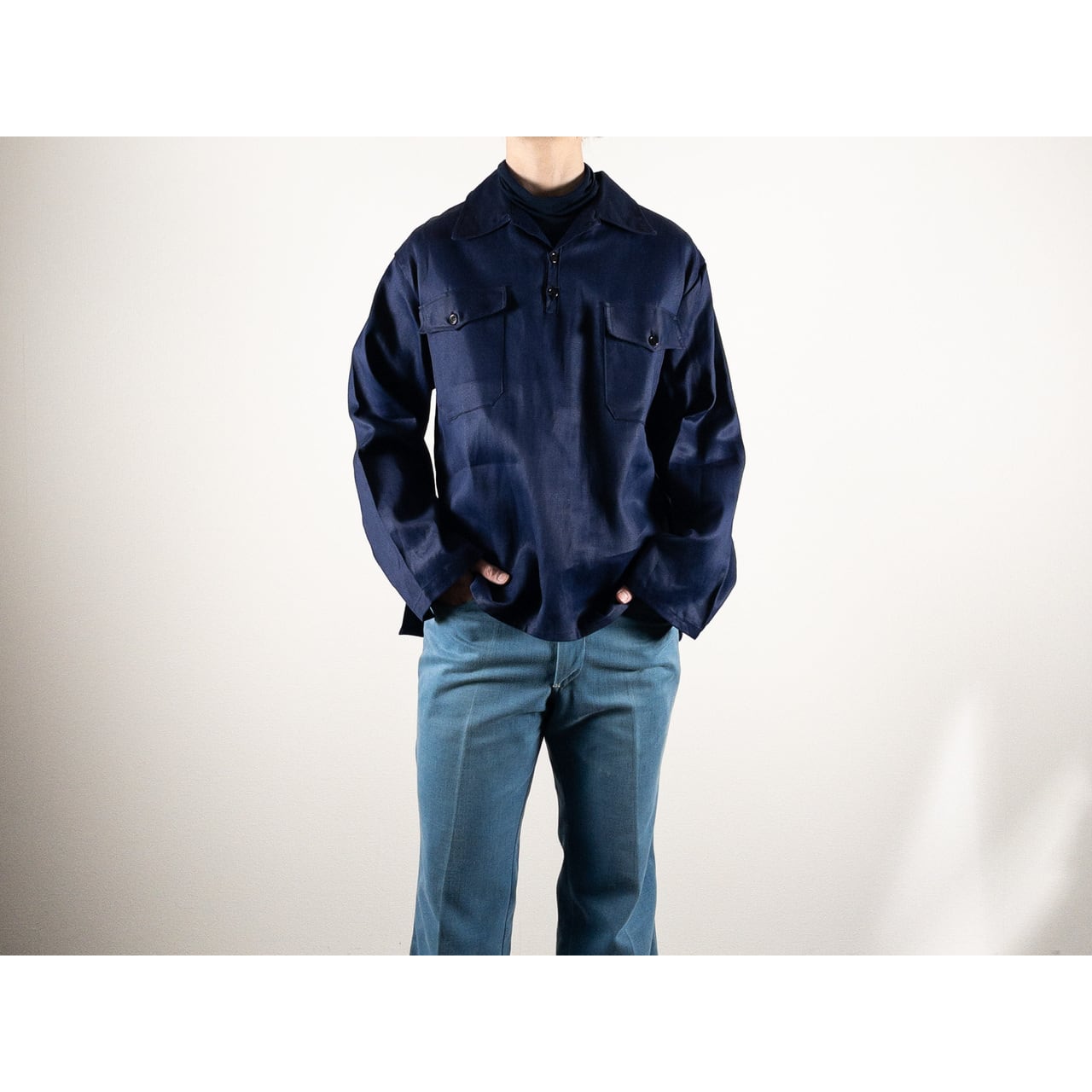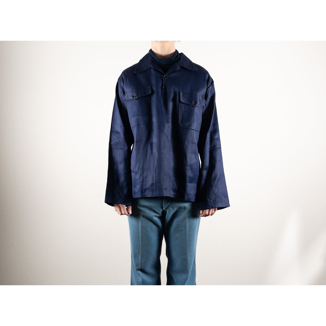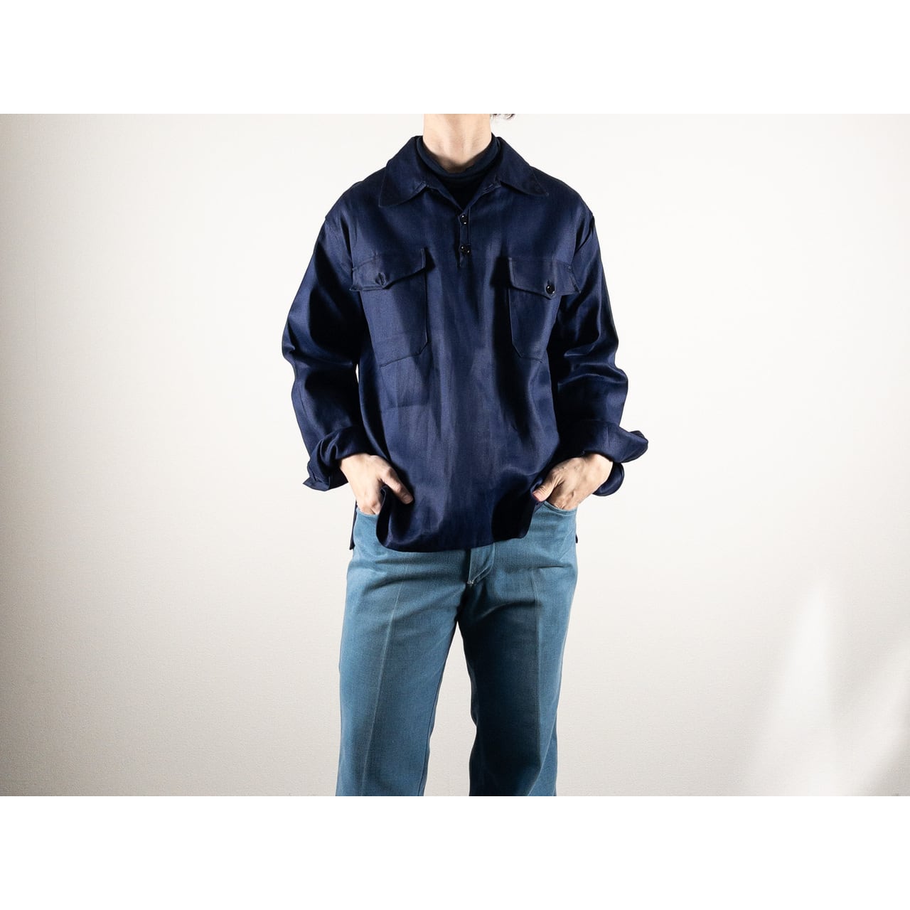 1950s "Spanish Vintage" Blue Cotton Twill Pullover Work Shirt, Dead Stock