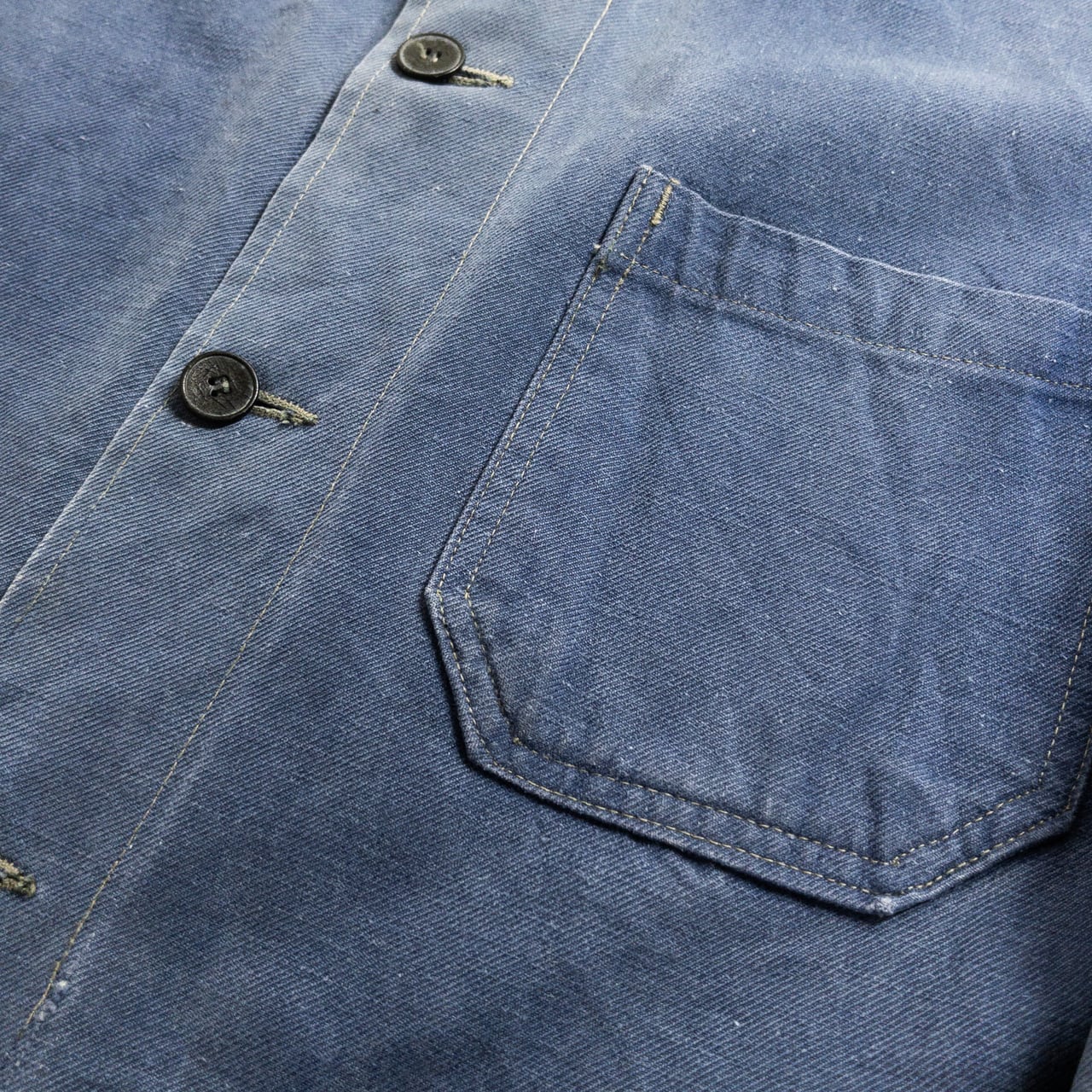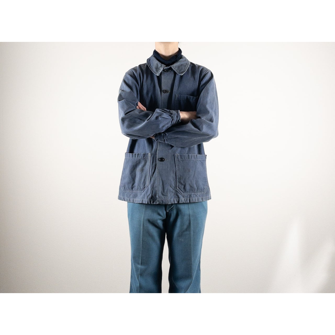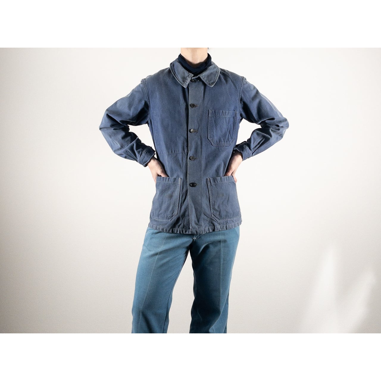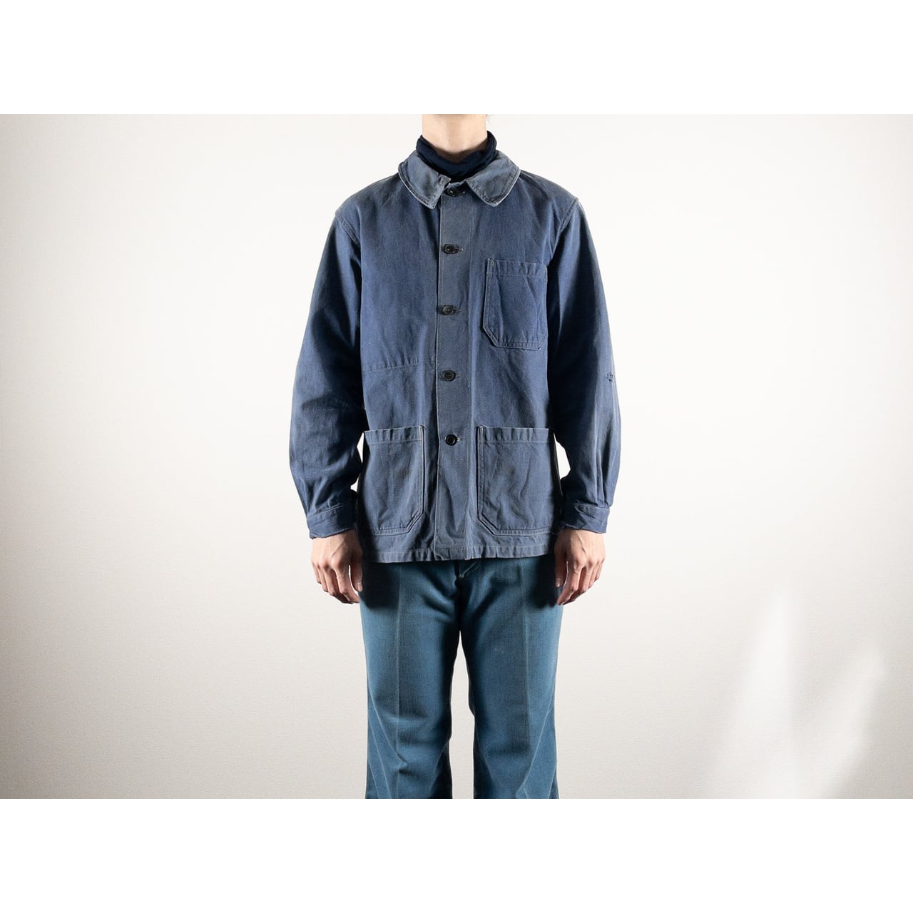 1950s "GEFADI" French Faded Blue Cotton Twill Work Jacket