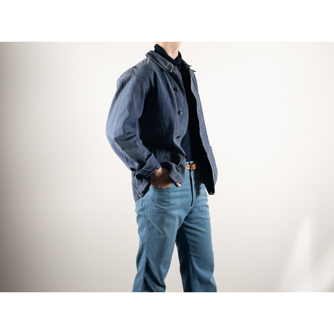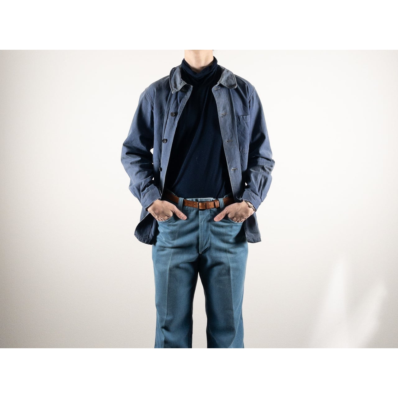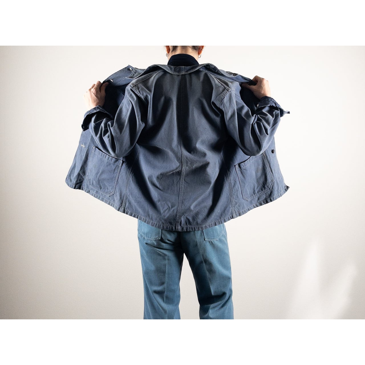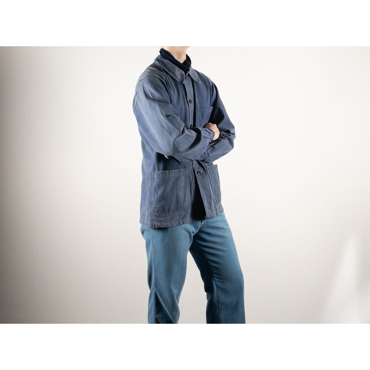 1950s "GEFADI" French Faded Blue Cotton Twill Work Jacket