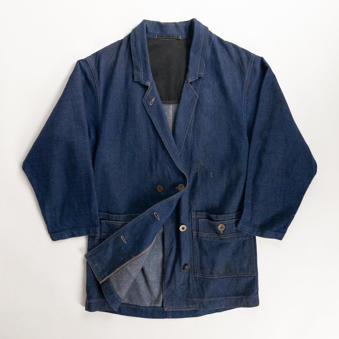 1970s "Euro Vintage" Blue Denim Double Breasted Work Jacket