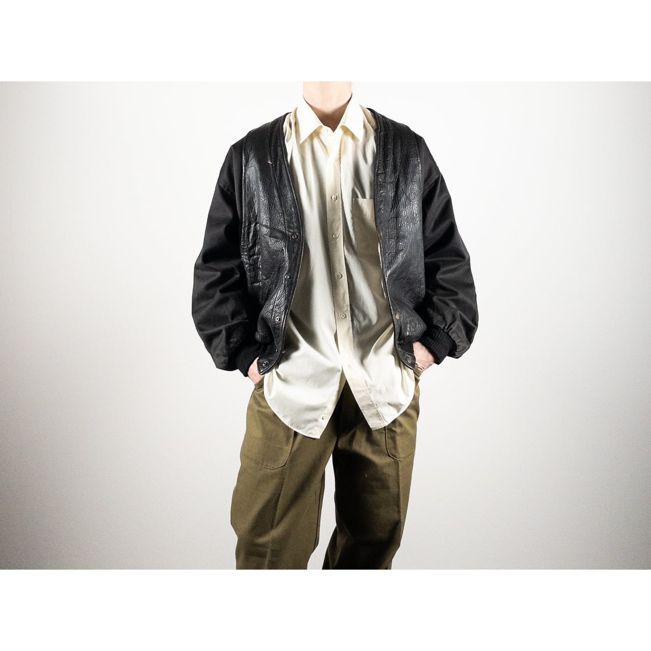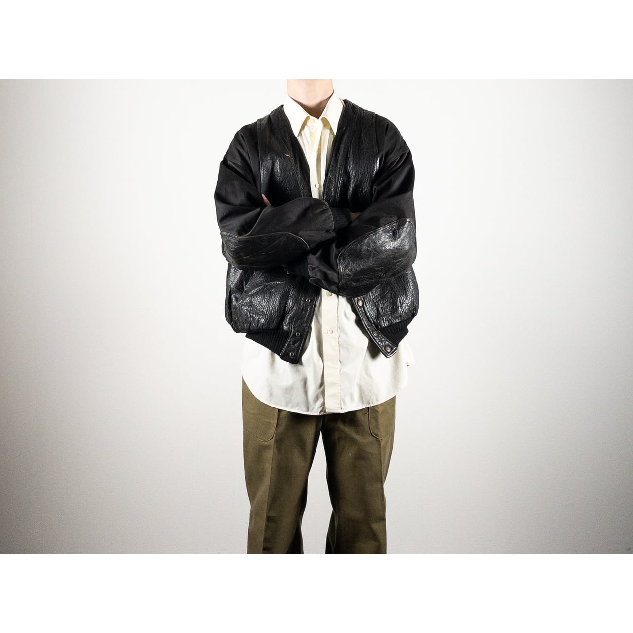 レザー(胴体)、コットン(袖)