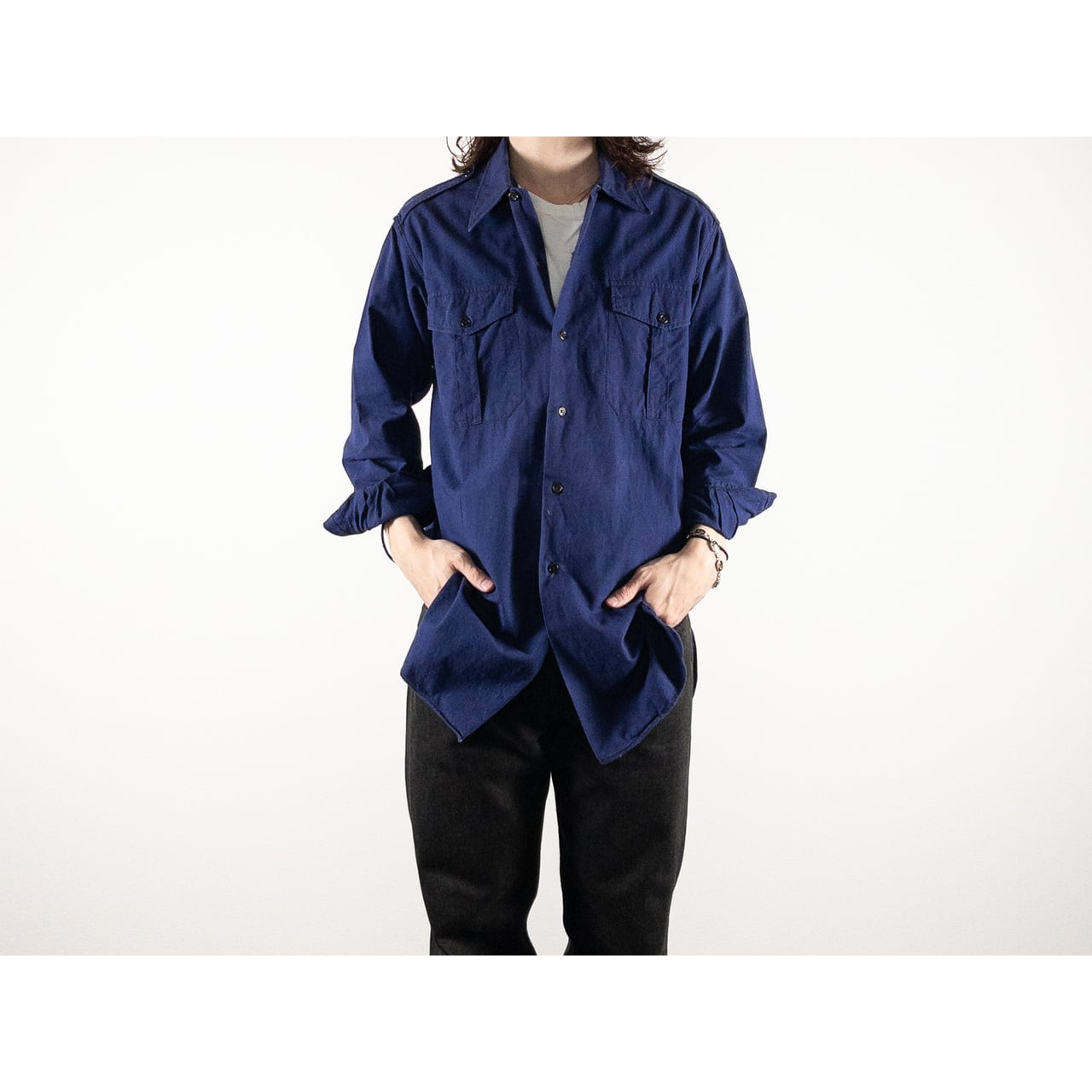 フレンチヴィンテージらしい上品なブルーの色味は、他のどの国のミリタリーシャツにもない独特の魅力。
