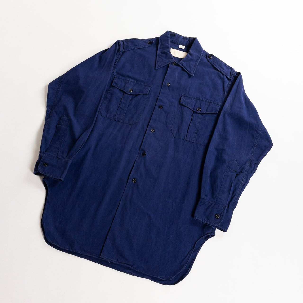 こちらは1960年代頃のフランス軍ネイビーコットンフルオープンシャツです。
