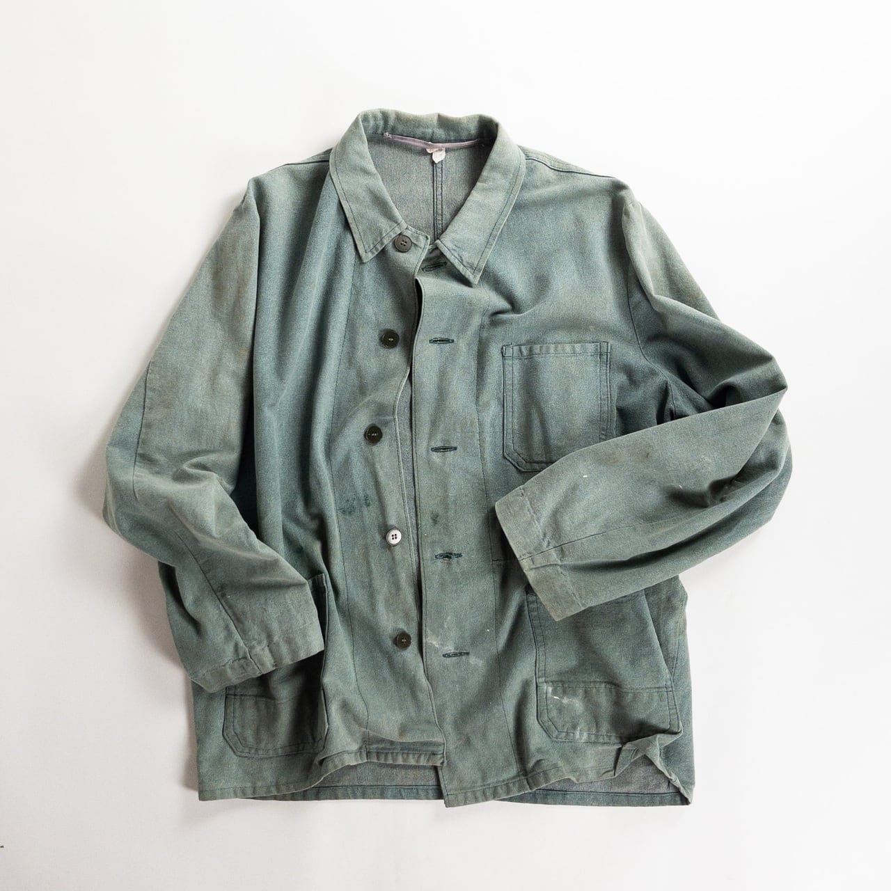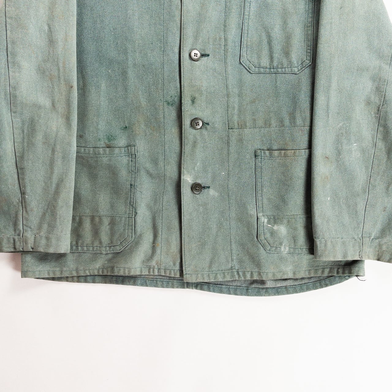 こちらは1960年代頃のドイツ製グリーンシャンブレーワークジャケットです。