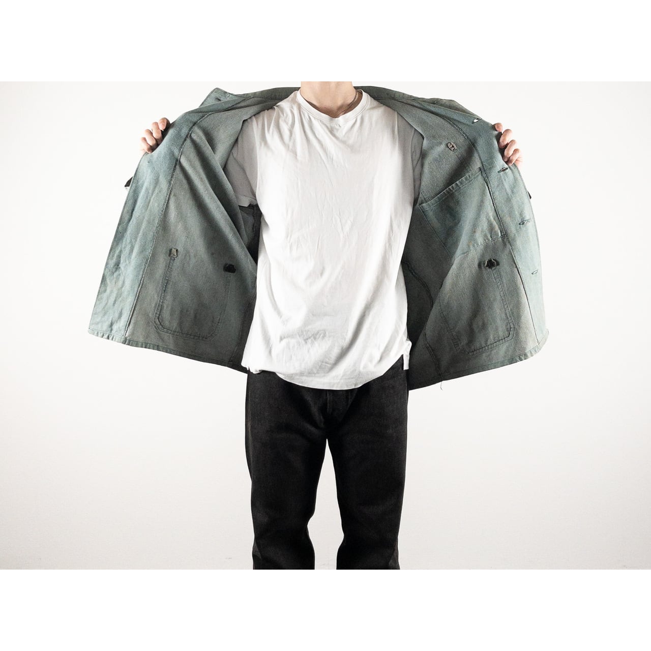 装飾を排したデザインだからこそ、生地の良さと経年変化した表情がそのまま前面に出る作りになっており、ジャーマンワークの「モノとしての強さ」が素直に伝わってくる一着。