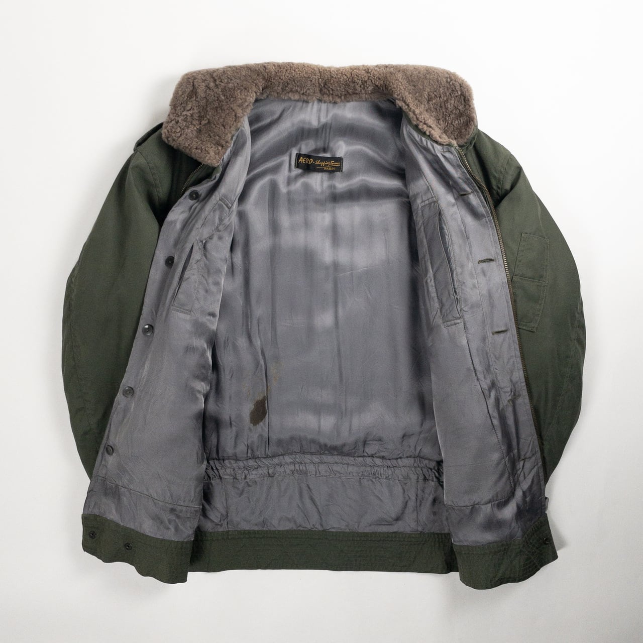 こちらは1970年代頃のフランス製オリーブコットンパイロットジャケットになります。
