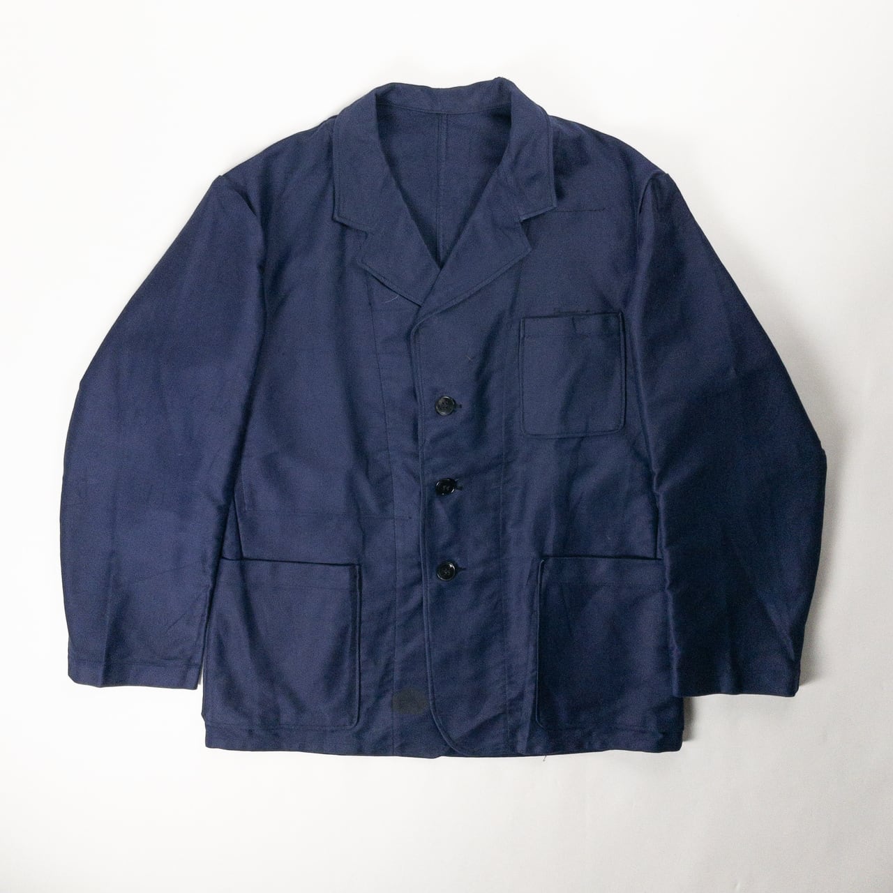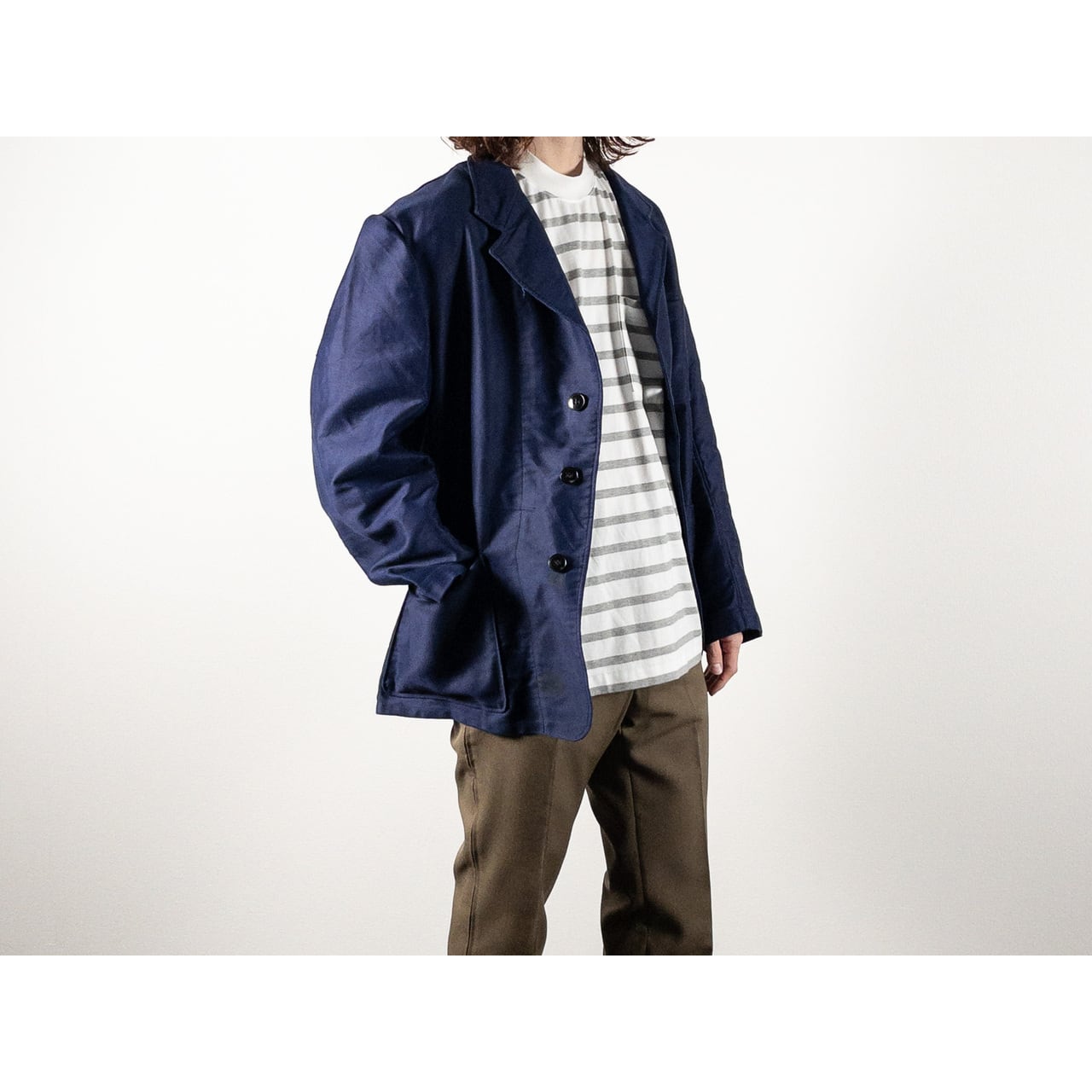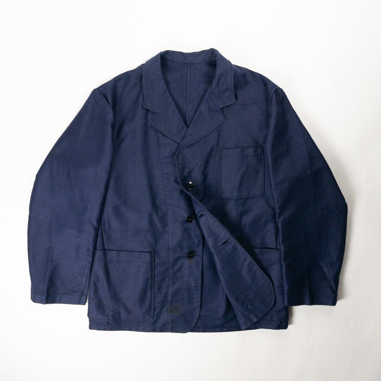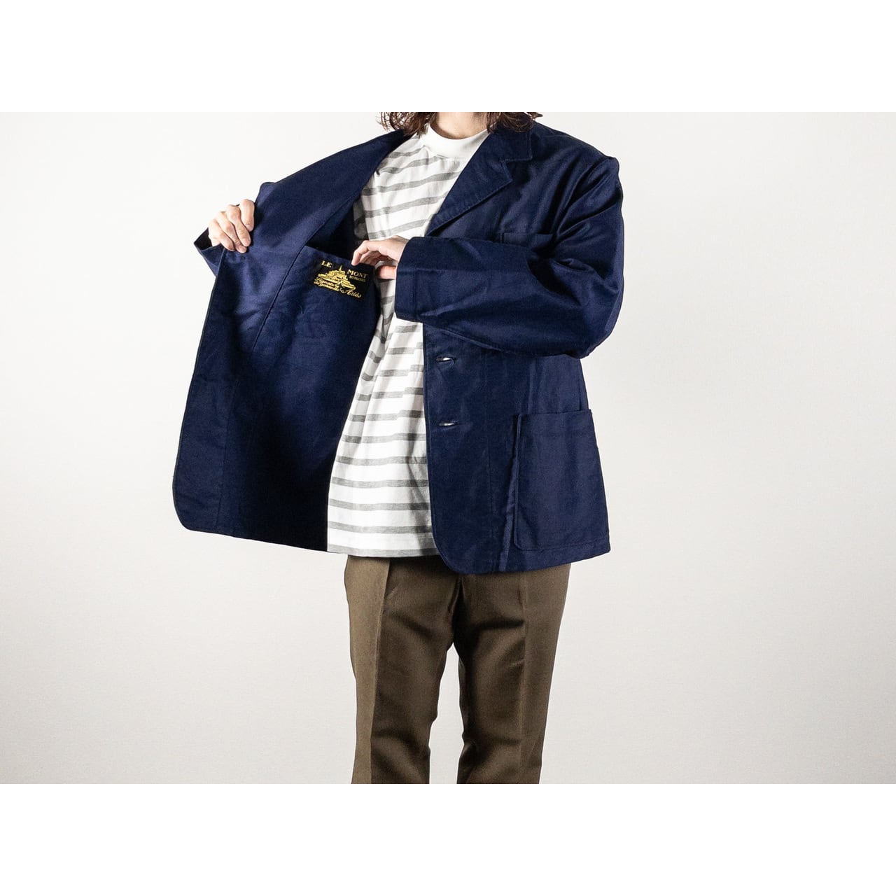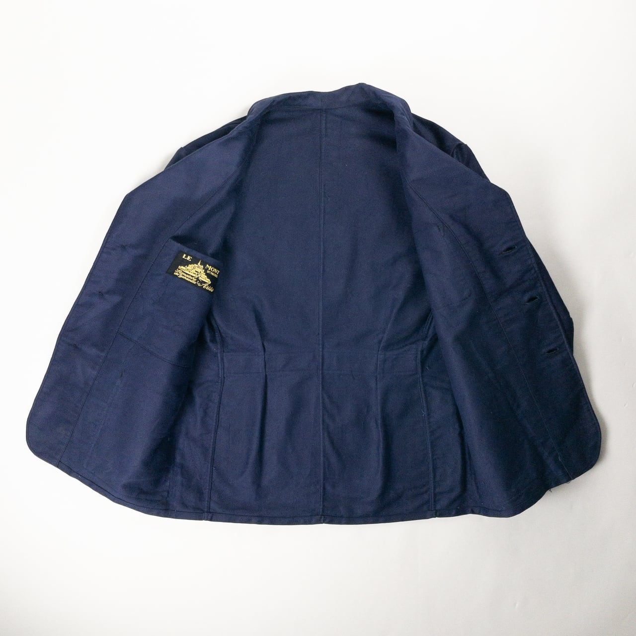 1940s "Le Mont St Michel" French Blue Moleskin Lapeled Work Jacket
