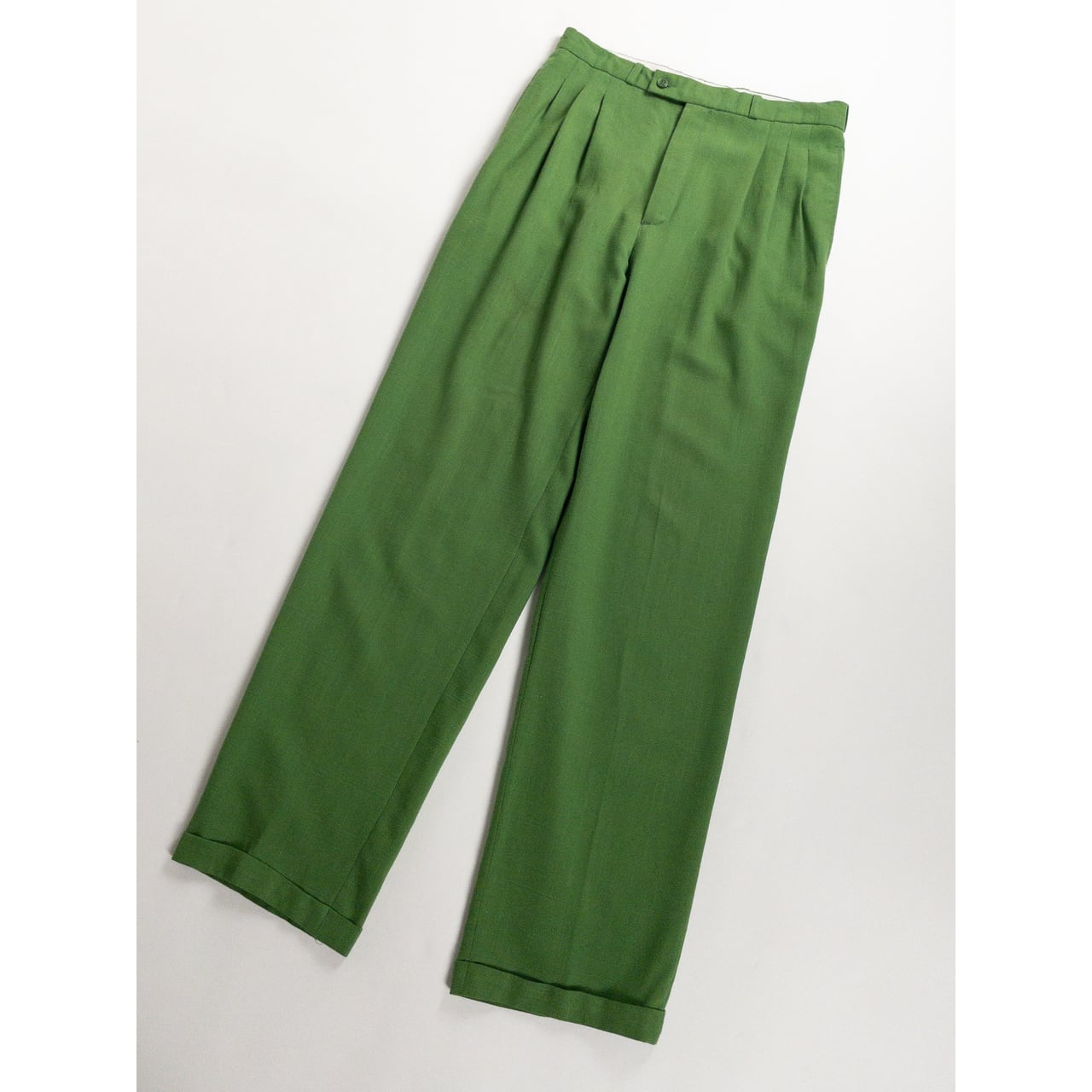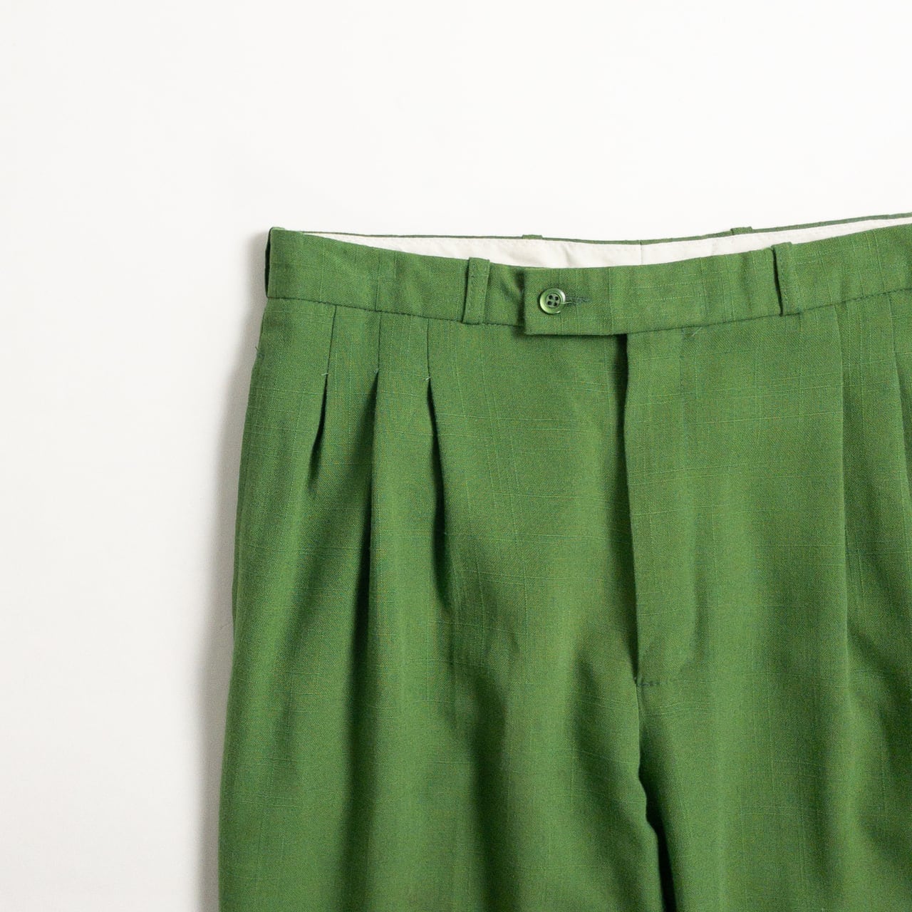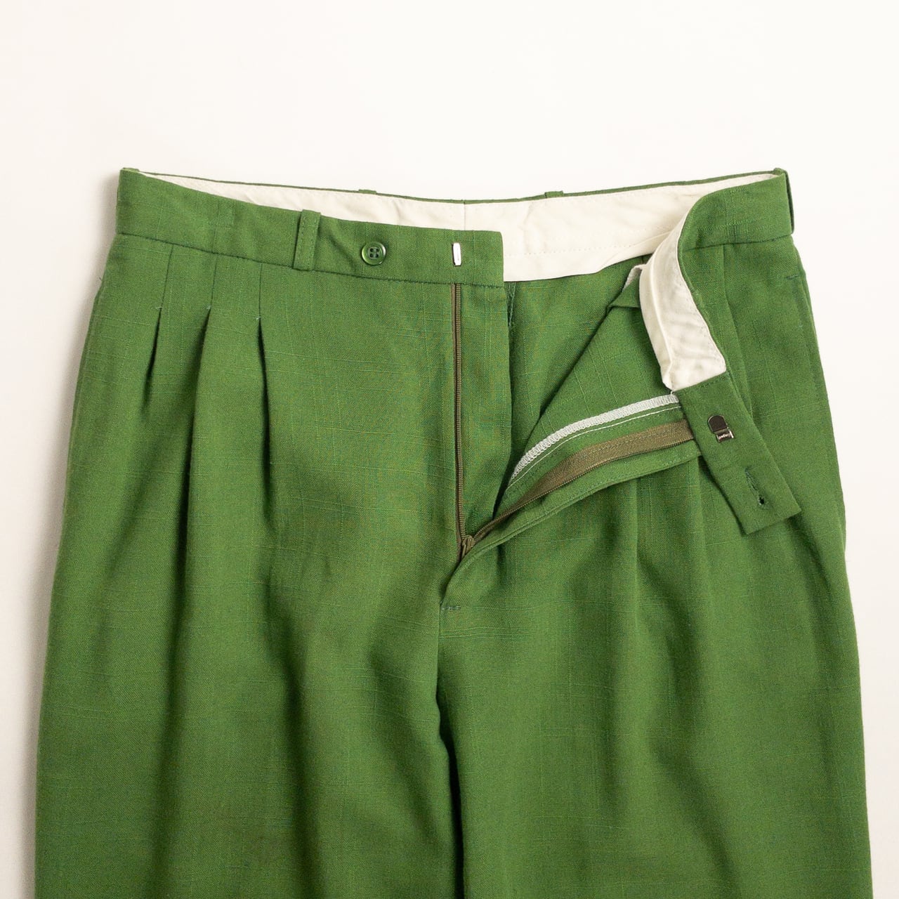 こちらは1970年代頃のフランス製グリーンリネン混3タックトラウザーズになります。