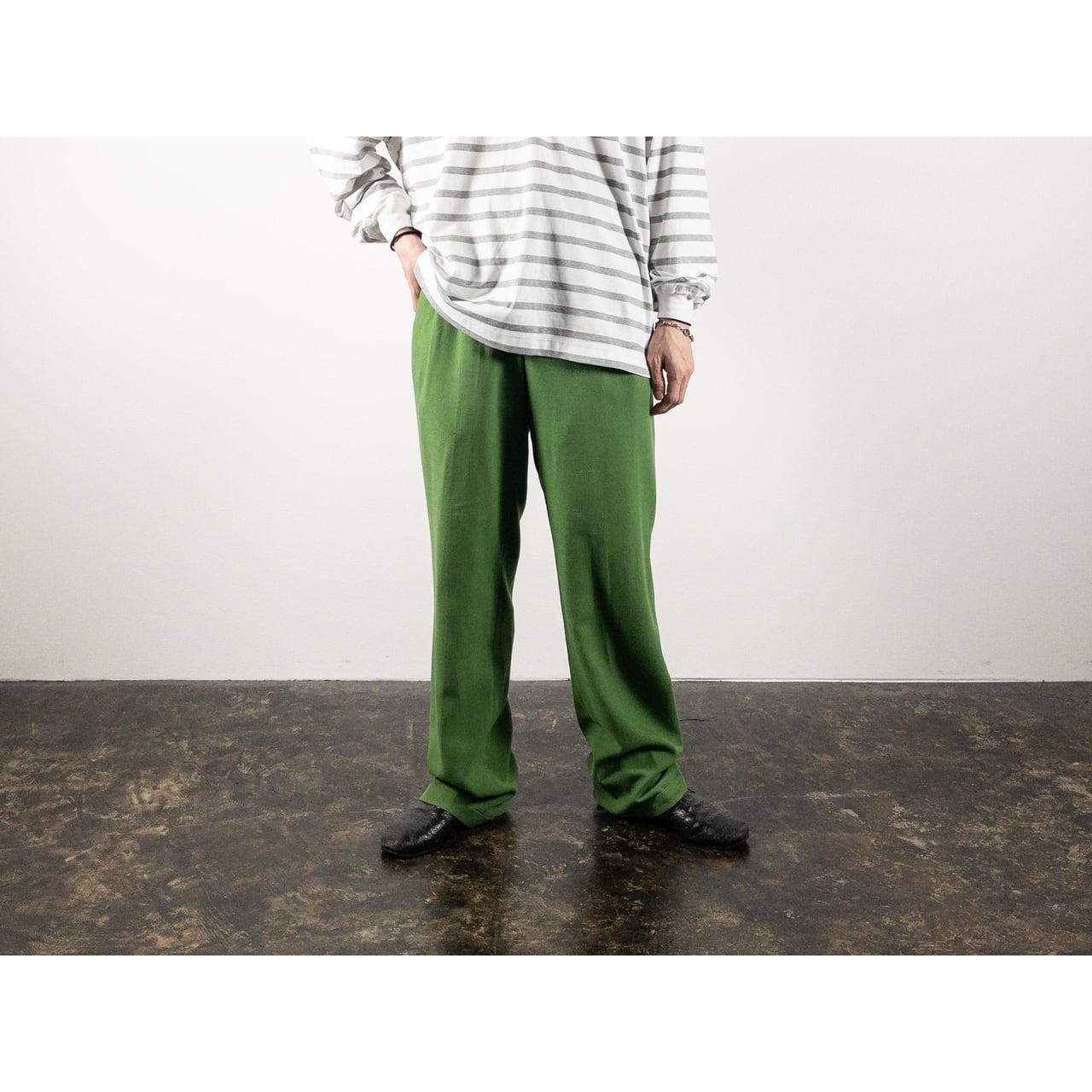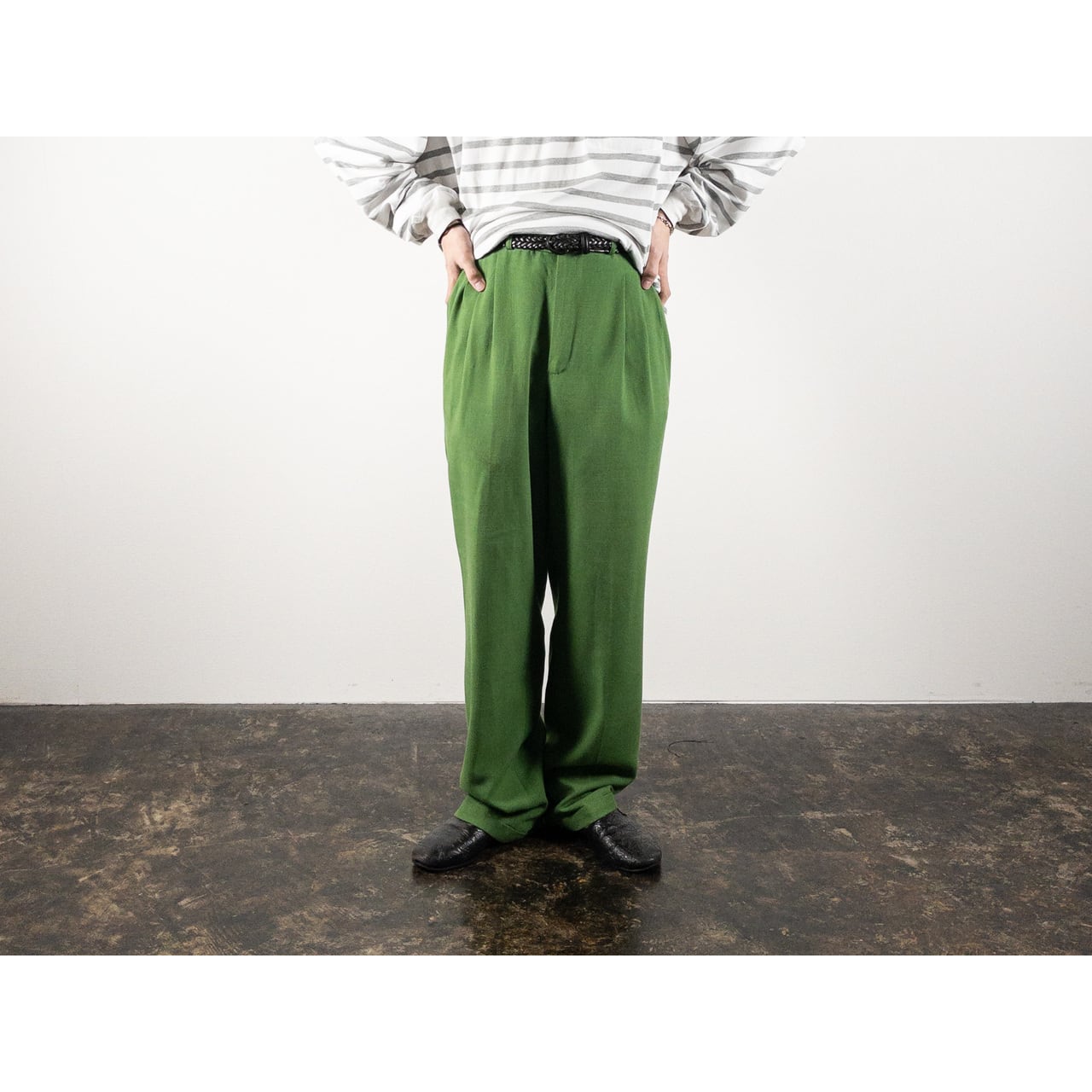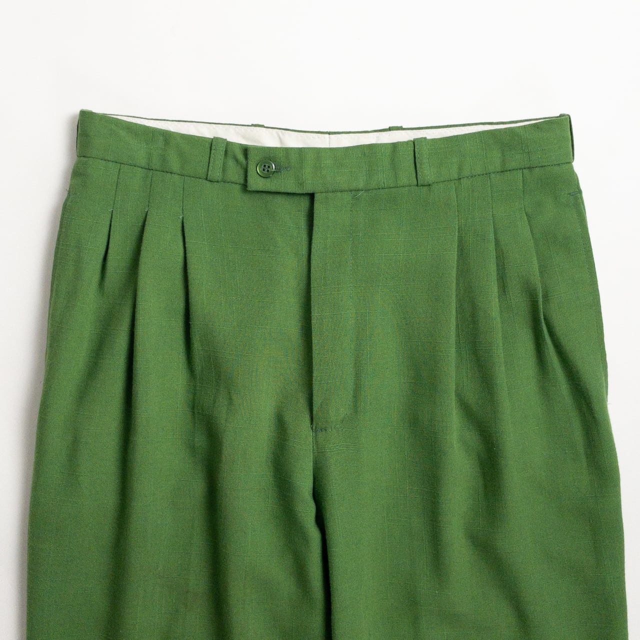 こちらは1970年代頃のフランス製グリーンリネン混3タックトラウザーズになります。