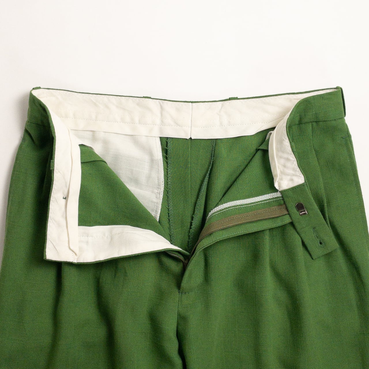 1970s "French Vintage" Green Mixed Linen Three Tack Trousers