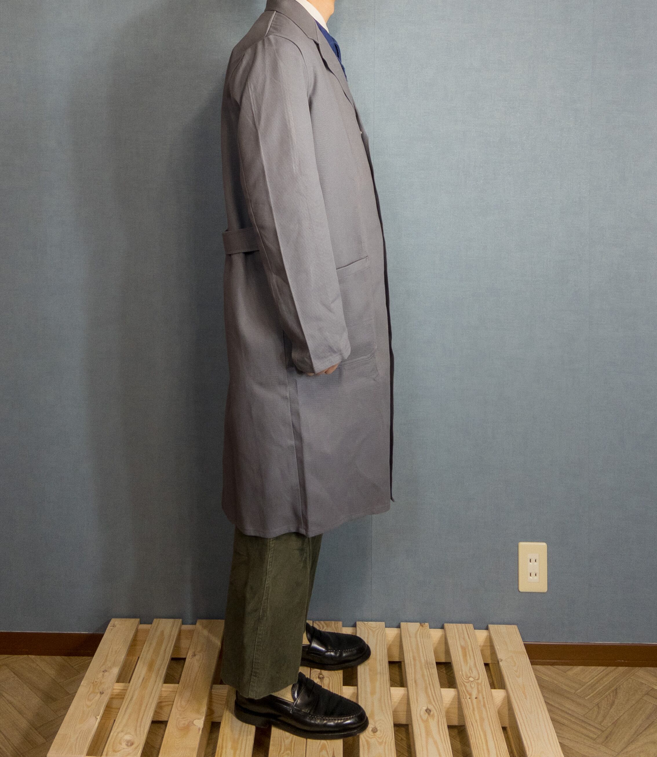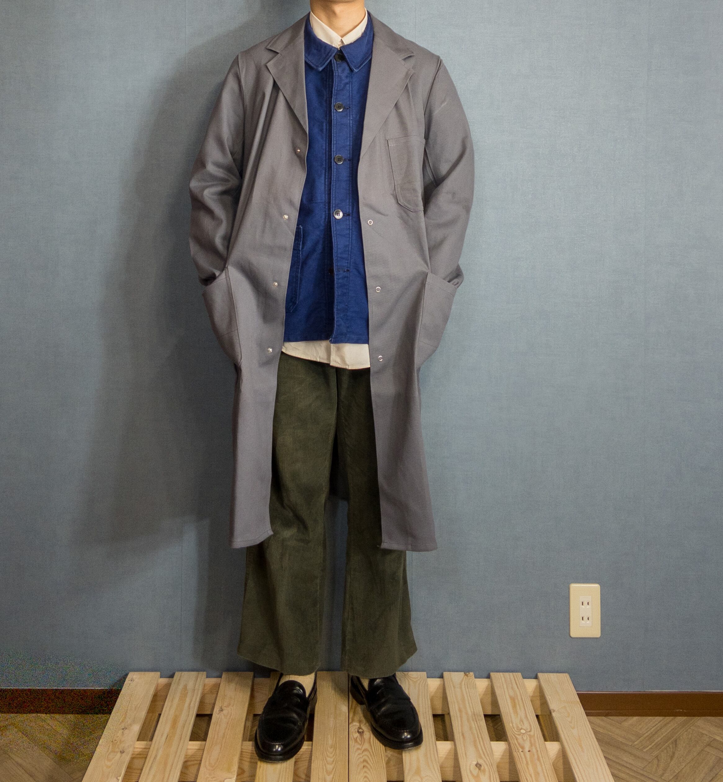 色味はグレー単色ですが、着用を重ねていくといい感じに皺が入ってきたりアタリがついてきたりと育てがいのあるワークコートかと。